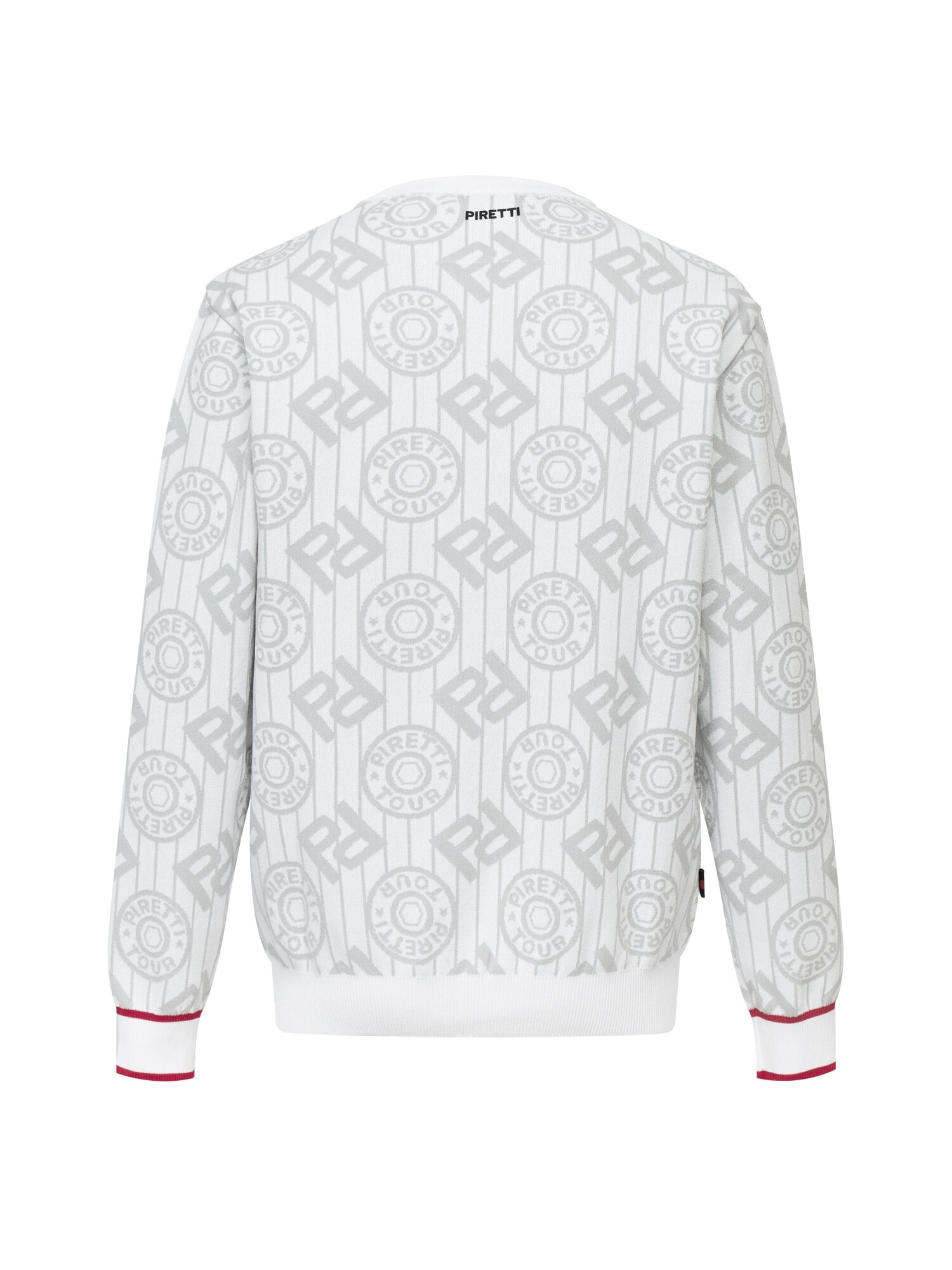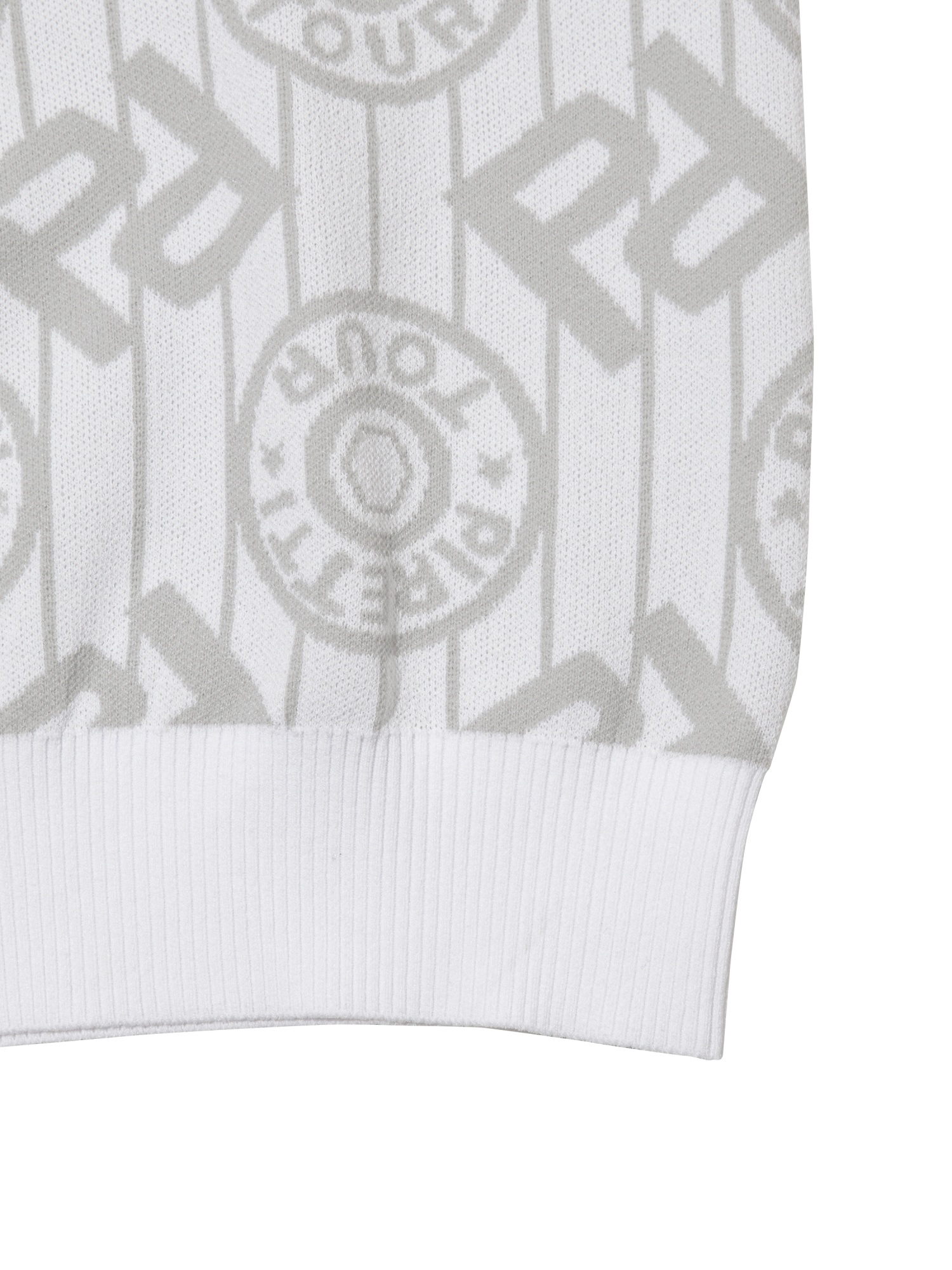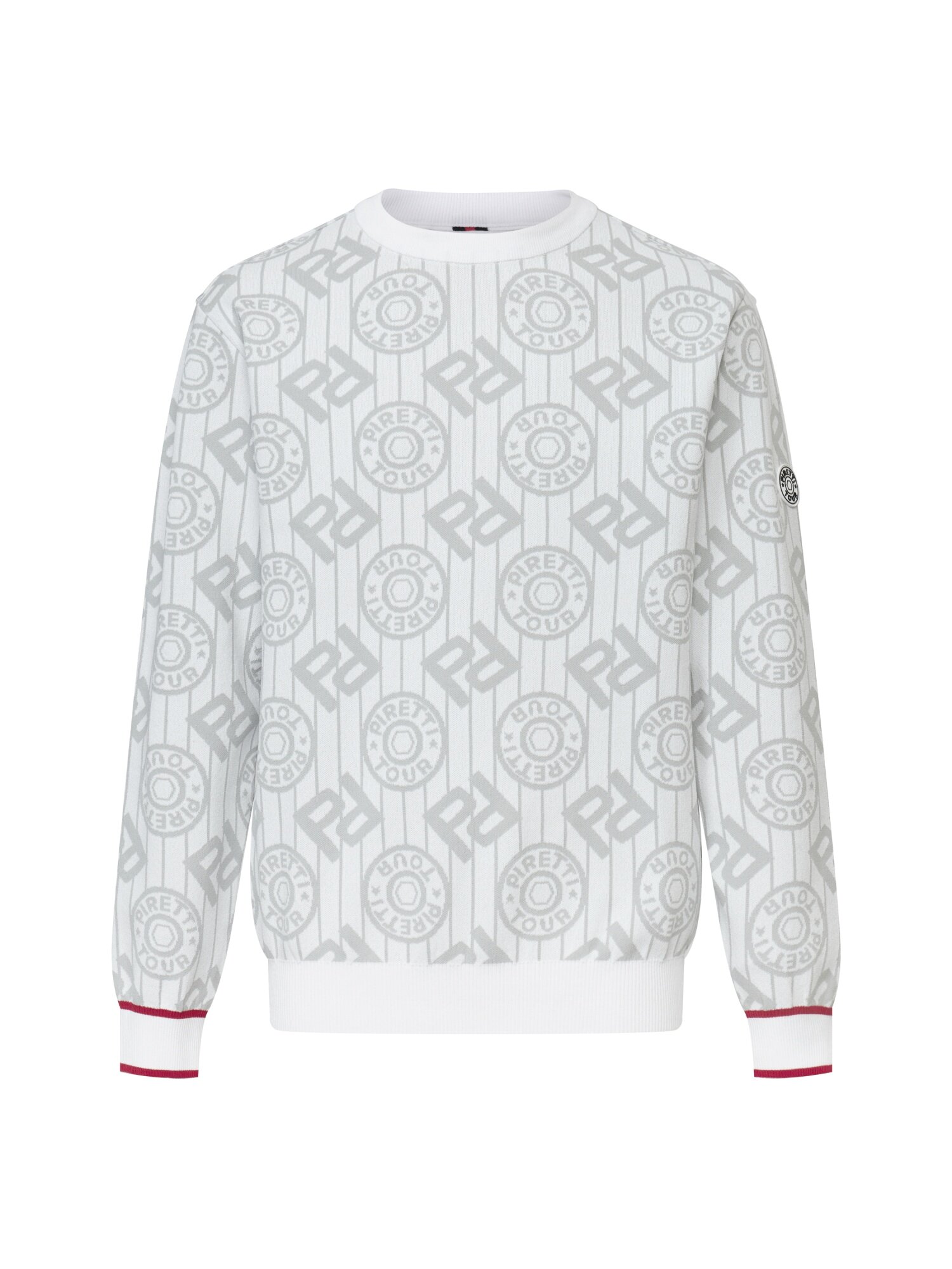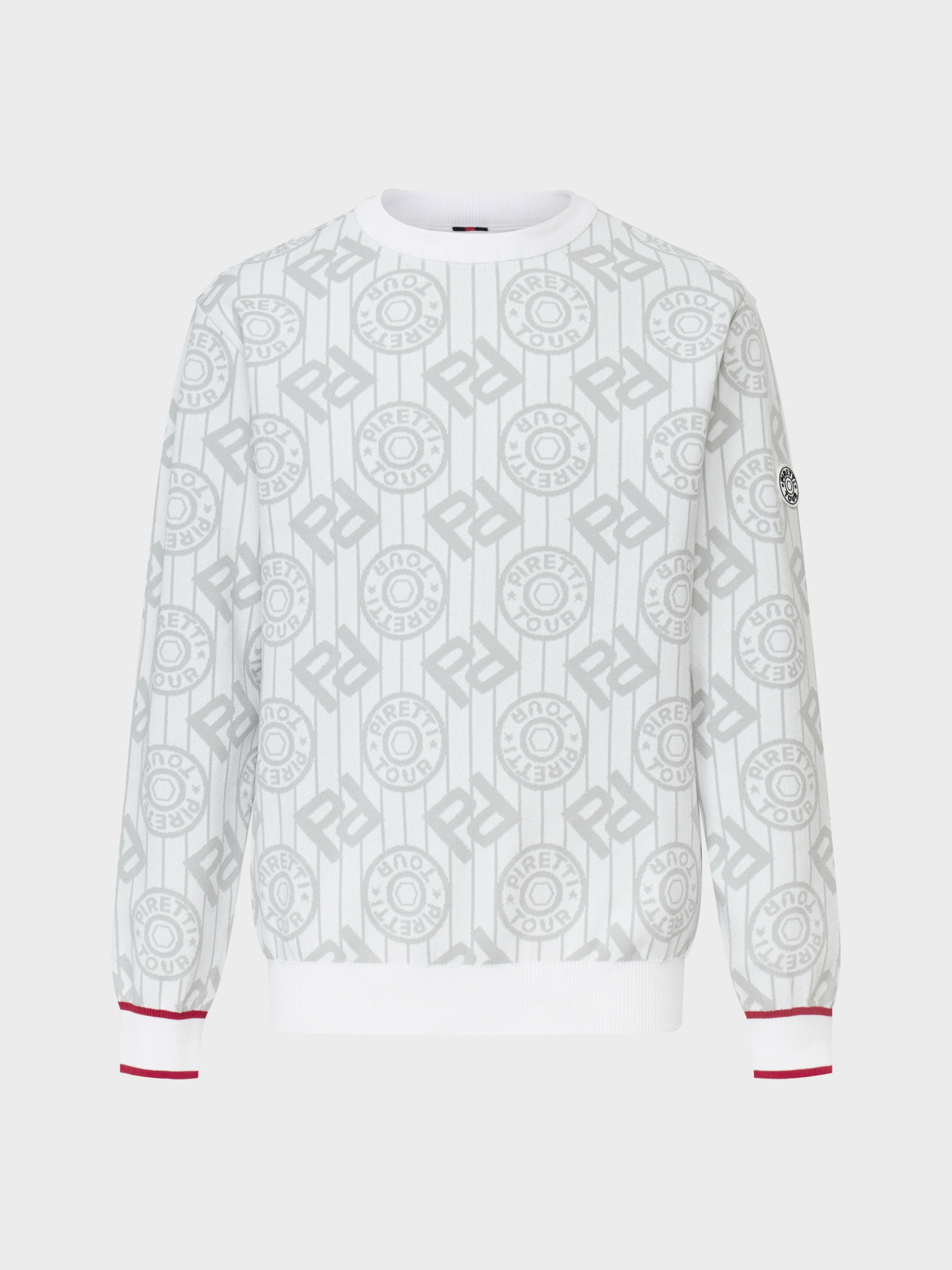 - 시그니처 패턴의 'P' gram 과 무게추 심볼을 혼합한 JQD를 활용해 브랜드 아이덴티티를 표현한 스웨터.