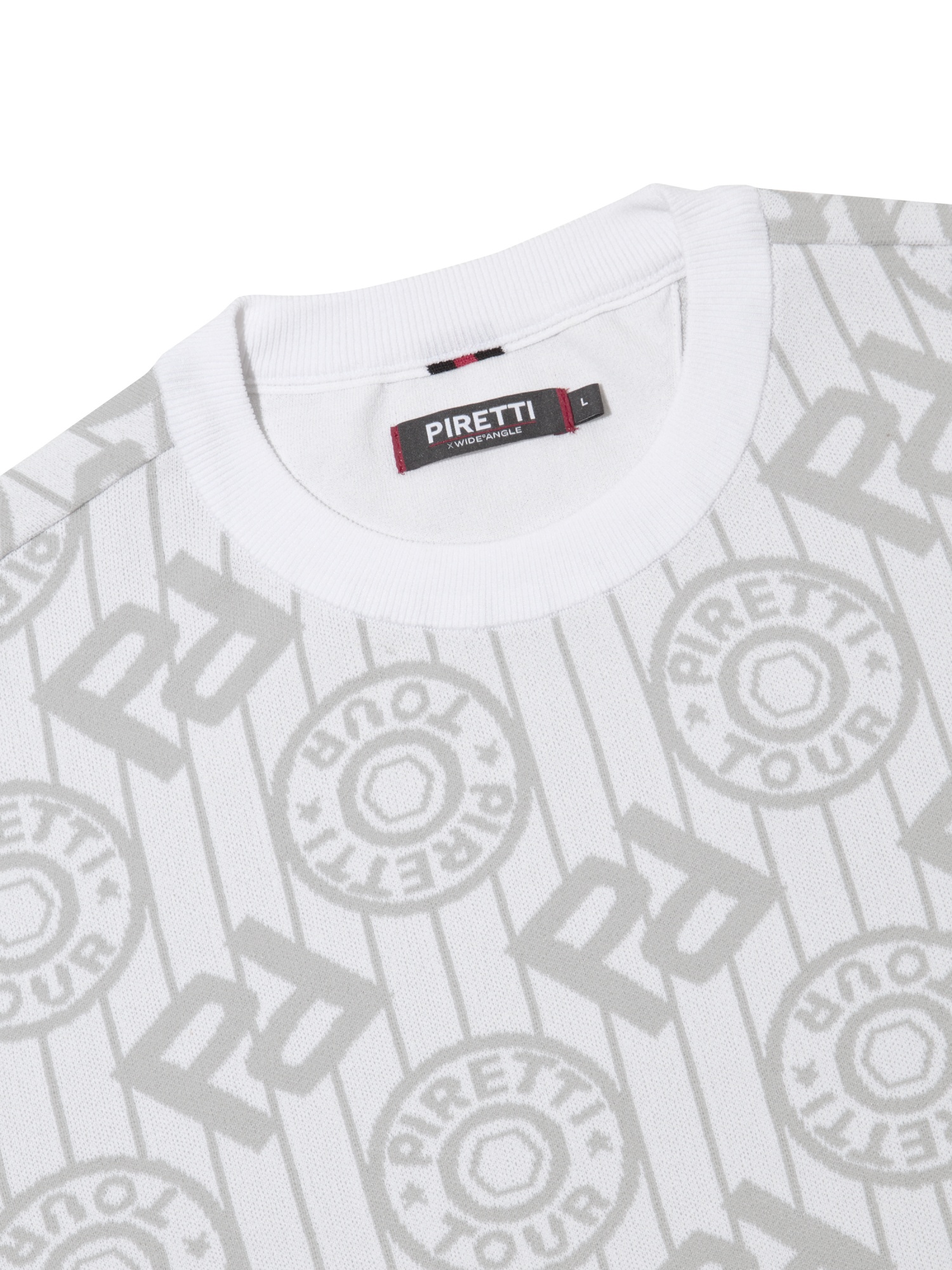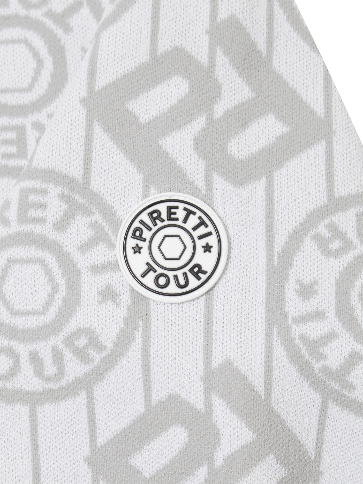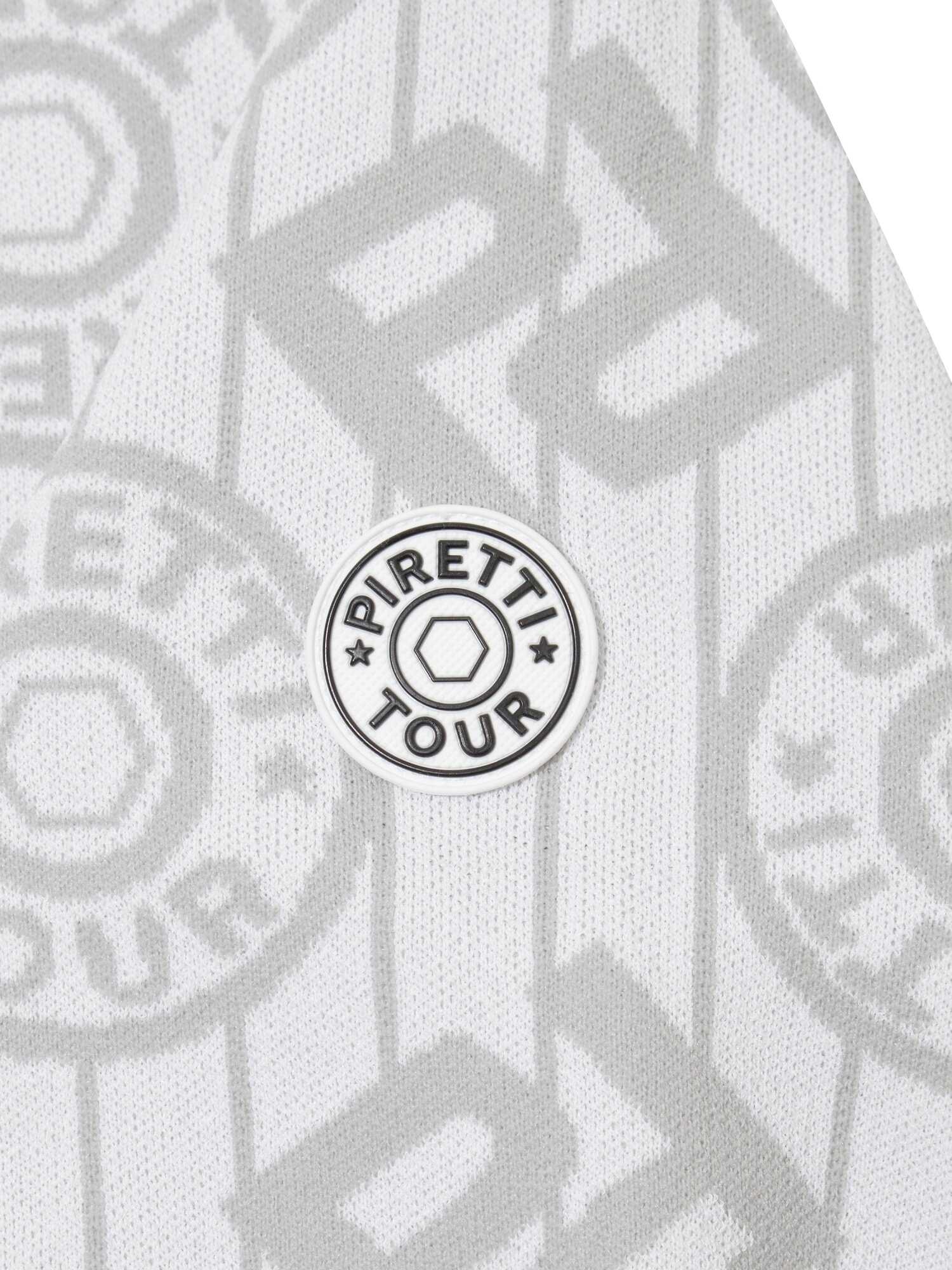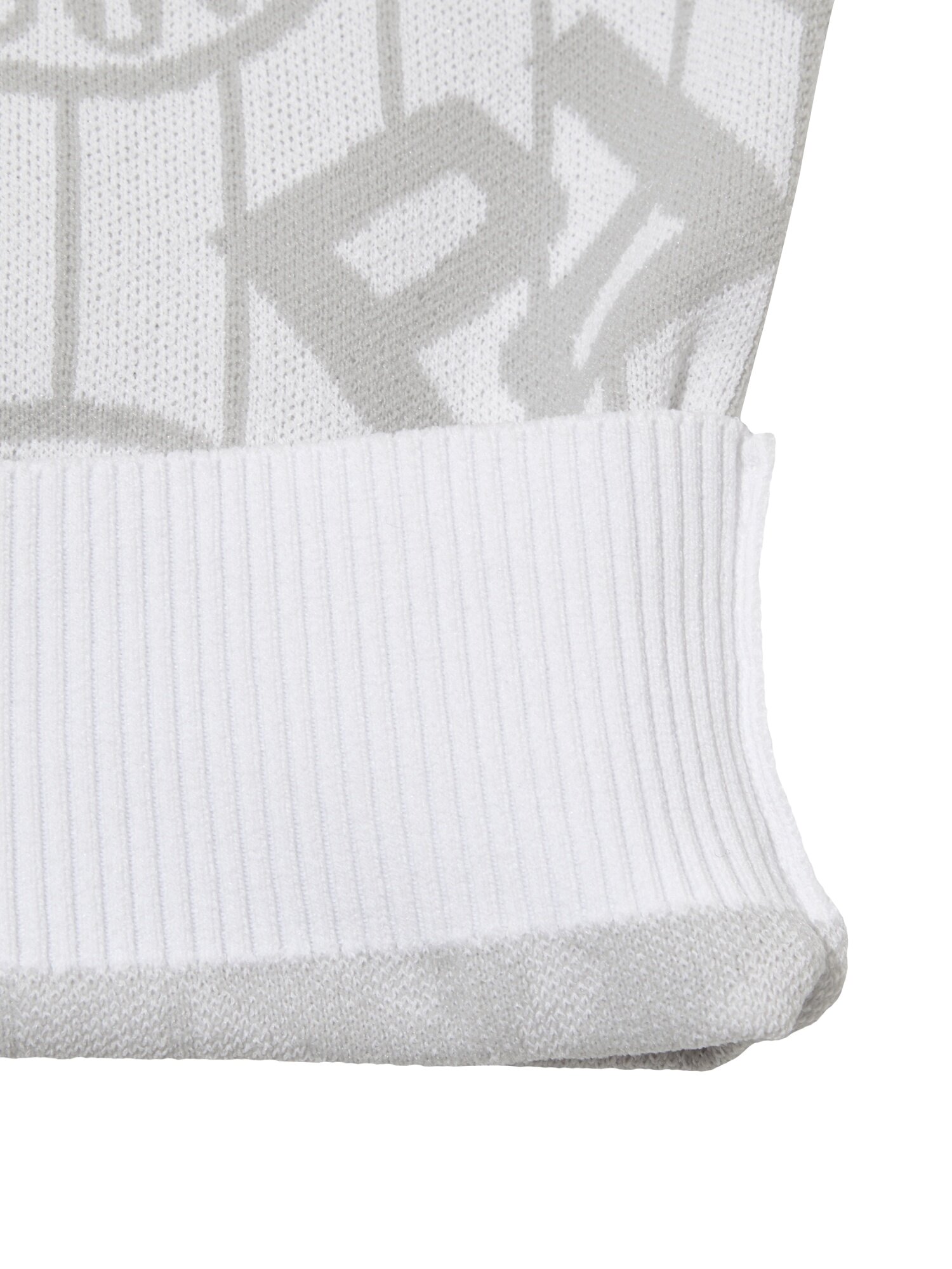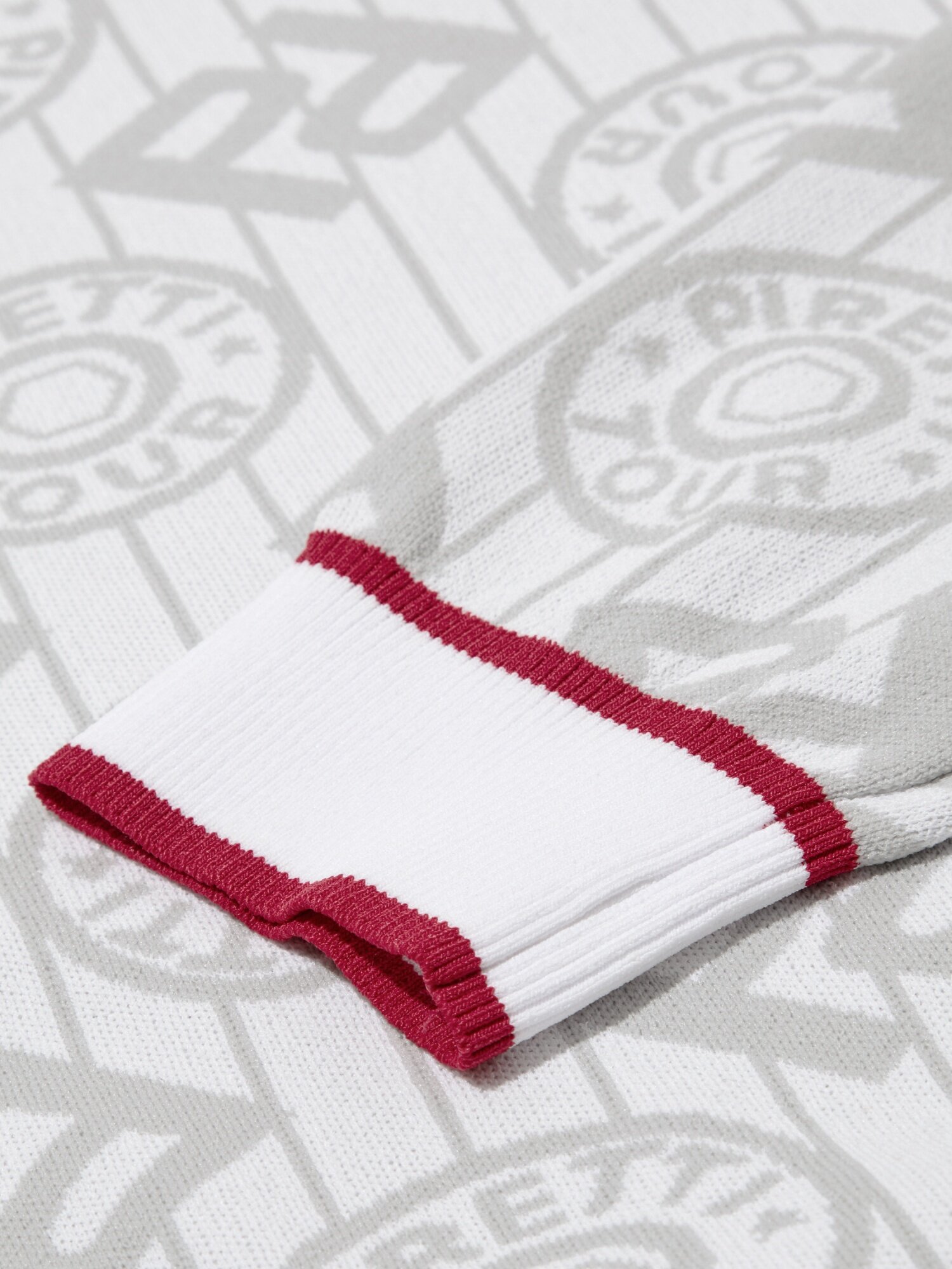 - 시그니처 패턴의 'P' gram 과 무게추 심볼을 혼합한 JQD를 활용해 브랜드 아이덴티티를 표현한 스웨터.