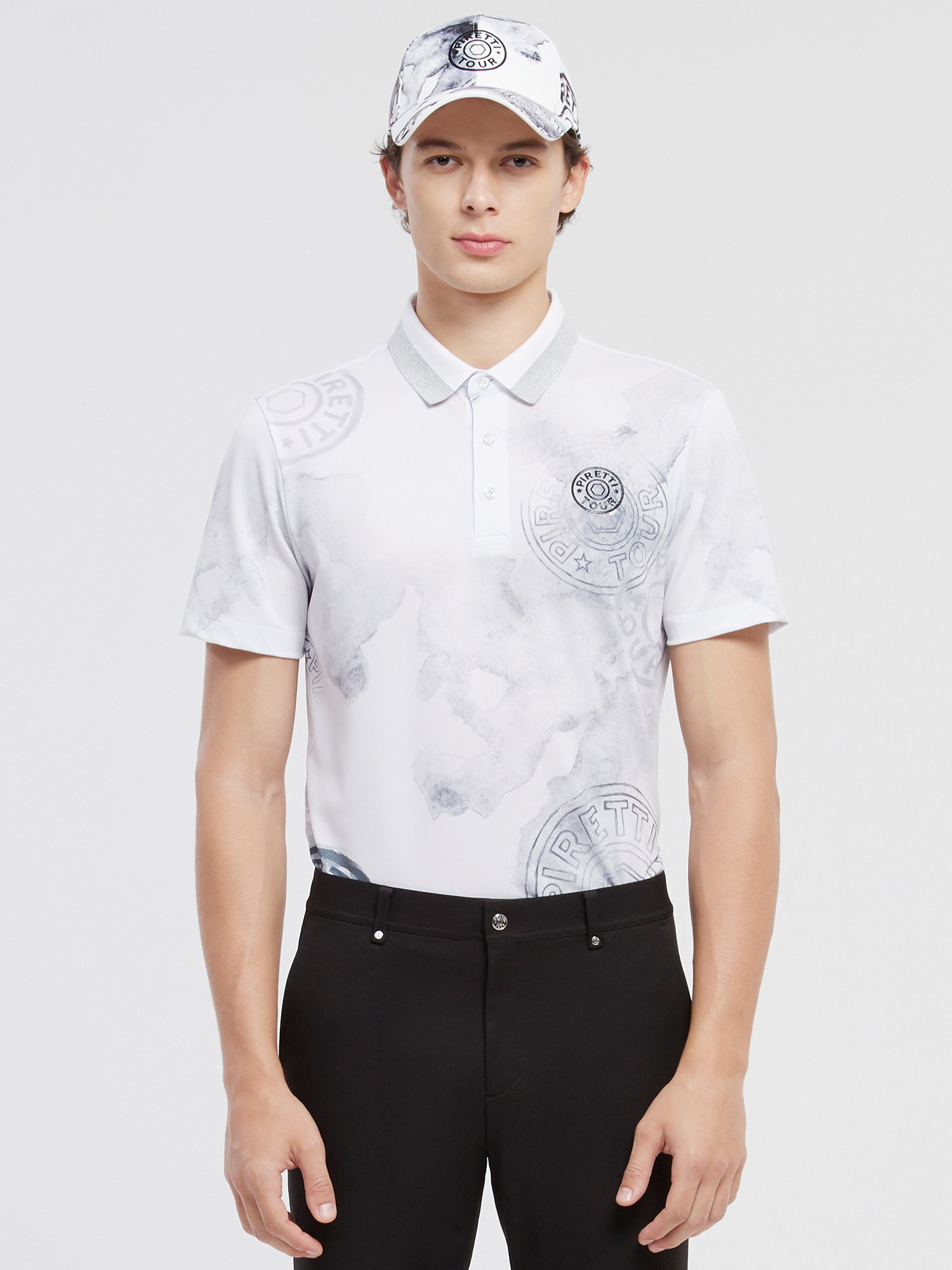 [스모크 시즌 패턴이 적용된 여름 라운딩용 반팔 폴로 티셔츠]
