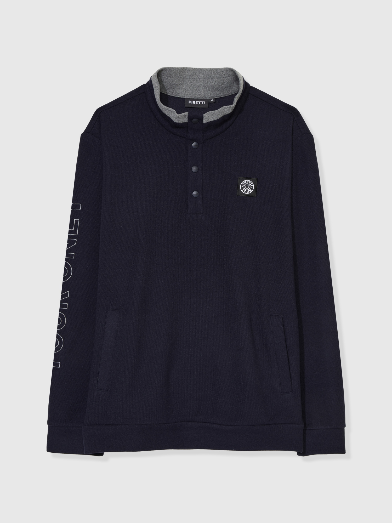 - 소매에 "TOUR ONLY" 자수와 등판에 피레티 심볼인 사자 자수로 포인트를 준 디자인.