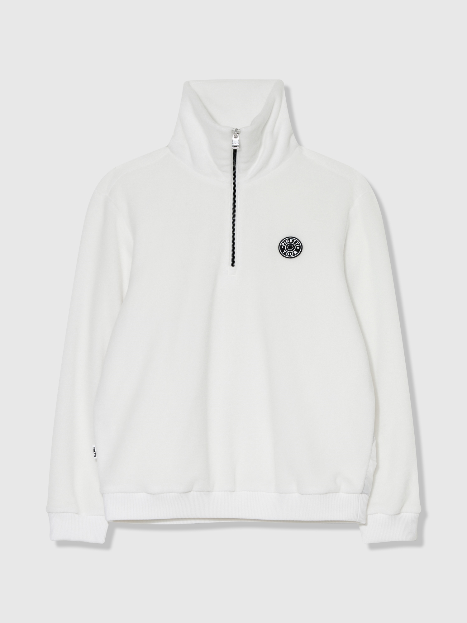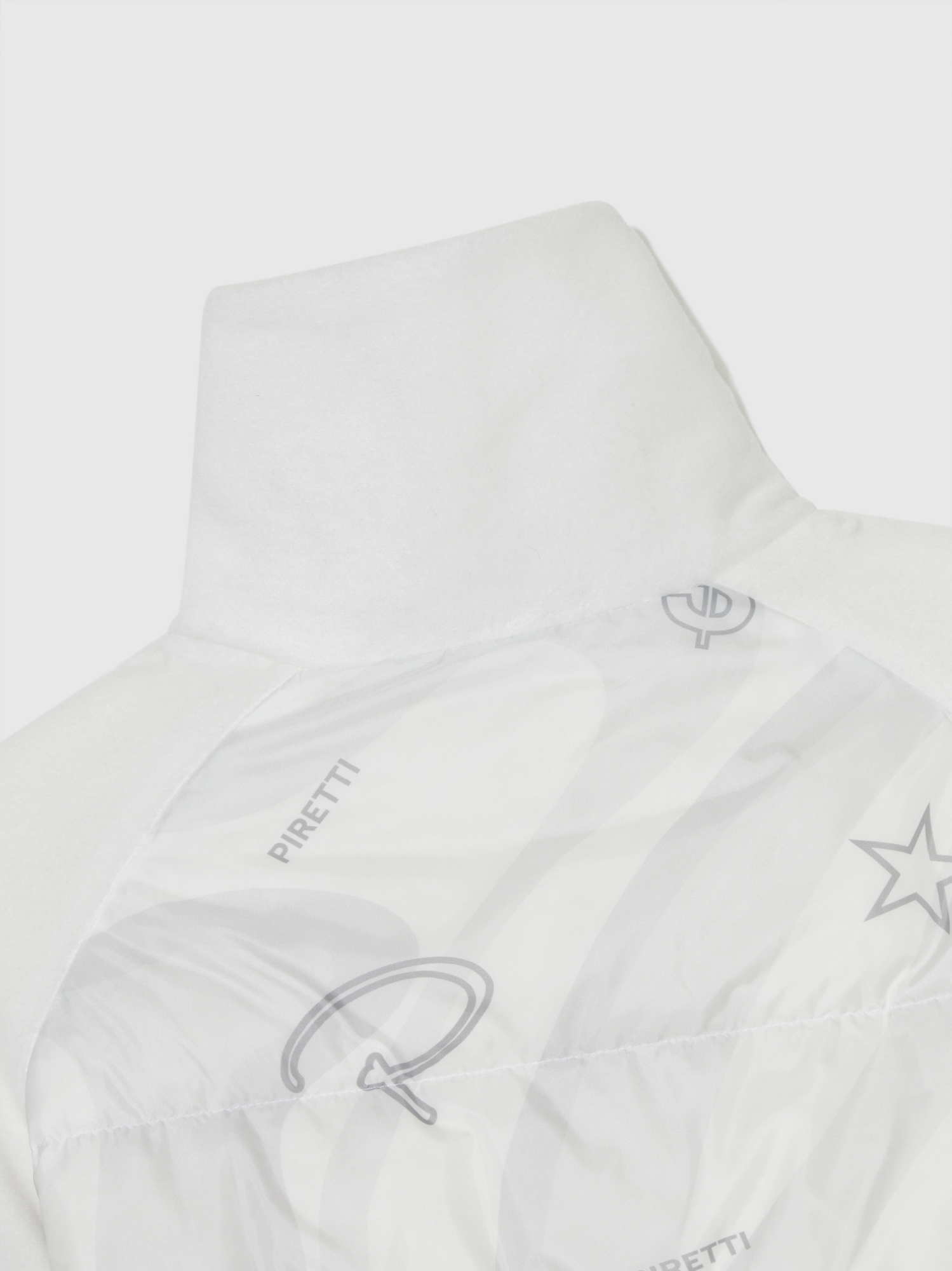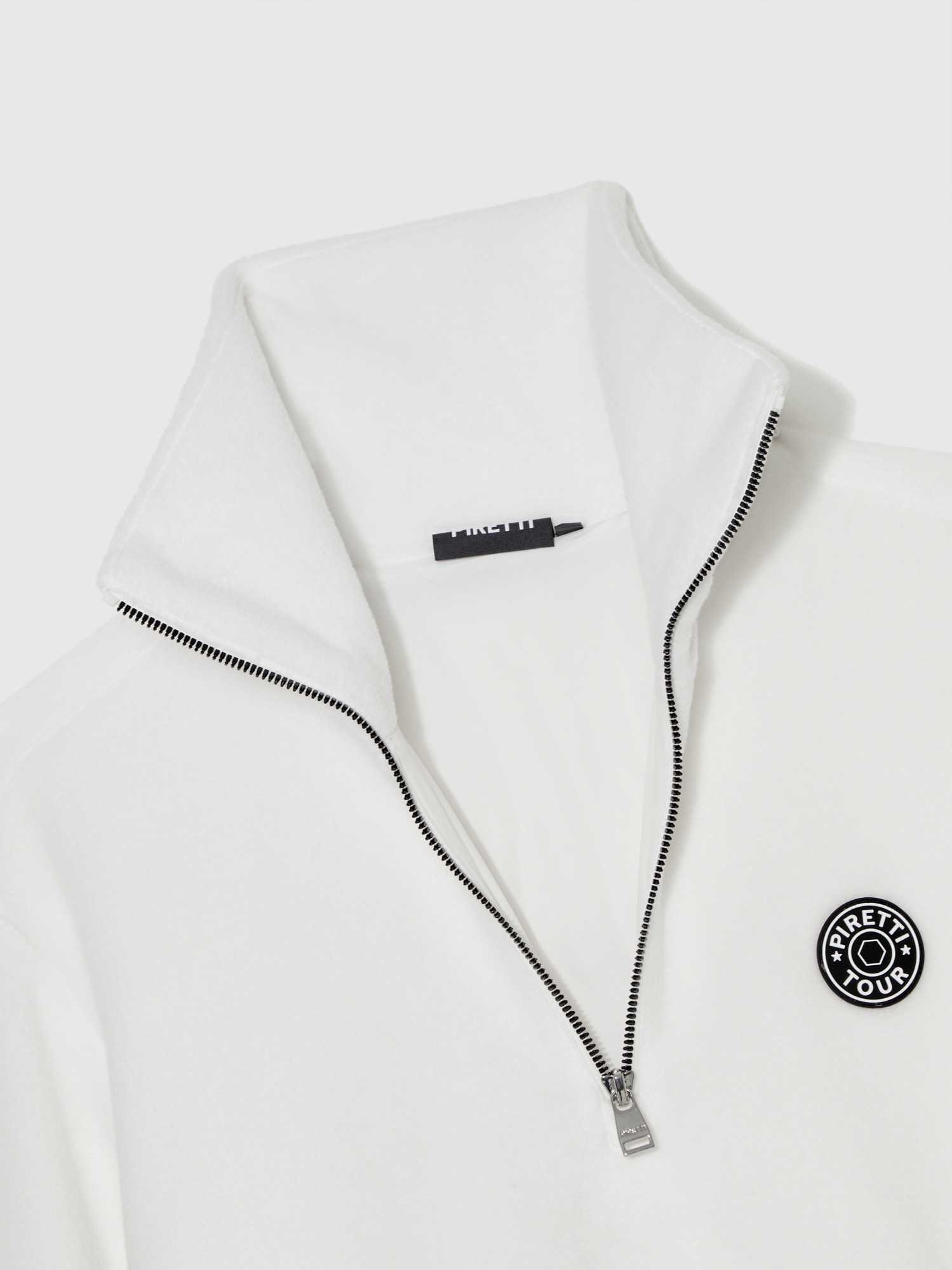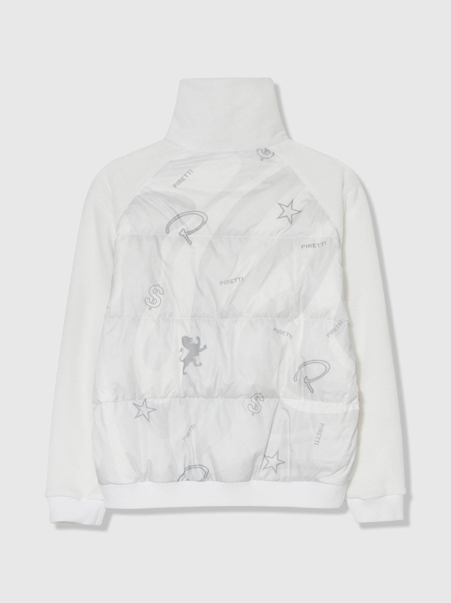 - 트렌디한 넓은 카라 형태와 시즌 모티브인 필드 등고선 패턴에 피레티 퍼터의 스템핑 모티브를 프린트한 우븐 원단 하이브리드로 피레티만의 감각적인 디자인 표현.