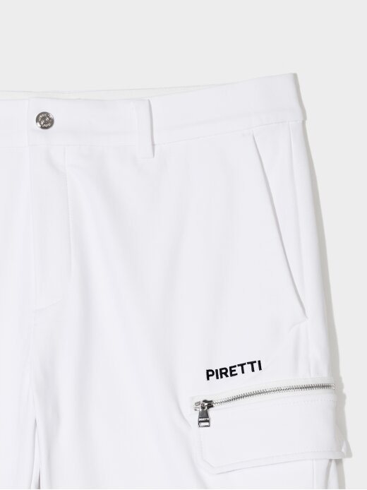- 디자인 포인트로 허벅지 주머니 모양 플랩과 지퍼 사용.