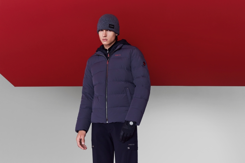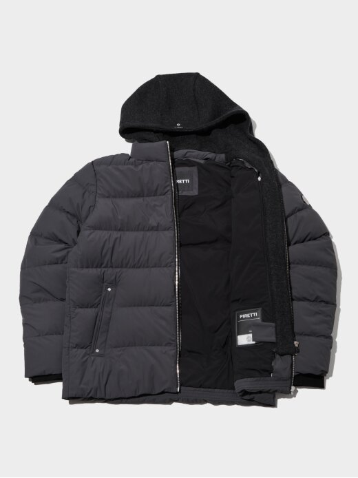 [고급스러운 니트 후드가 적용된 중경량 다운 자켓]