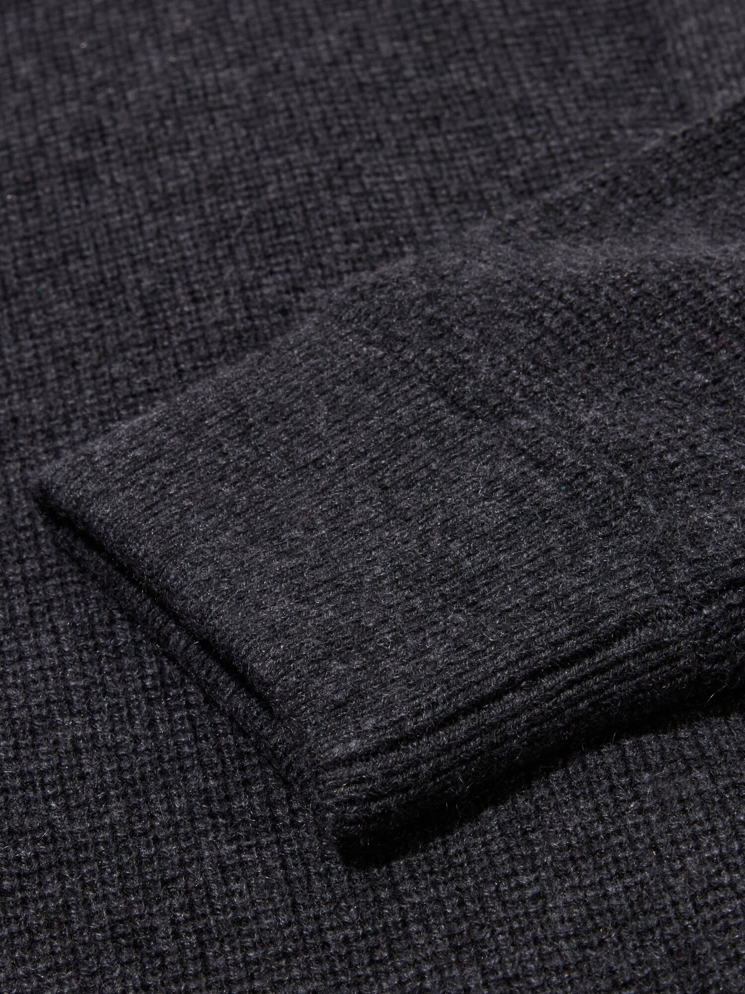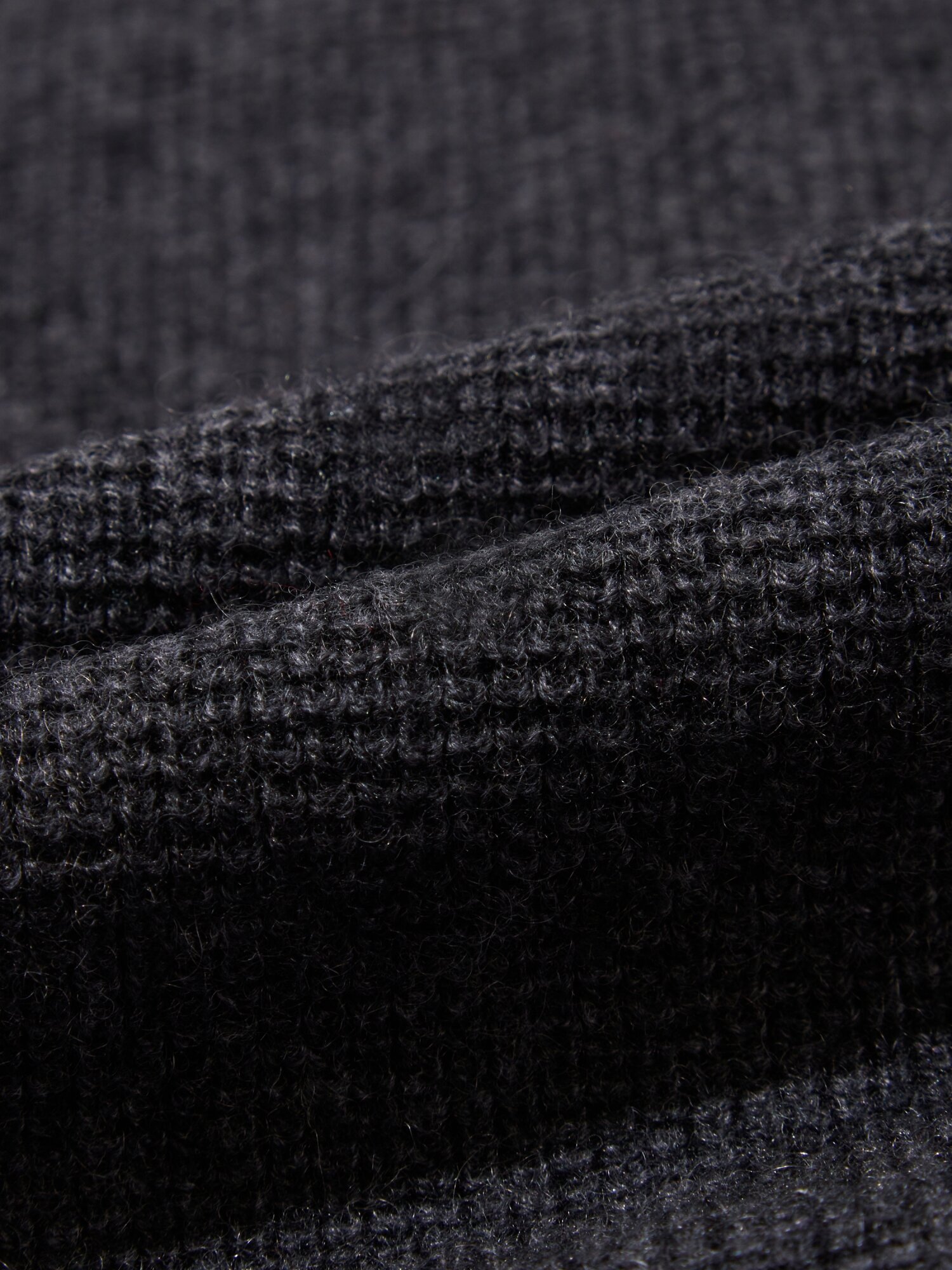 - 소프트한 터치감의 캐시미어 혼방 원사를 입체적인 와플조직으로 편직.