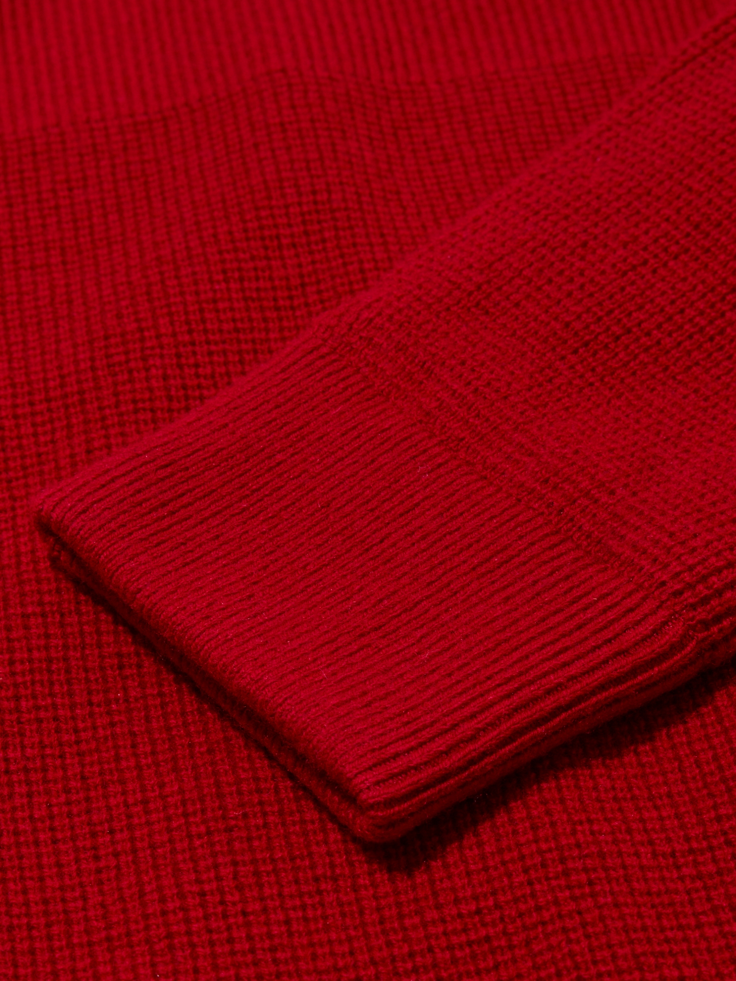- 소프트한 터치감의 캐시미어 혼방 원사를 입체적인 와플조직으로 편직.