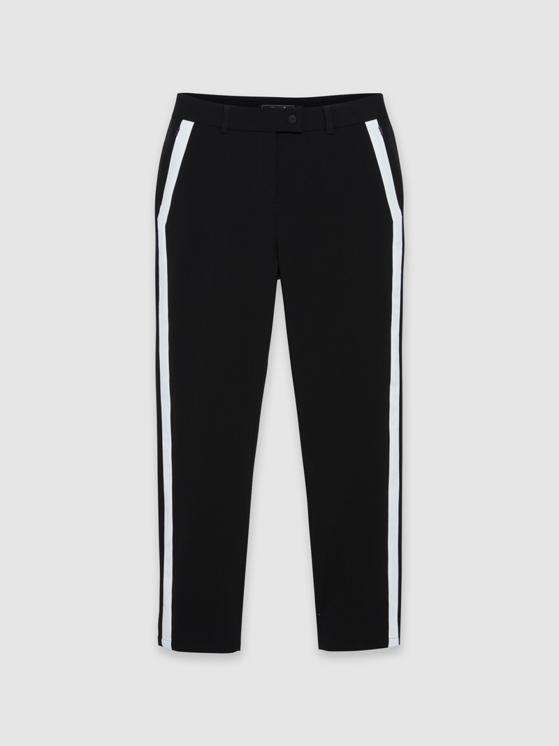 - 스트레치가 우수한 폴리스판 소재에 사이드 배색으로 포인트를 주어 슬림한 실루엣을 제안하는 여름 9부 두잉 팬츠