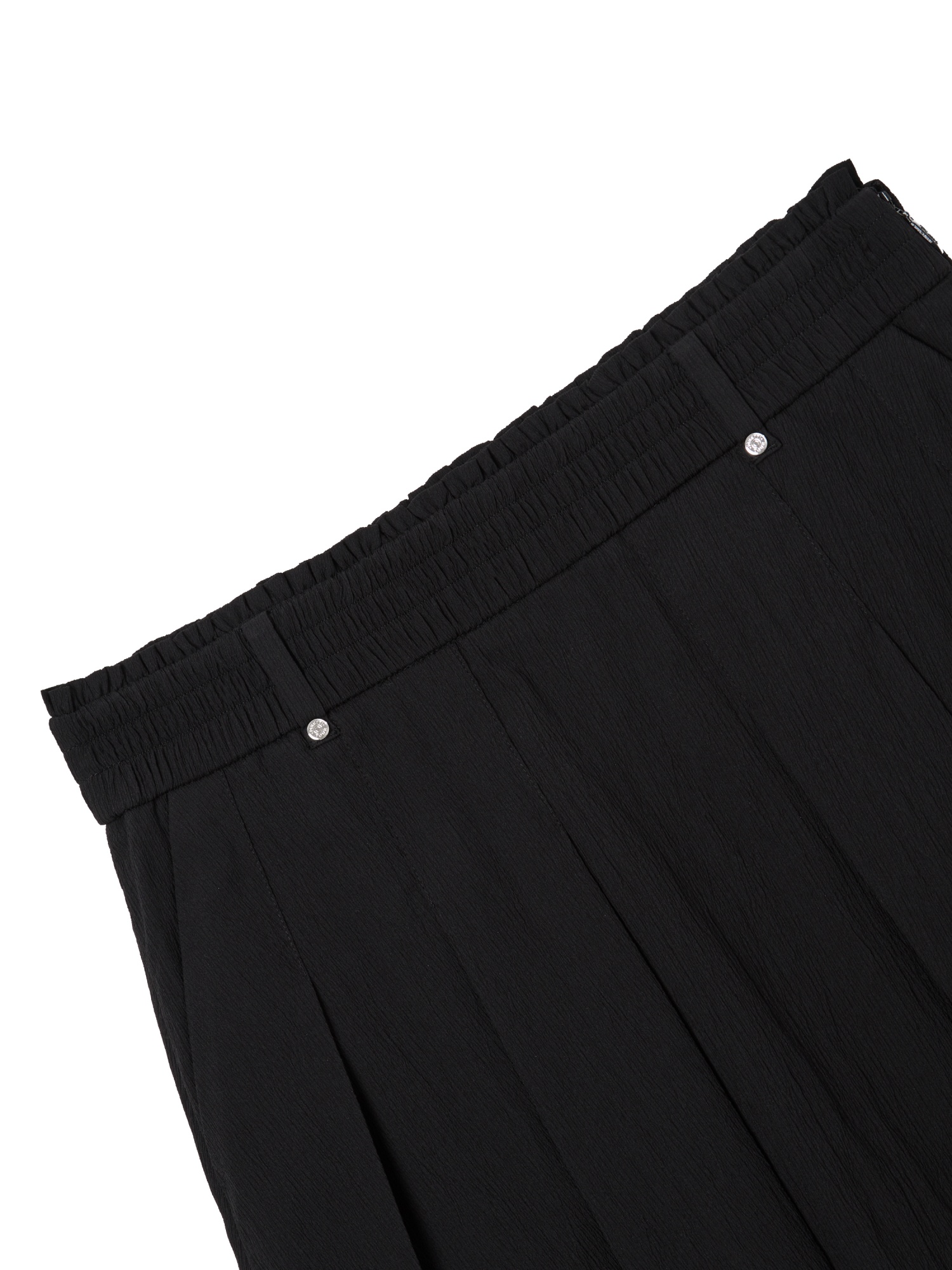 - 내추럴한 외관의 소재와 허리 프릴 디테일, 플레어 실루엣으로 여성스러운 스타일을 연출하는 큐롯.