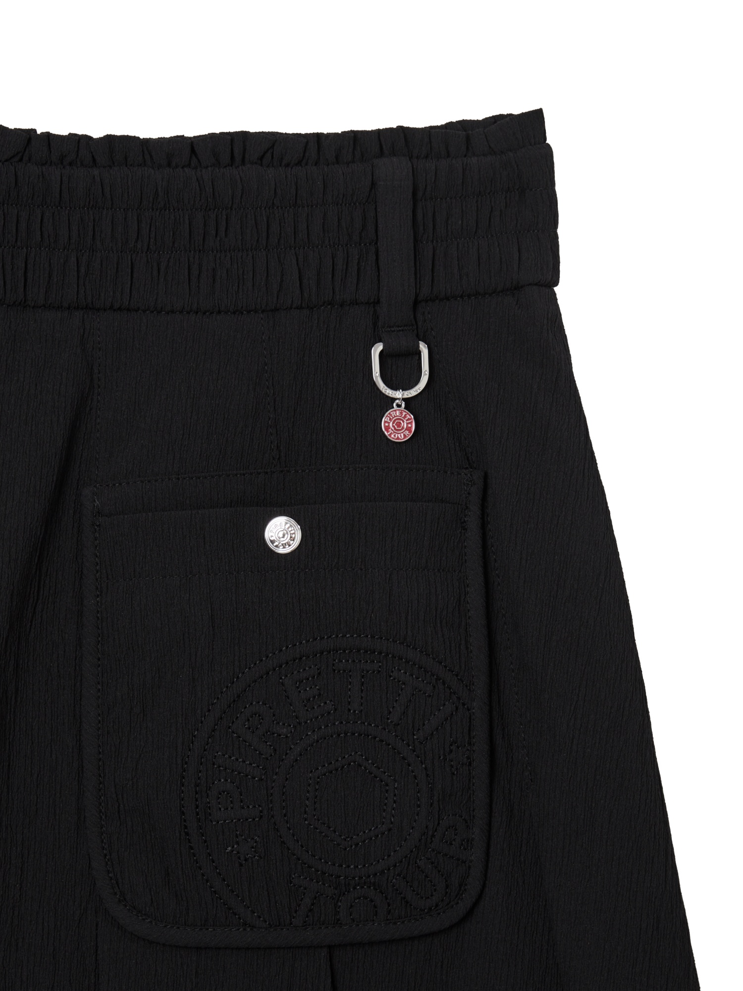 - 무게추 심볼 자수 뒤 포켓 디테일로 포인트를 더함.
