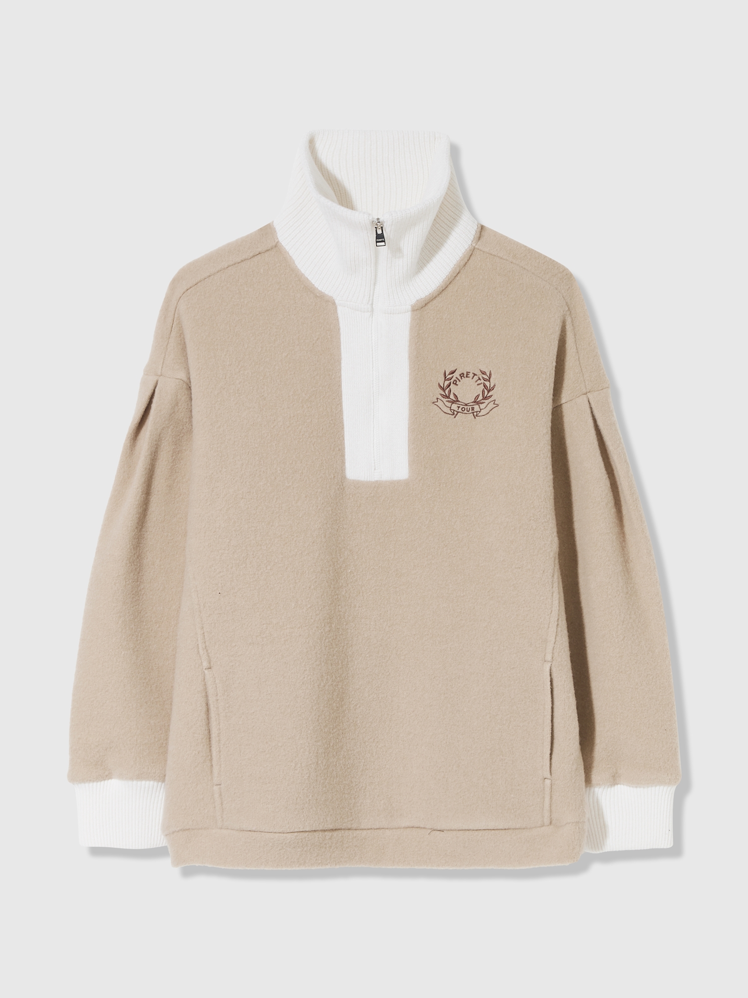 여성 니트 블럭 하프집 티셔츠 (Beige)
