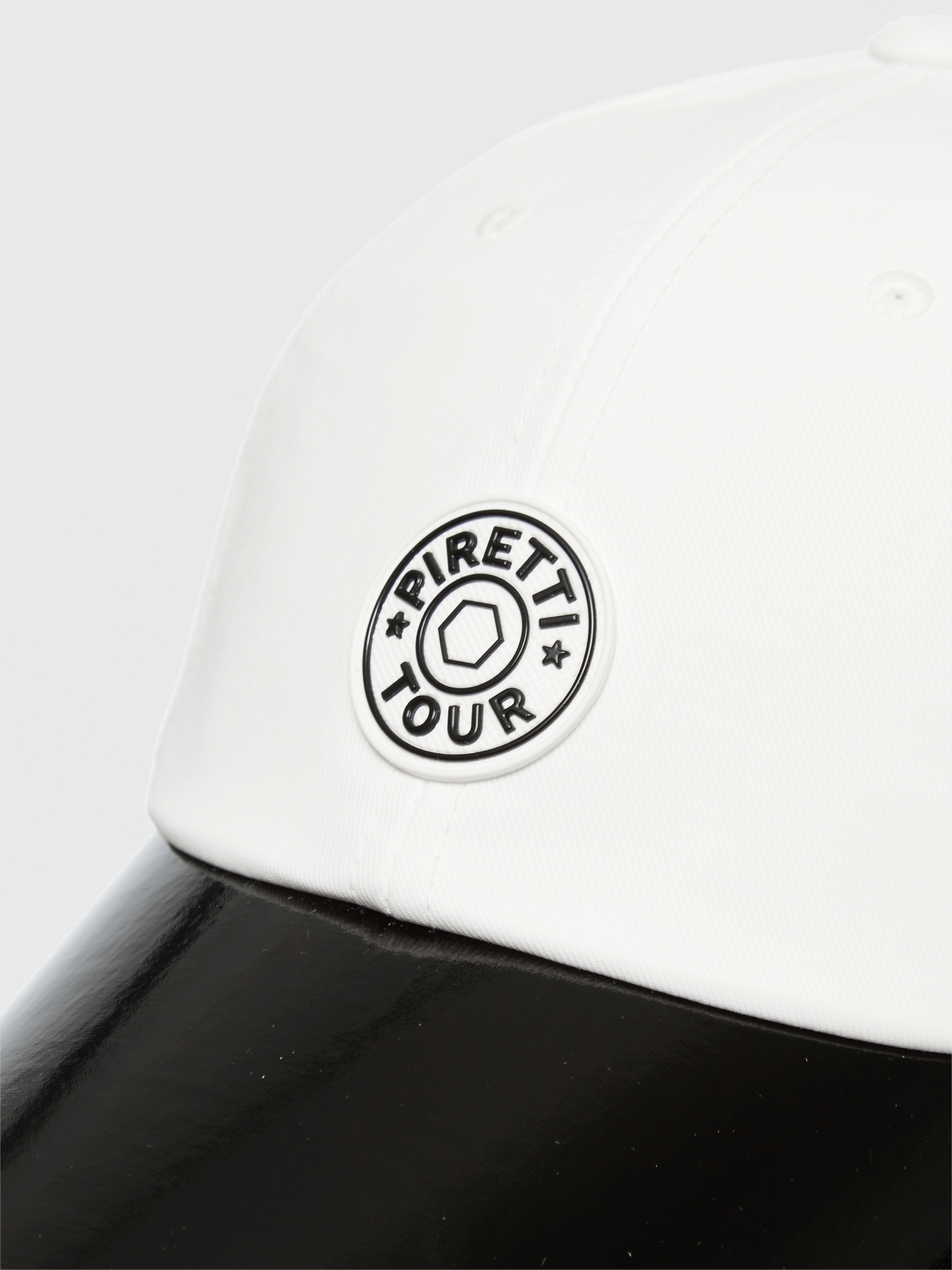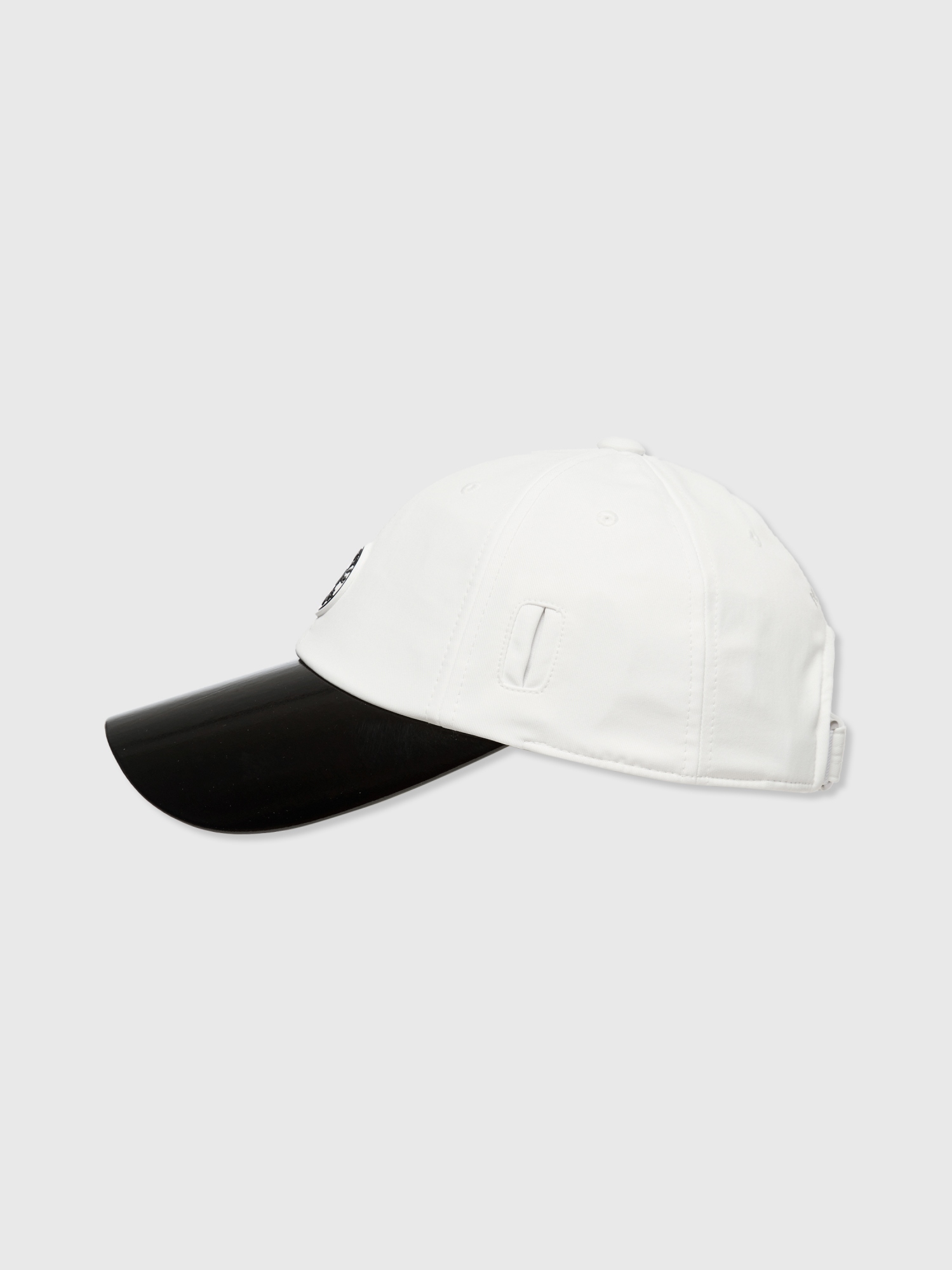 [샤이니한 챙배색과 사이드 선글라스 꽂이가 특징인 캡 모자]