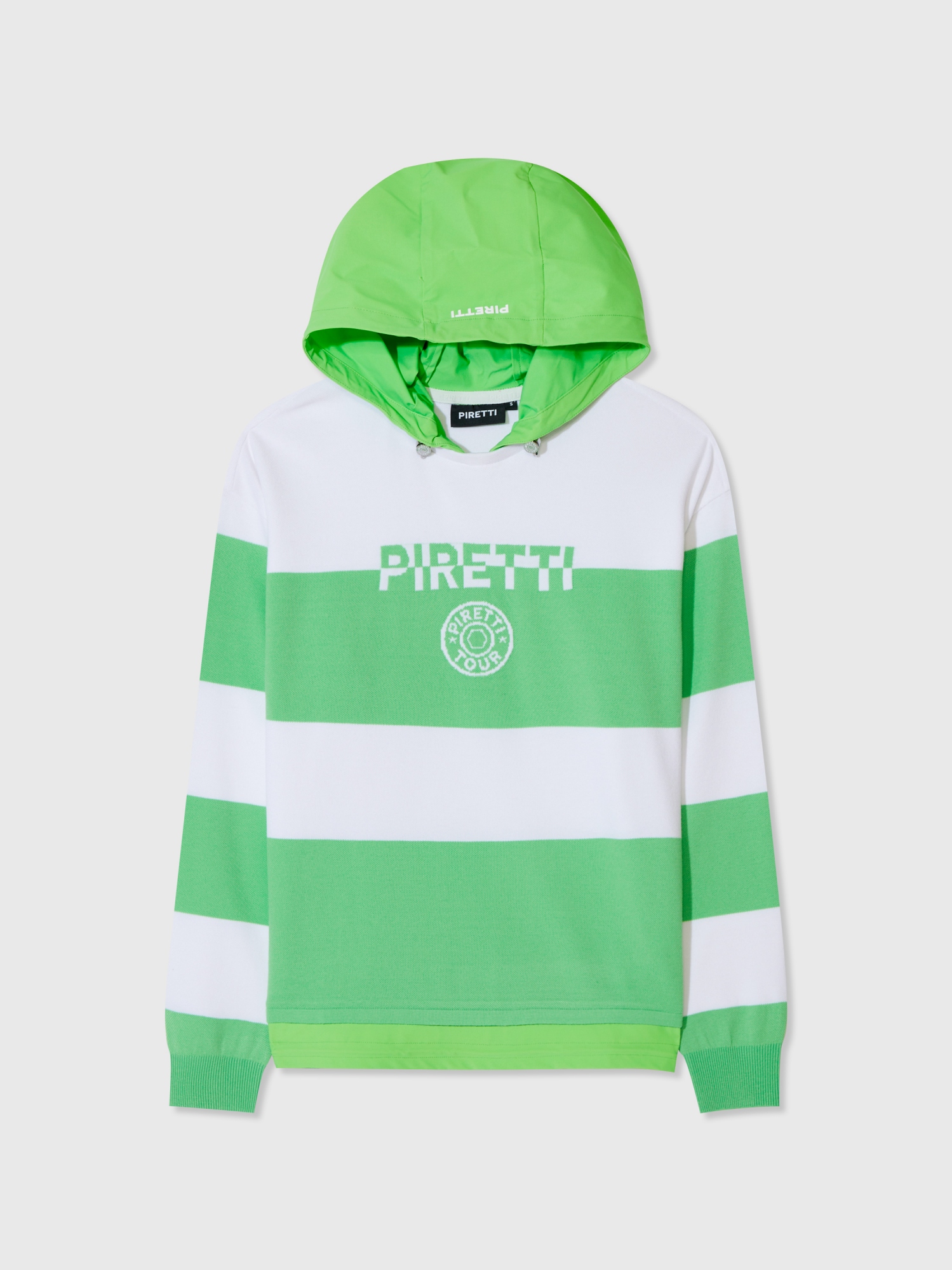 - 피케조직 스트라이프 디자인으로 영하고 스포티한 무드를 연출