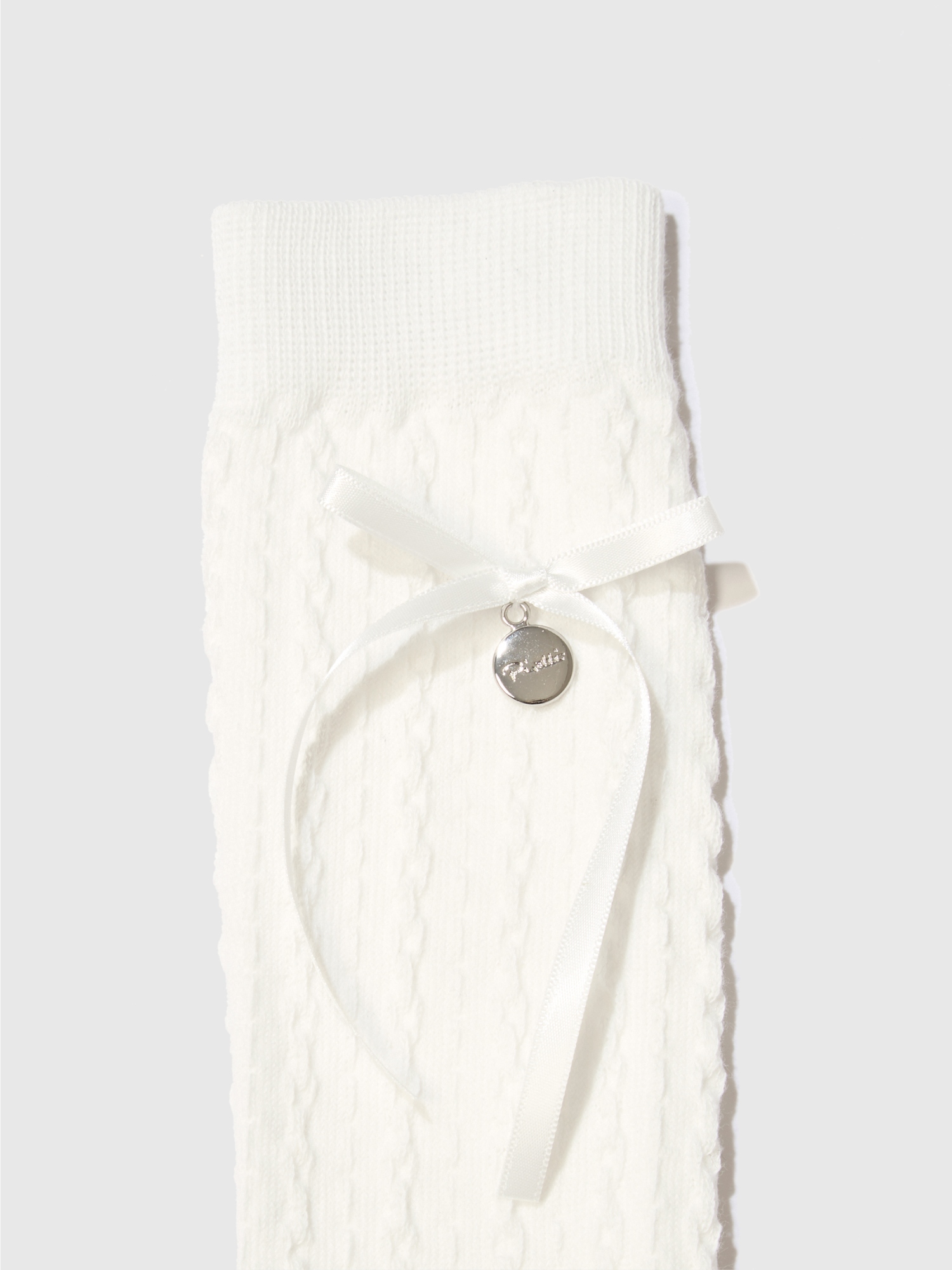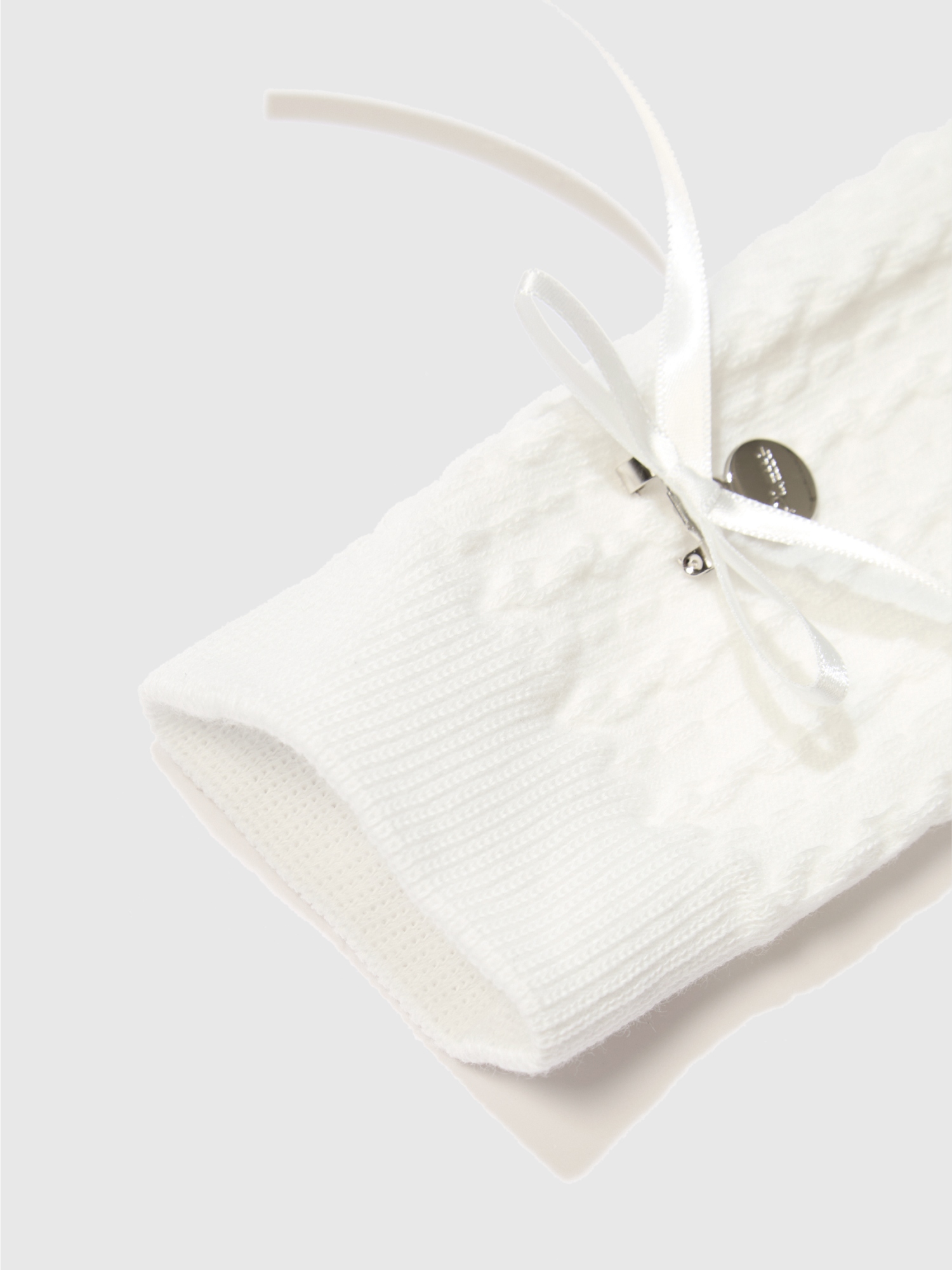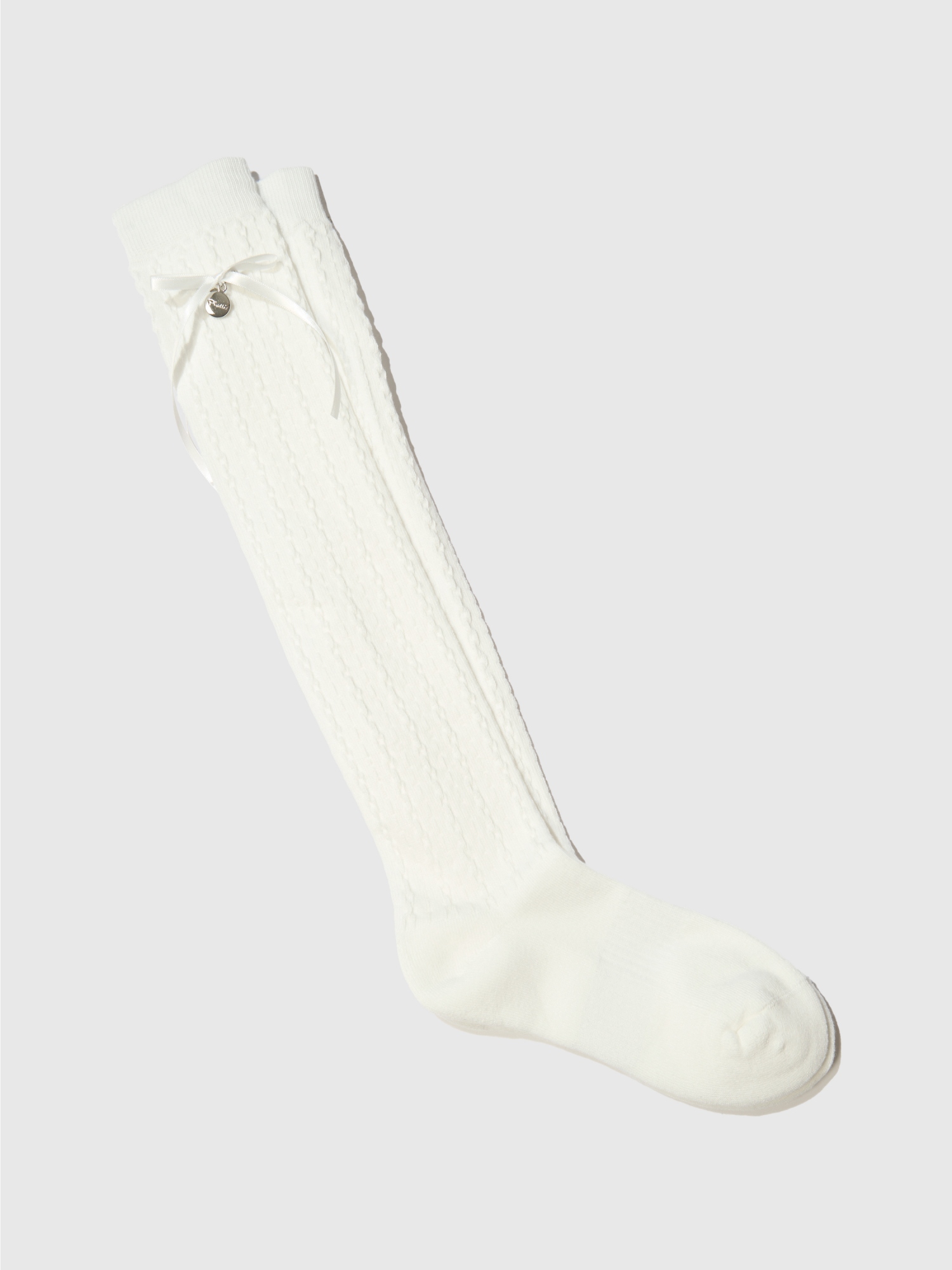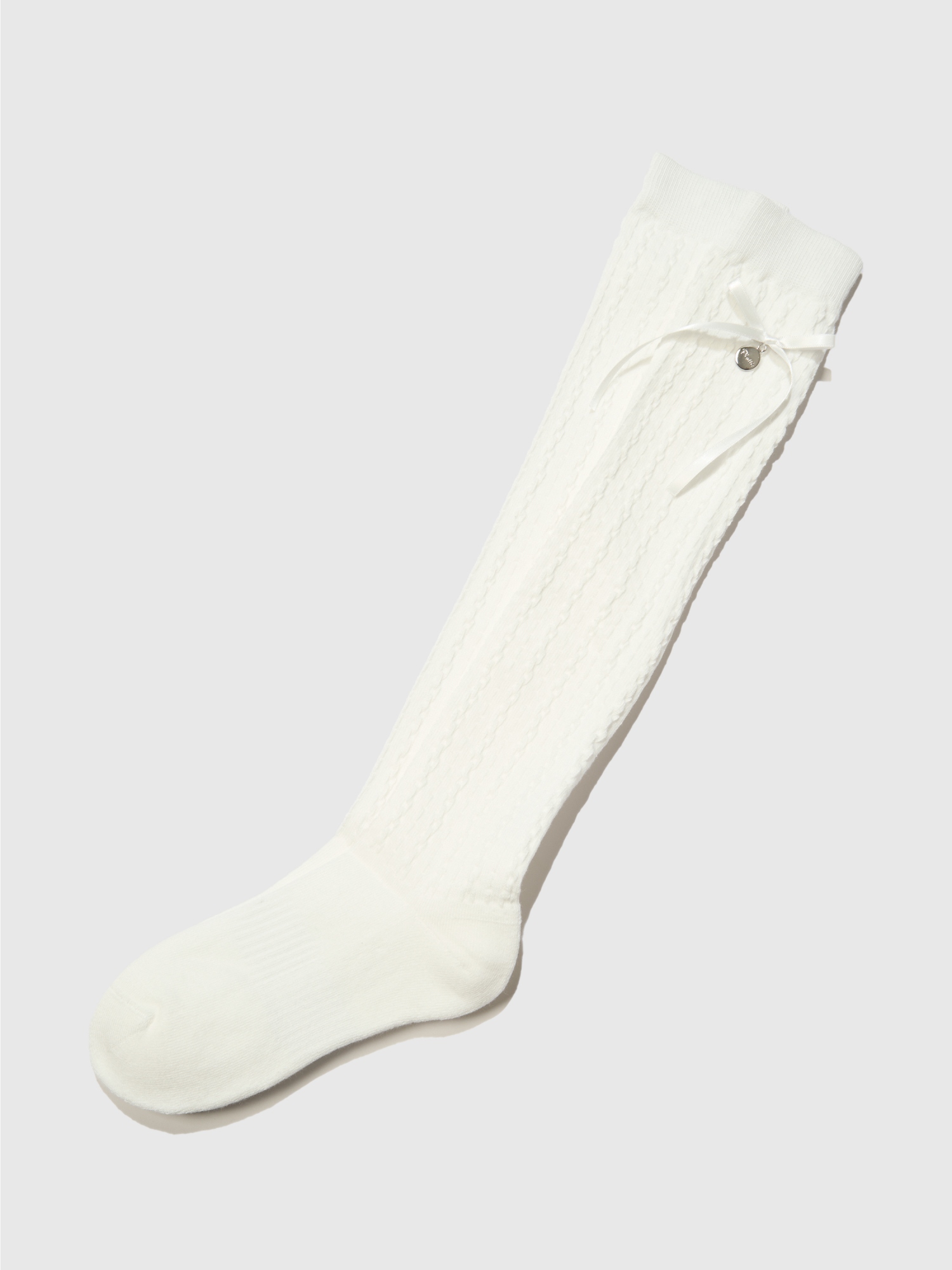 꽈배기 조직 리본 파일 니삭스(40cm) (White)