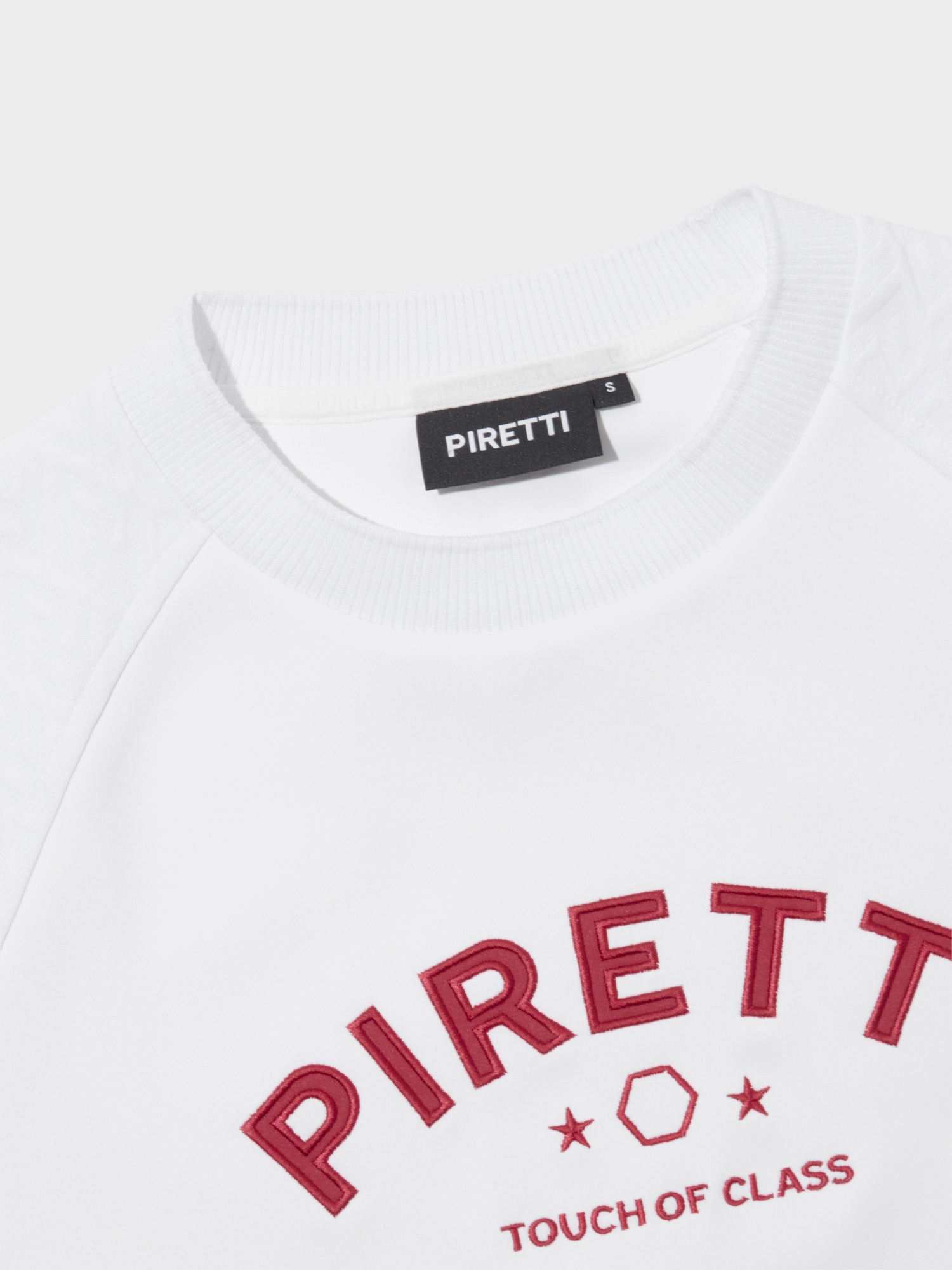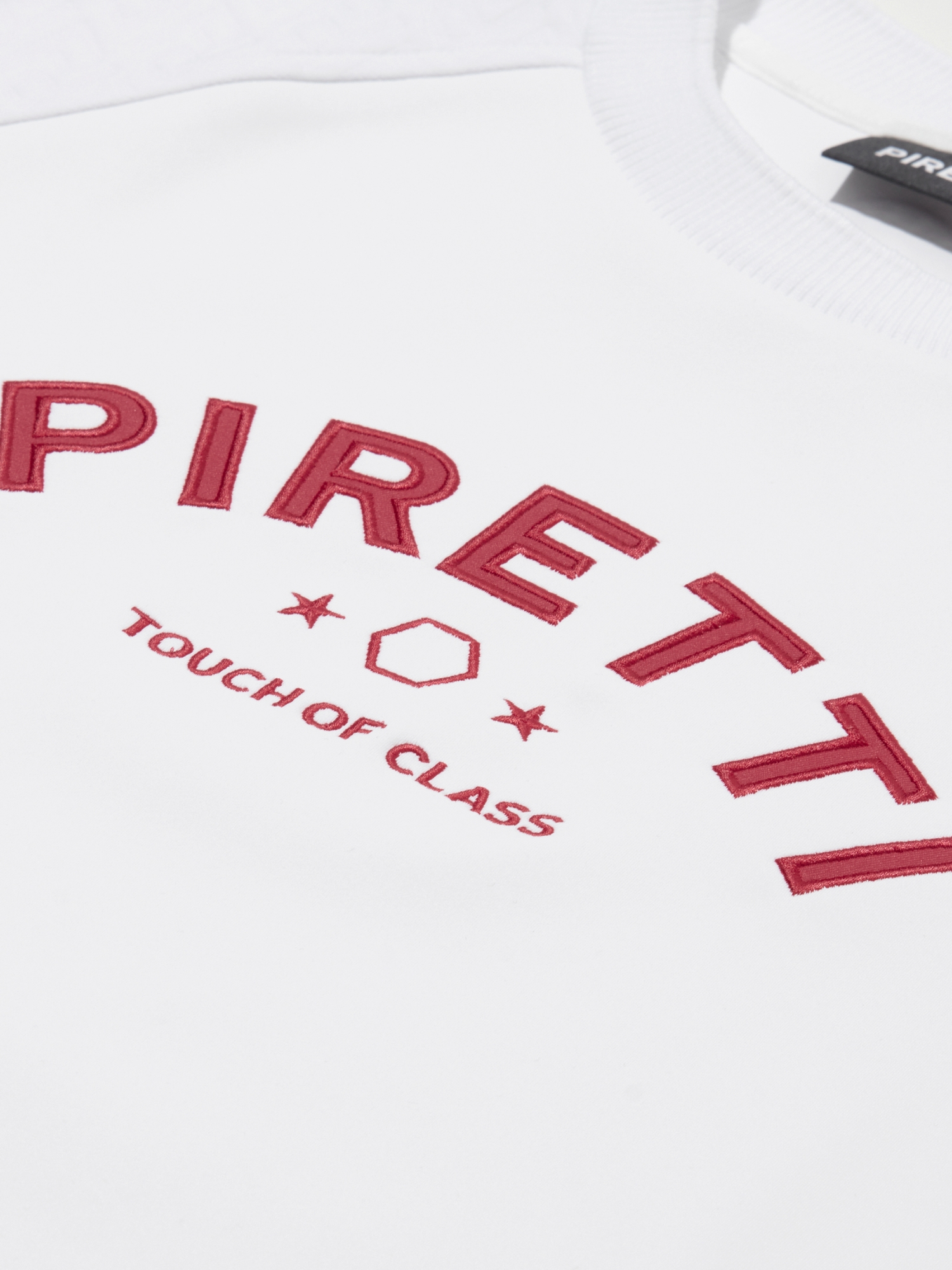 - 피레티 로고 자수가 엑티브한 무드 연출