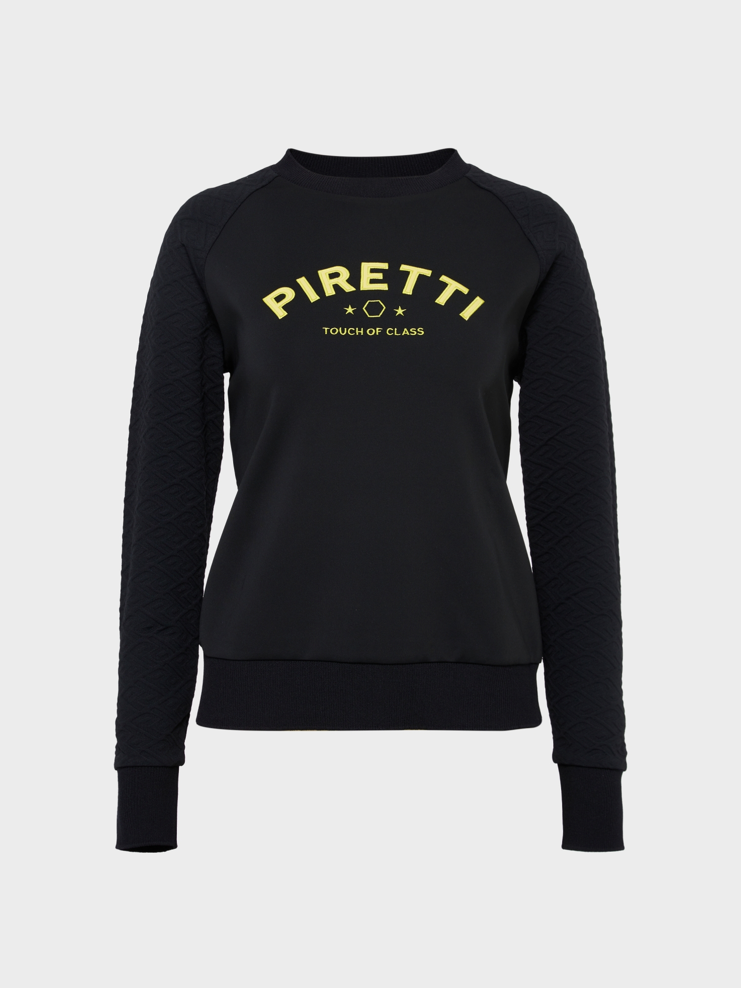 - 피레티 로고 자수가 엑티브한 무드 연출