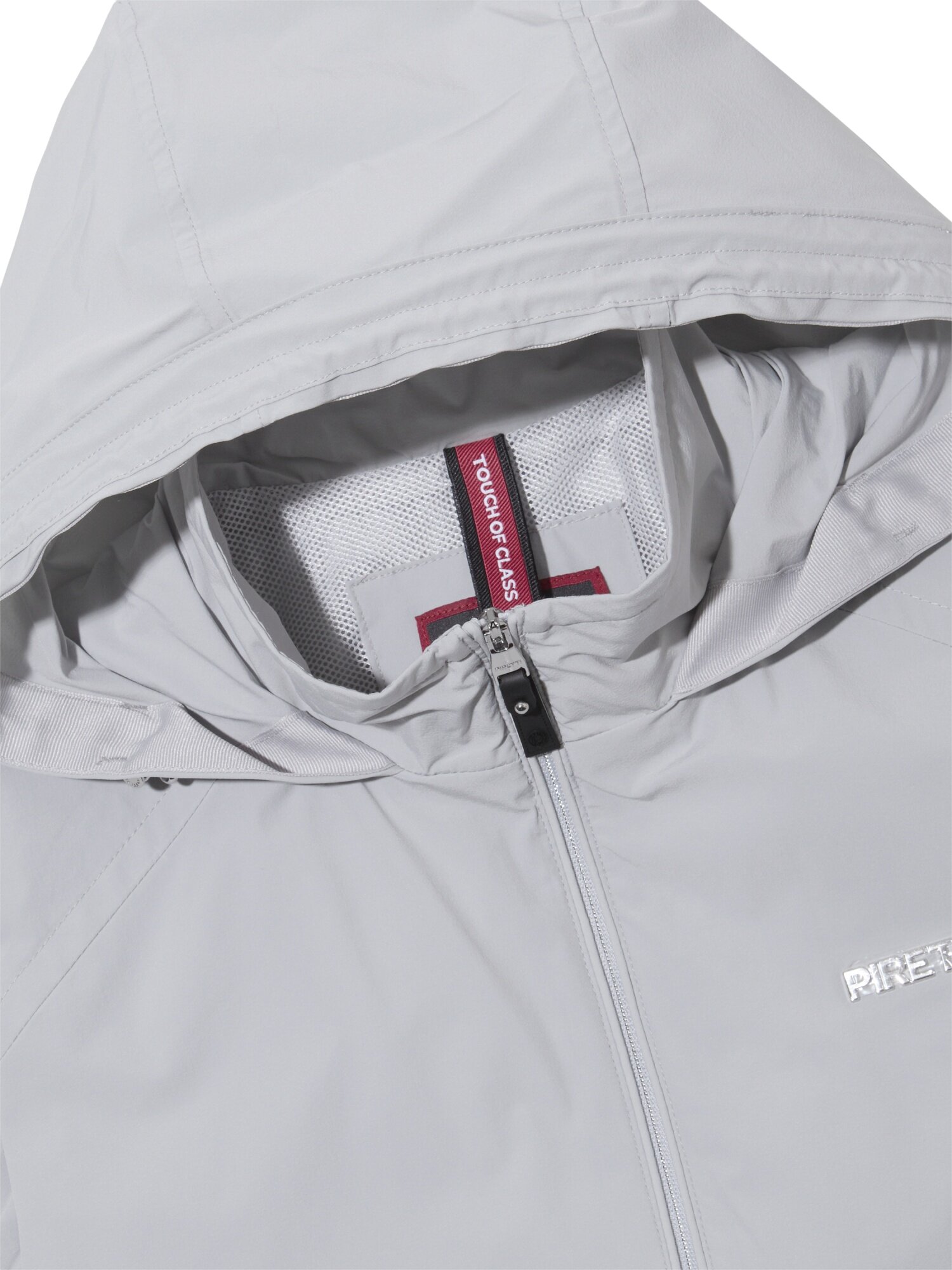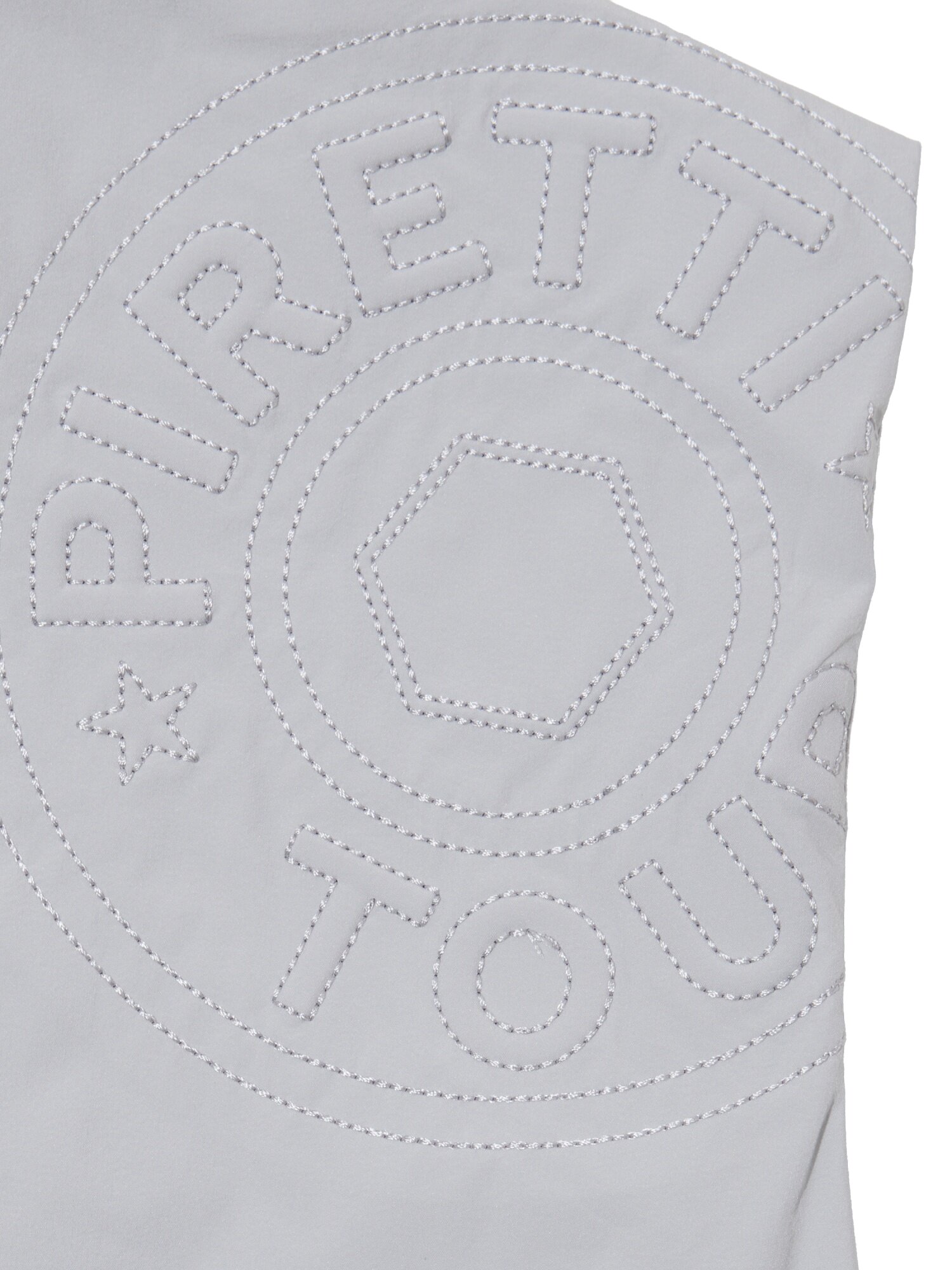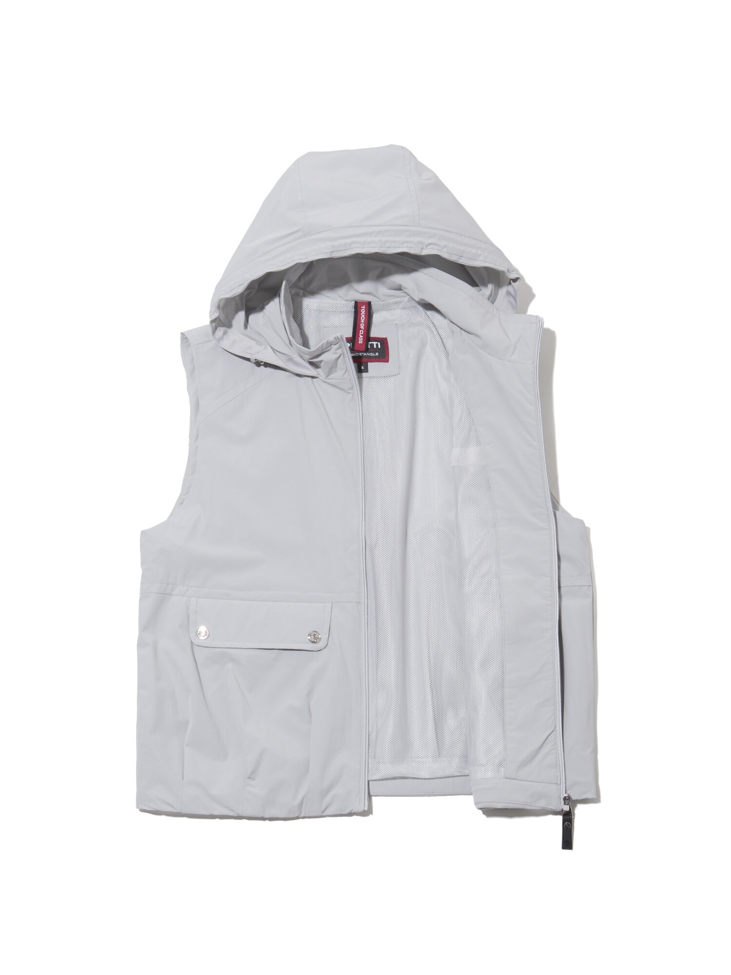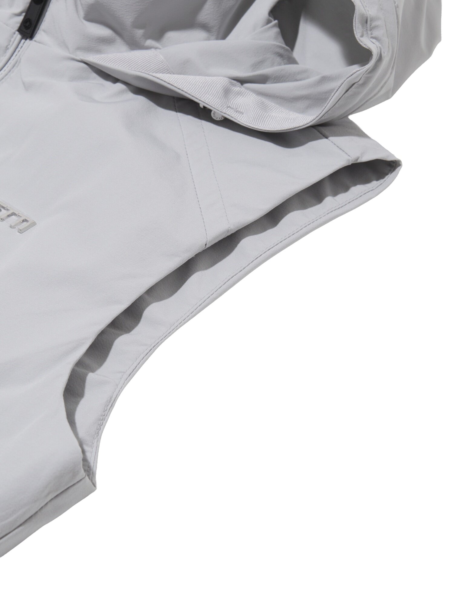 - 로듐 실버 로고와 등판 무게추 엠보 자수로 브랜드 아이덴티티를 강조한 베스트