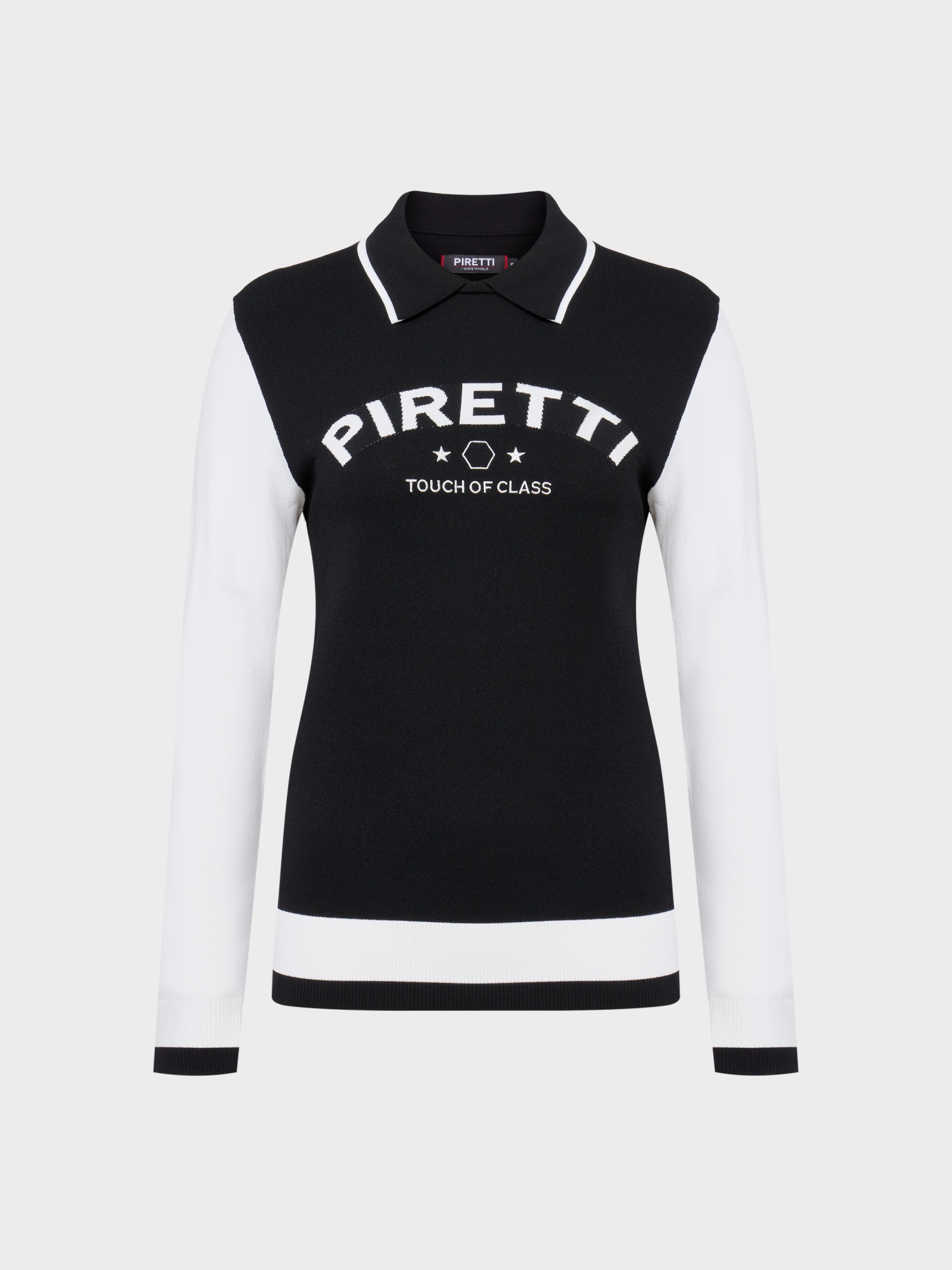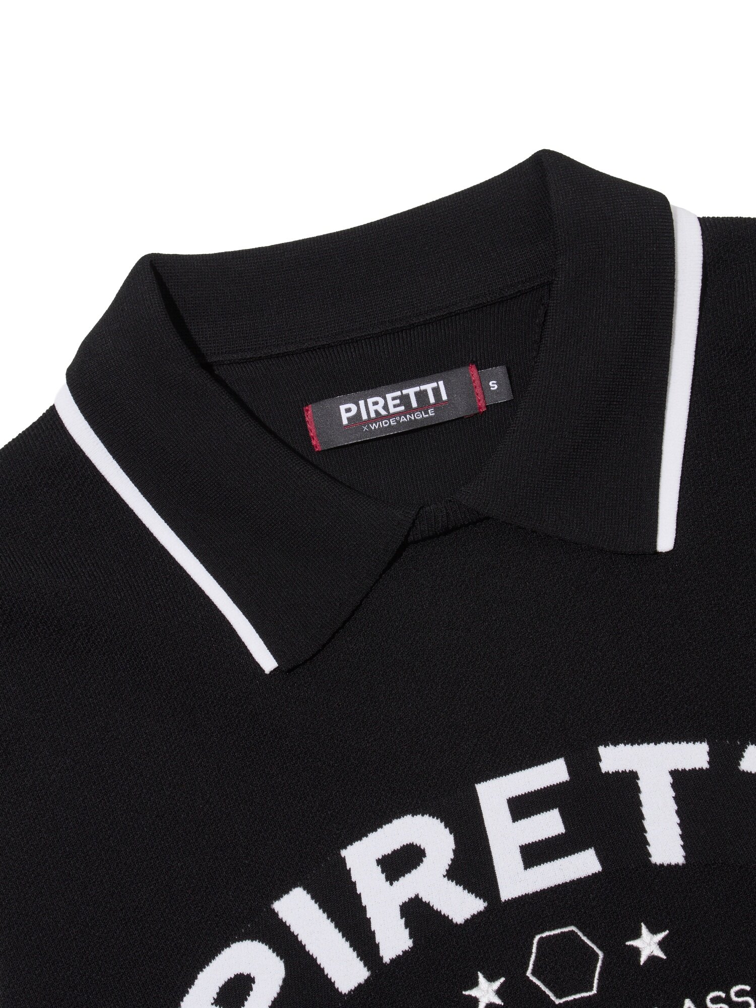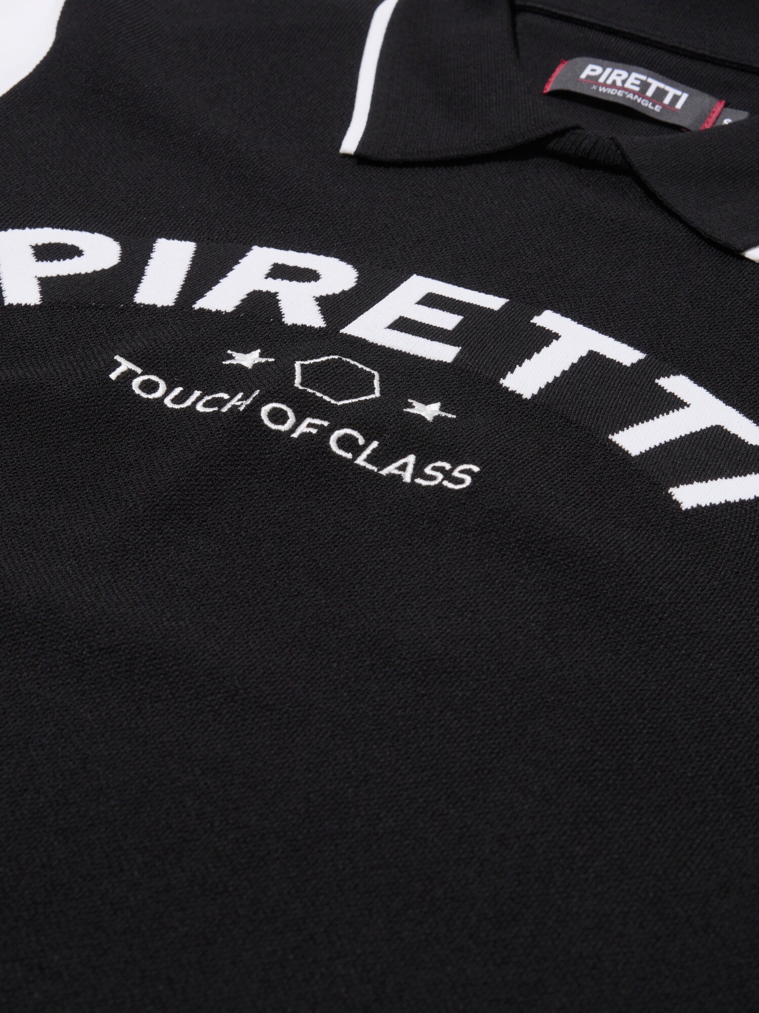 무게추 심볼의 피레티 로고와 별 모티브를 별도로 표현한 아트워크가 포인트.