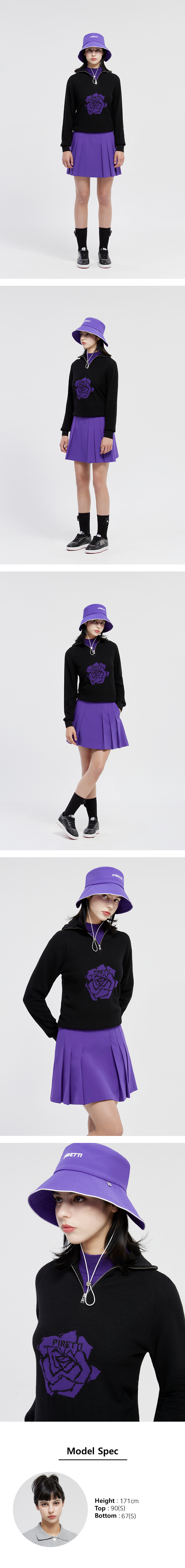 - 허리에 니트 배색에 로즈 포인트가 들어간 플리츠 큐롯