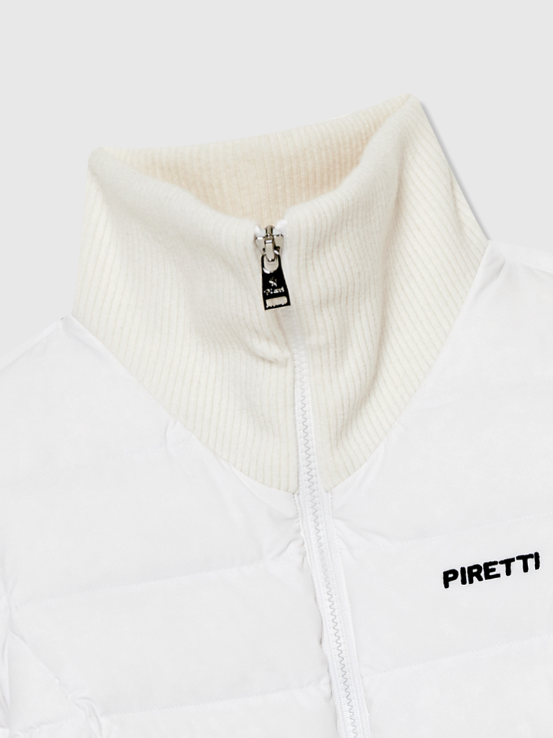 - 카라에 니트를 MIX하여 보온성을 보완하고 허리에 로고자수 밴드로 포인트