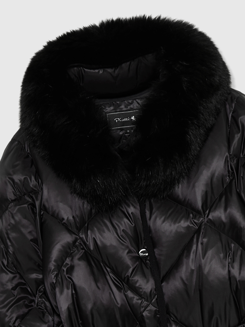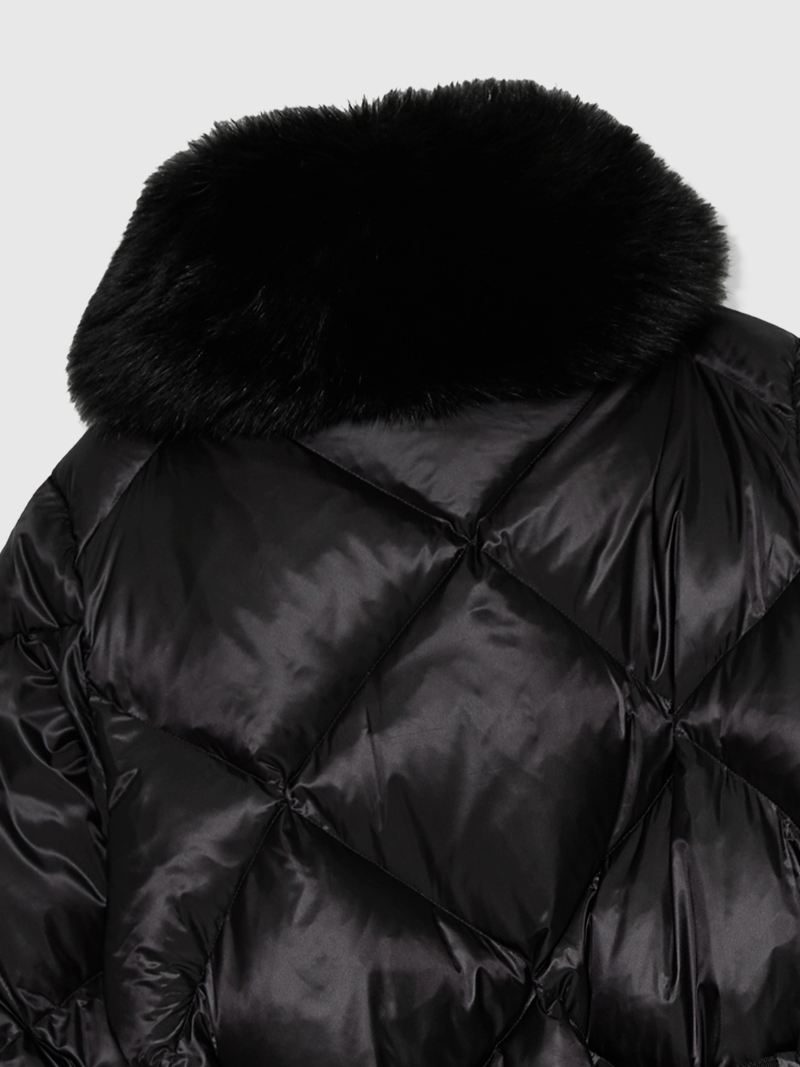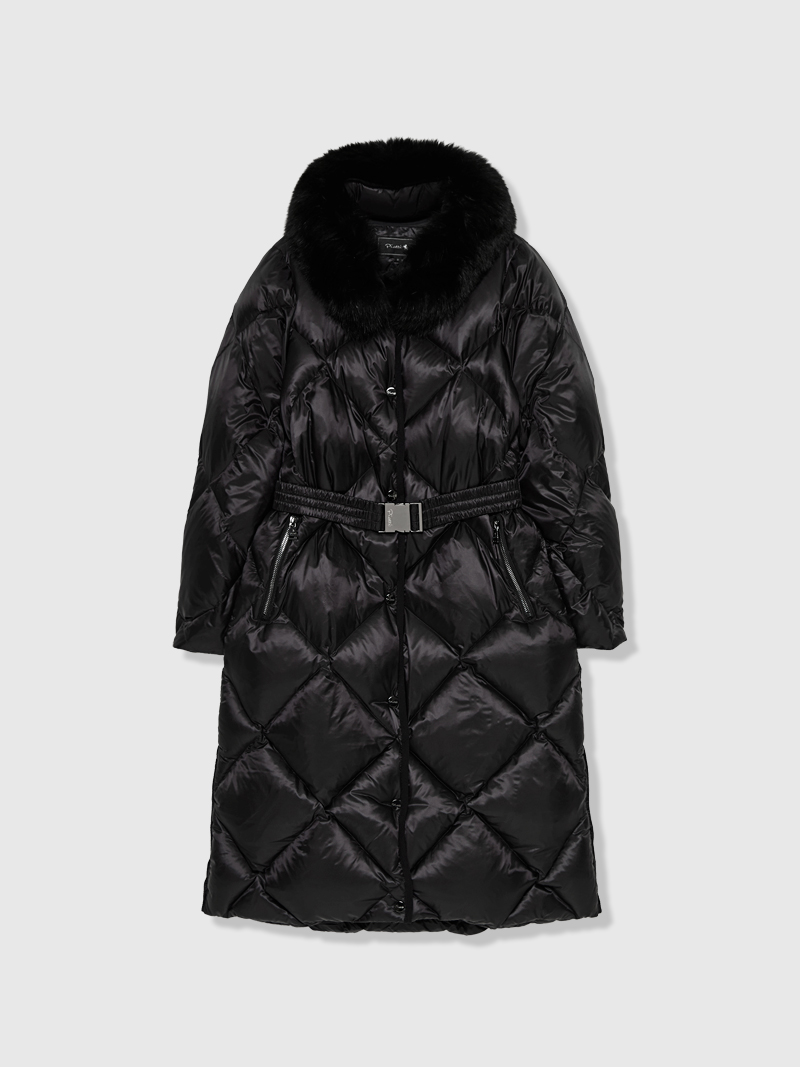 - 다이아 퀼팅과 블루 FOX FUR를 사용하여 고급스러운 외관 연출