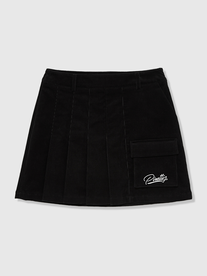 여성 바시티 코듀로이 플리츠 큐롯 (Black)