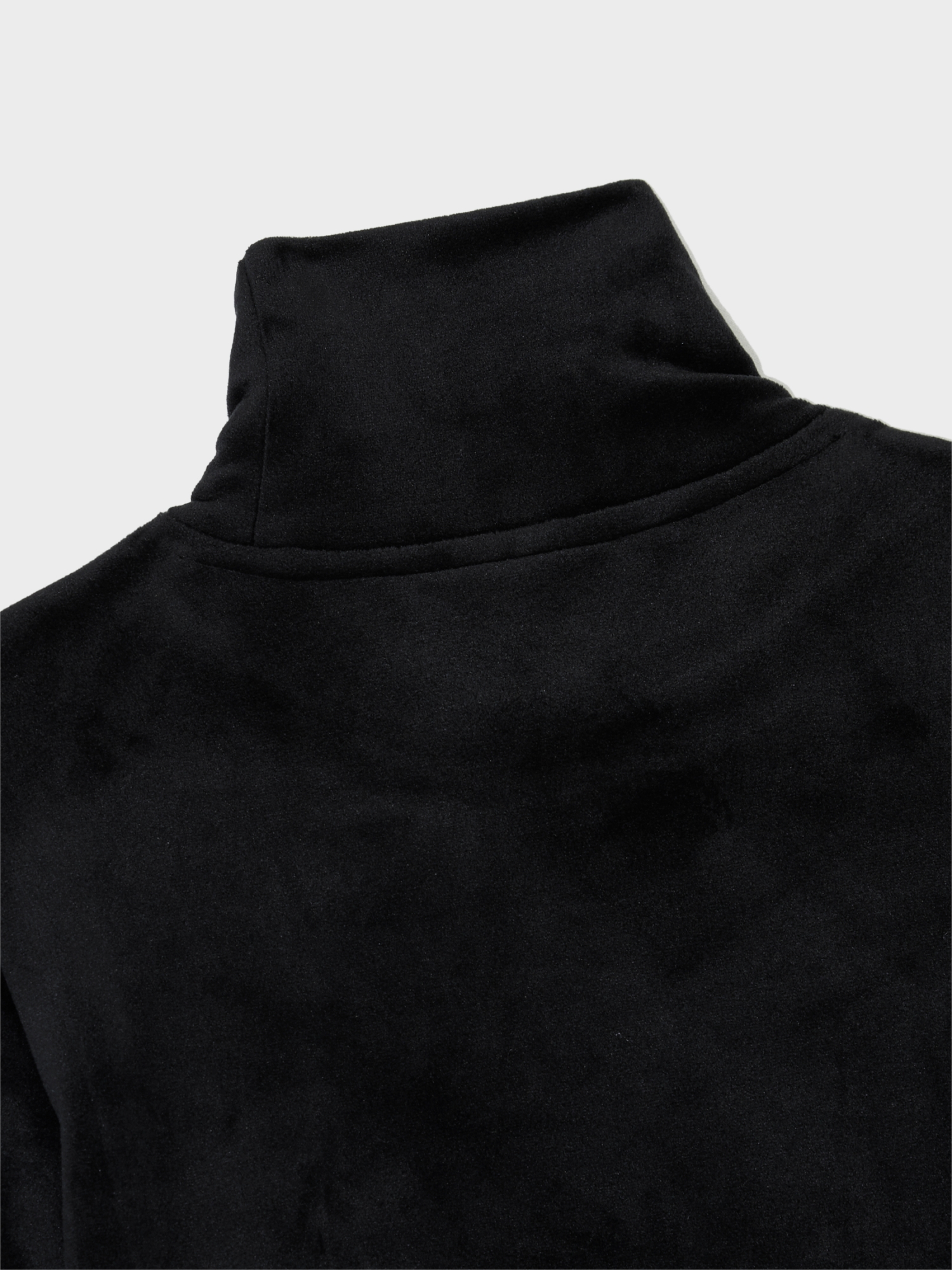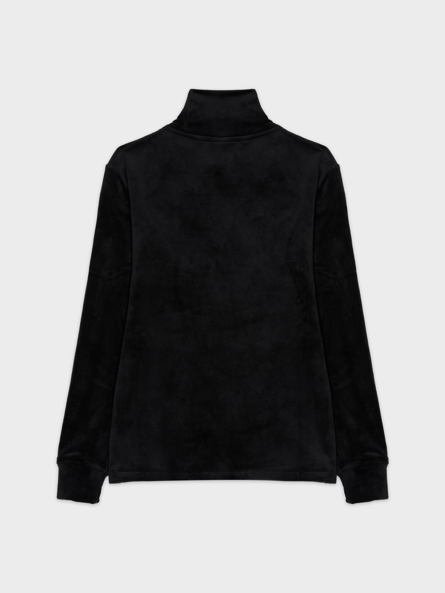- 벨벳라이크 소재를 사용하여 계절감을 준 모크넥 티셔츠