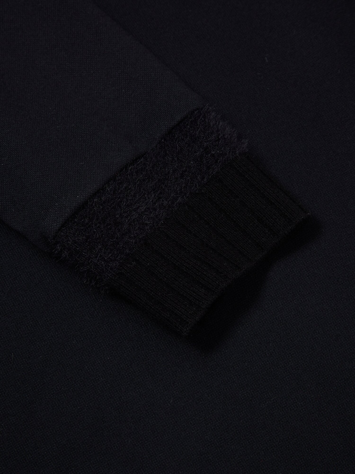 - 칼라에 헤어리한 원사를 사용해 코지한 분위기 연출