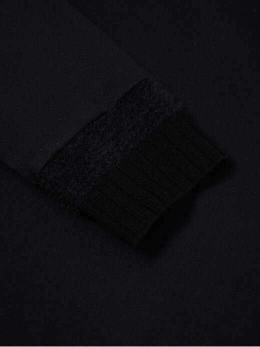 - 소매에 더해진 니트 배색으로 부드러운 터치감과 보온성 강화