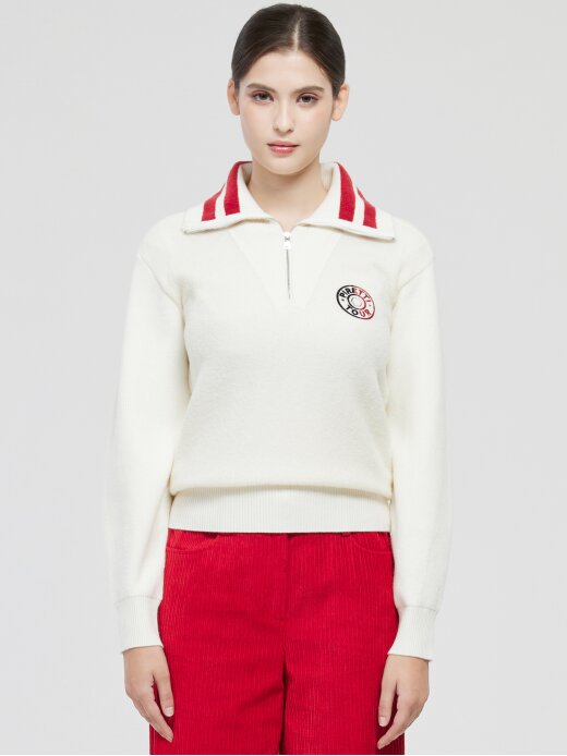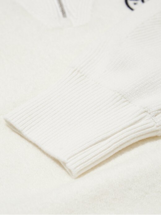 - 다양한 원사와 조직을 사용한 반집업 스웨터