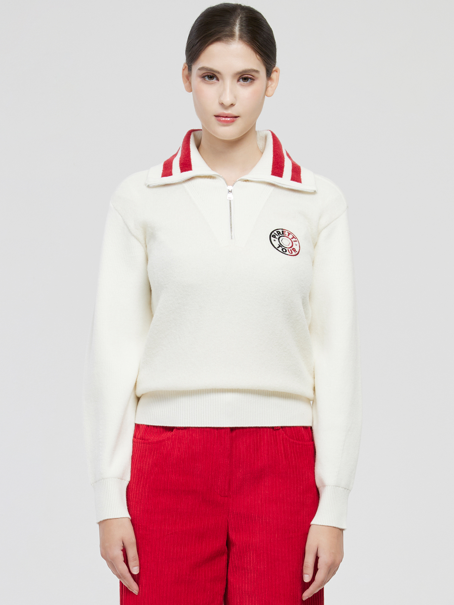 - 크림슨 컬러 배색으로 액티브하고 캐주얼한 무드 연출