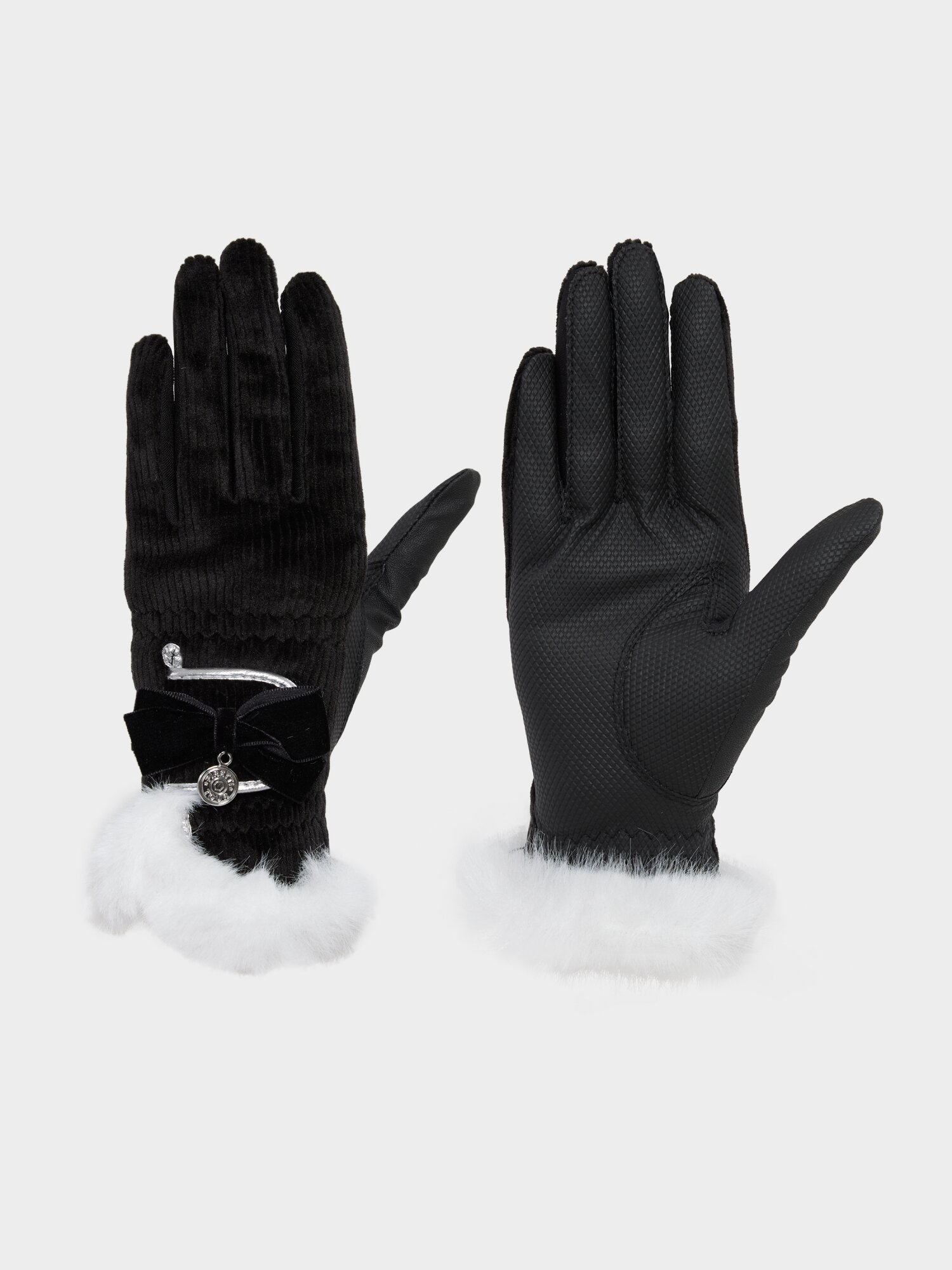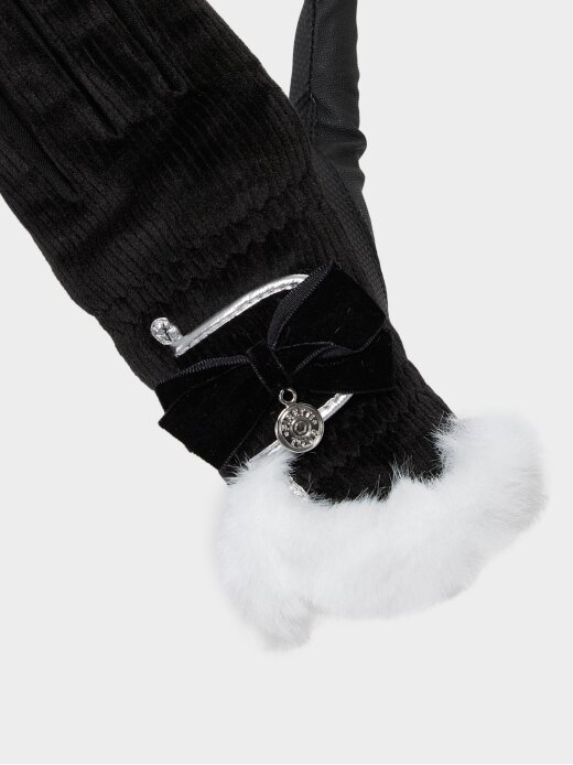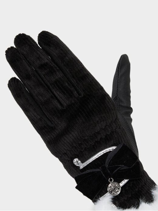 여성 FUR배색 방한 골프장갑(양손) (Black)