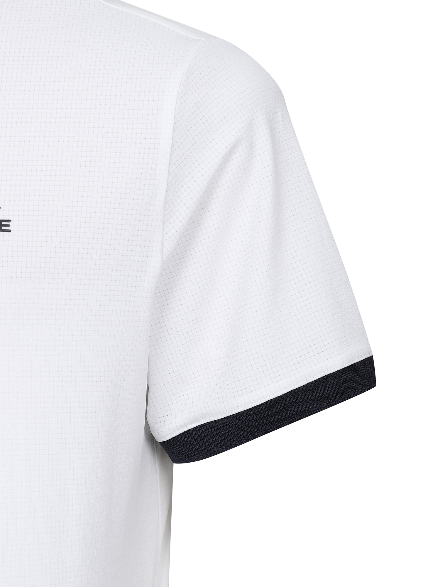 -  에어홀 소재를 사용한 쿼터집업 스타일의 티셔츠