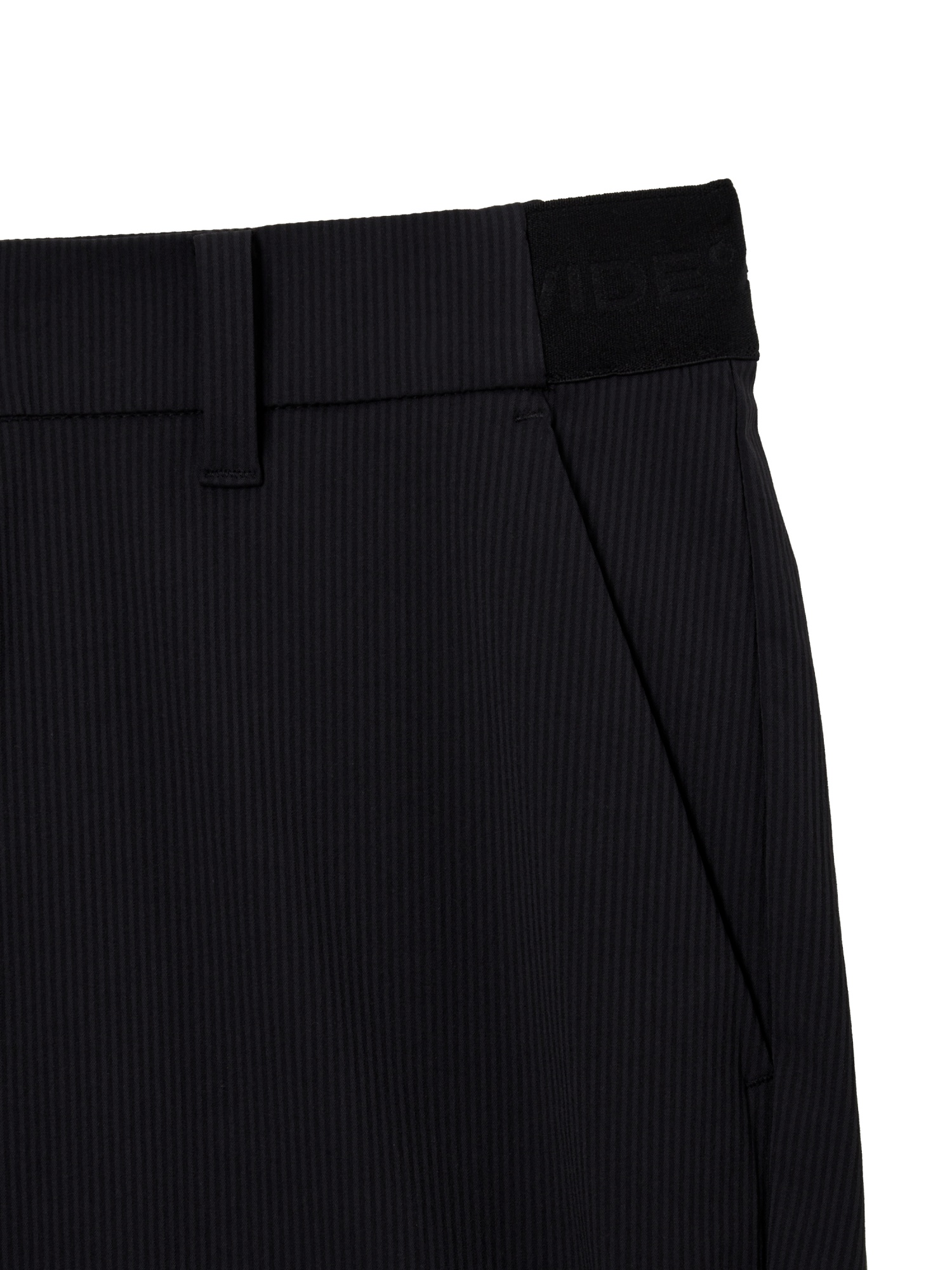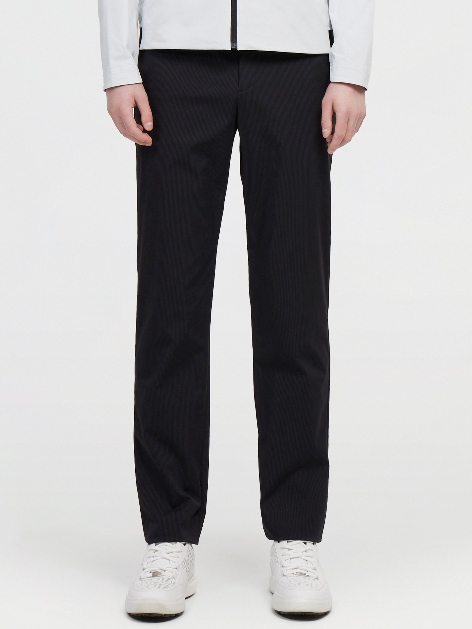 - 은은한 스트라이프 골 조직 소재를 사용한 퍼포먼스 슬림핏 팬츠