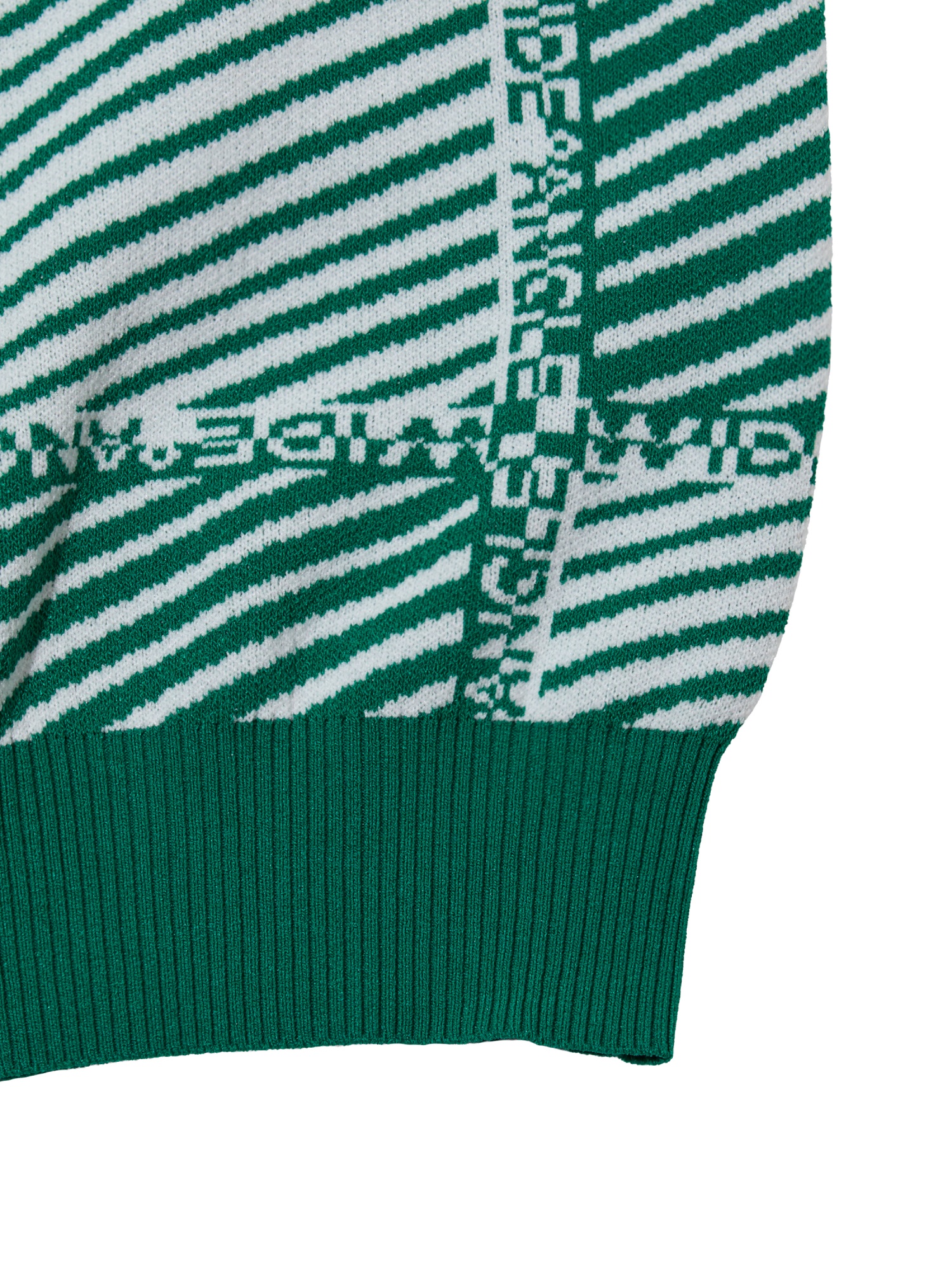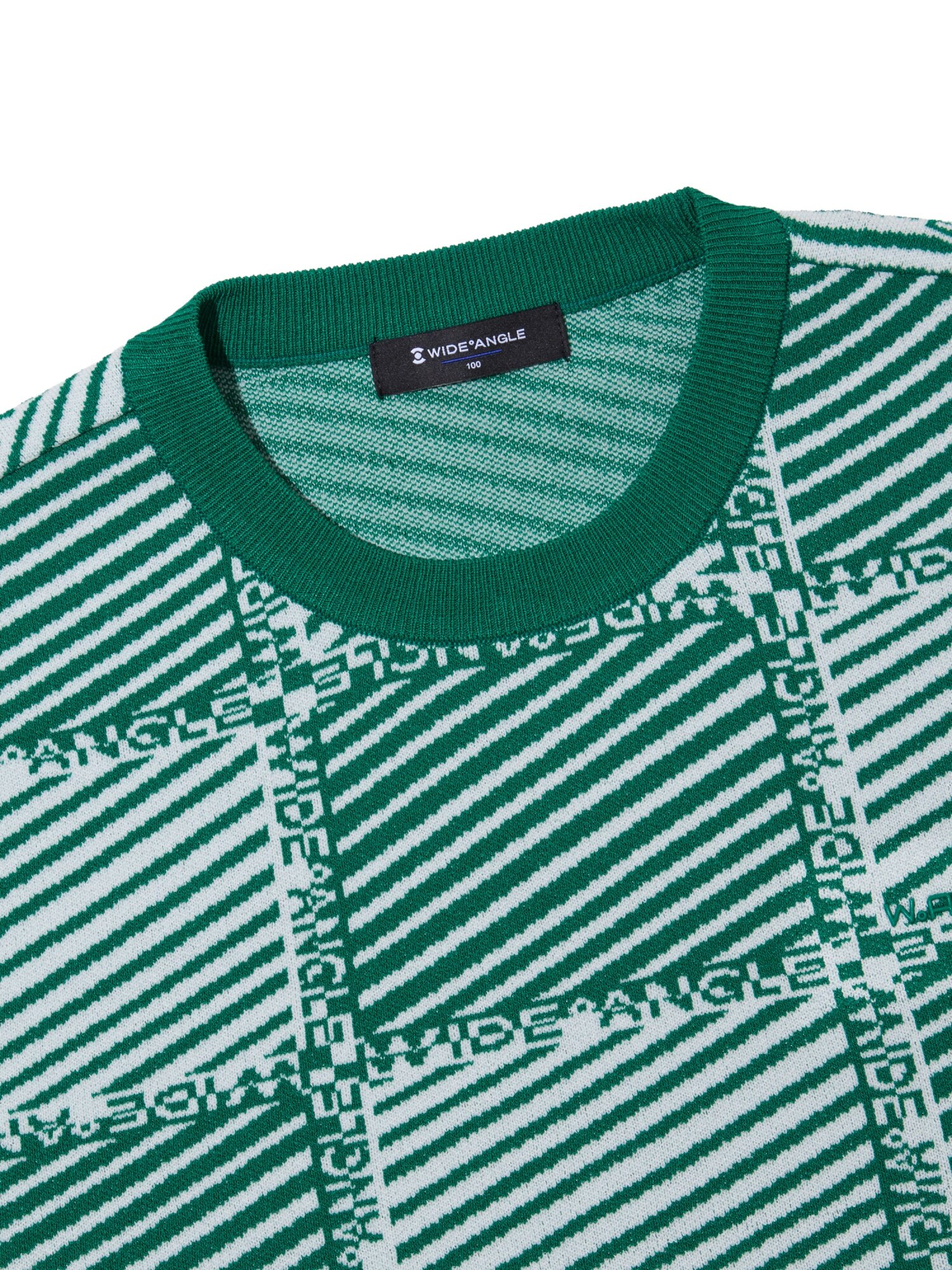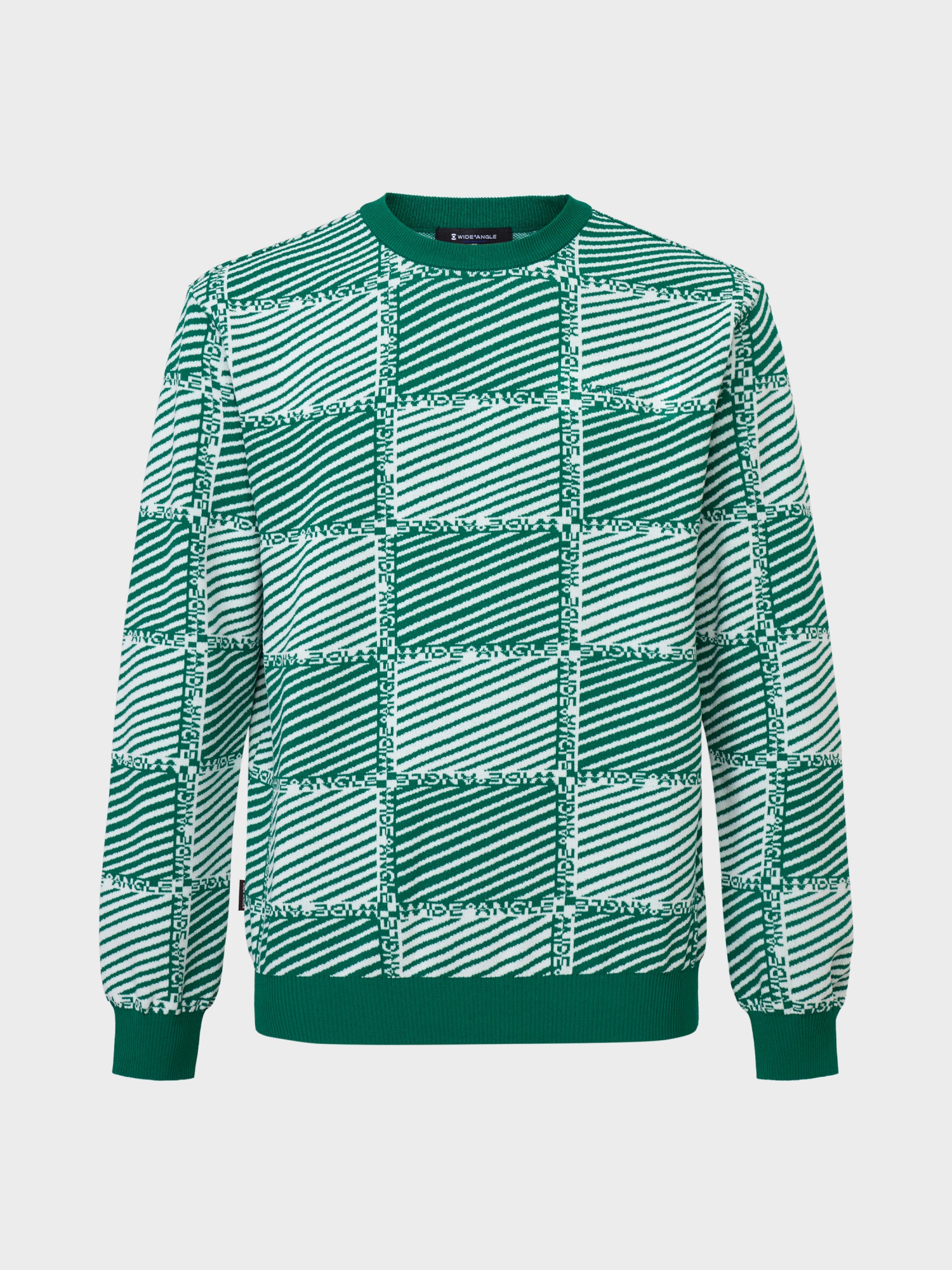 - 사선 스트라이프가 가미된 체커보드 패턴의 풀오버 라운드 스웨터