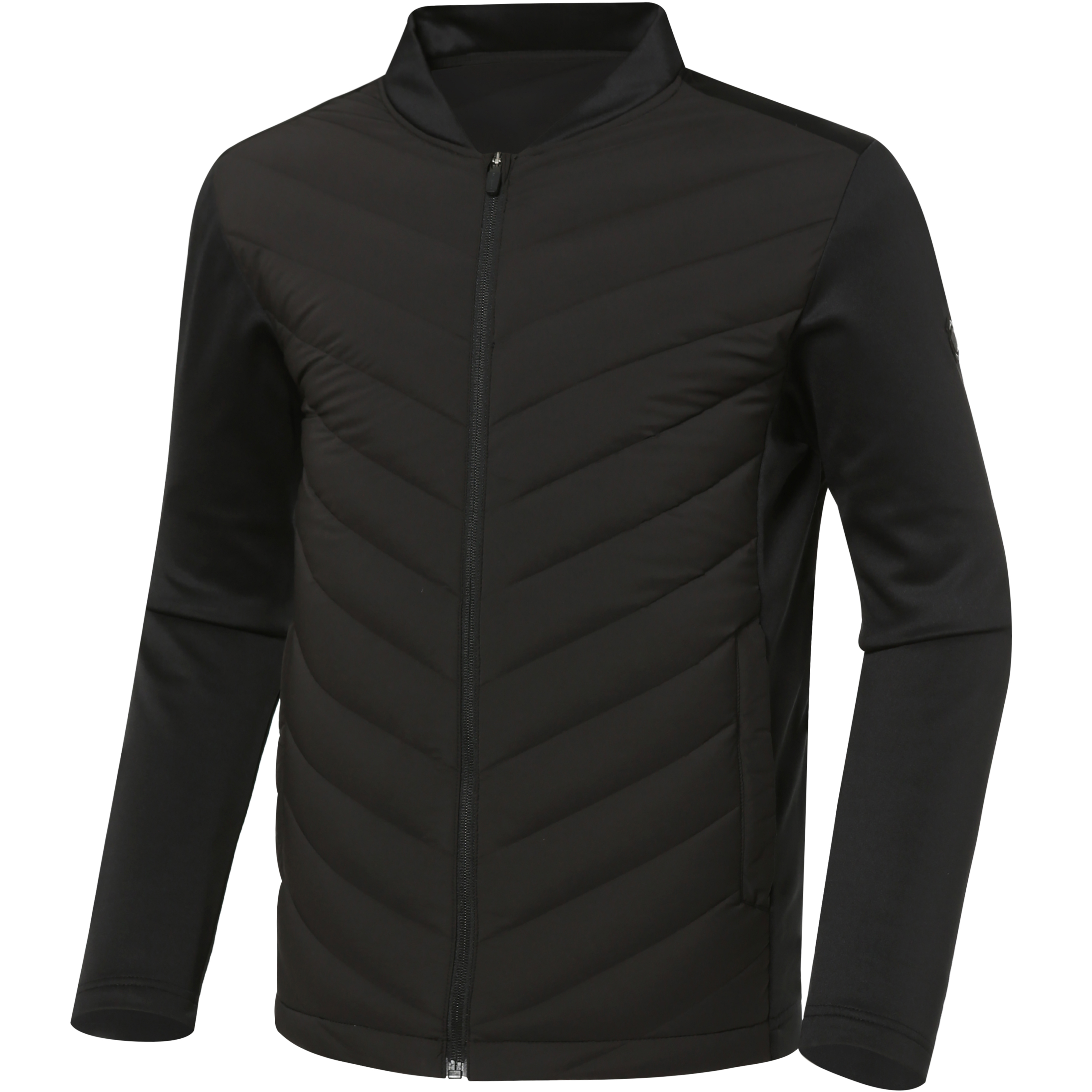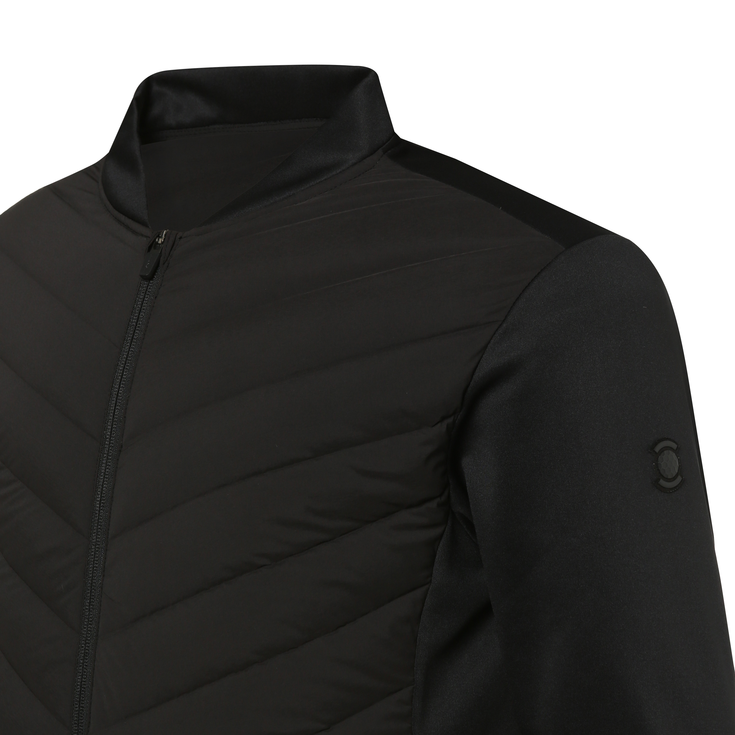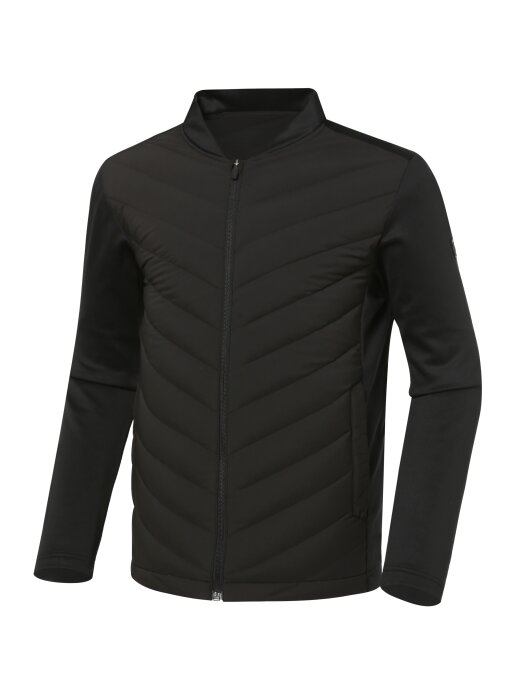 <가볍게 입을 수 있는 스타디움 스타일의 하이브리드형 다운 자켓>