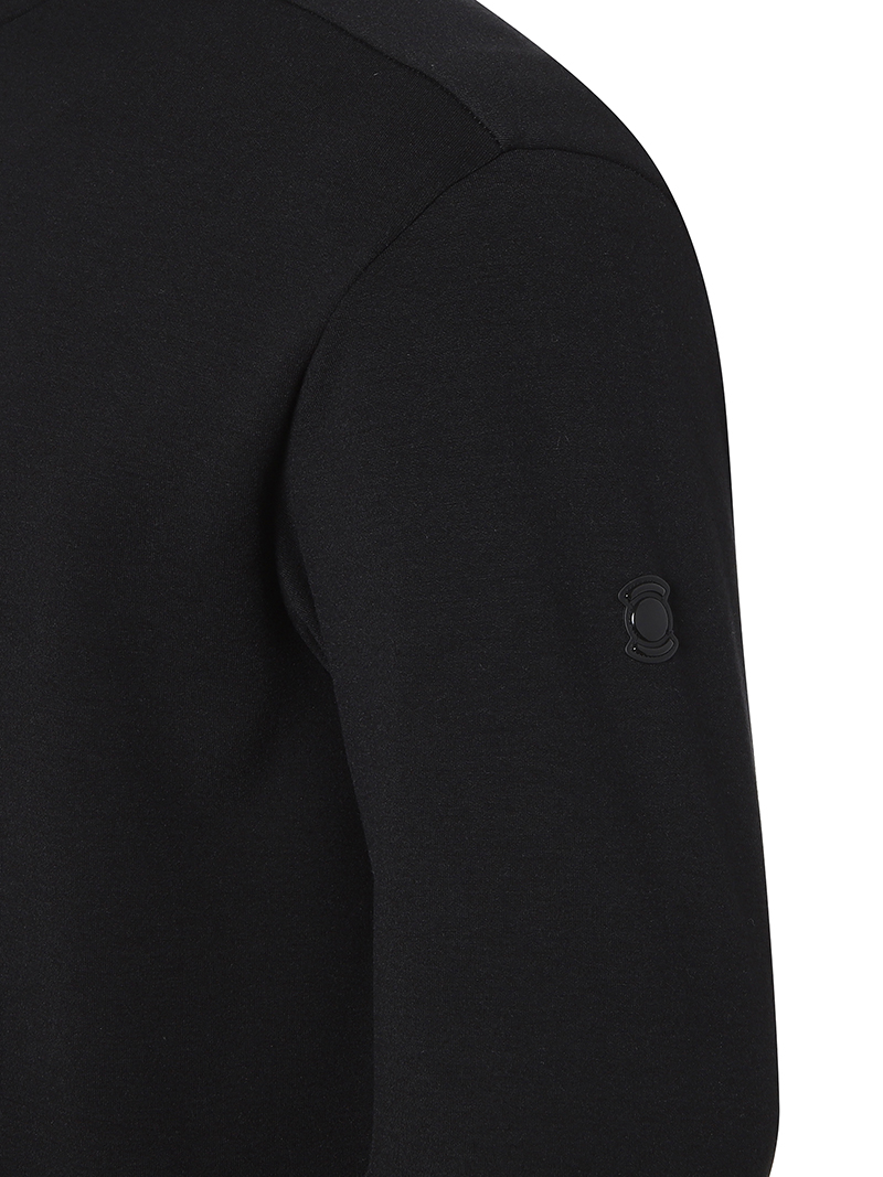 - 넥 뒷부분과 소매단에 신축성이 뛰어난 RIB 조직 배색 사용
