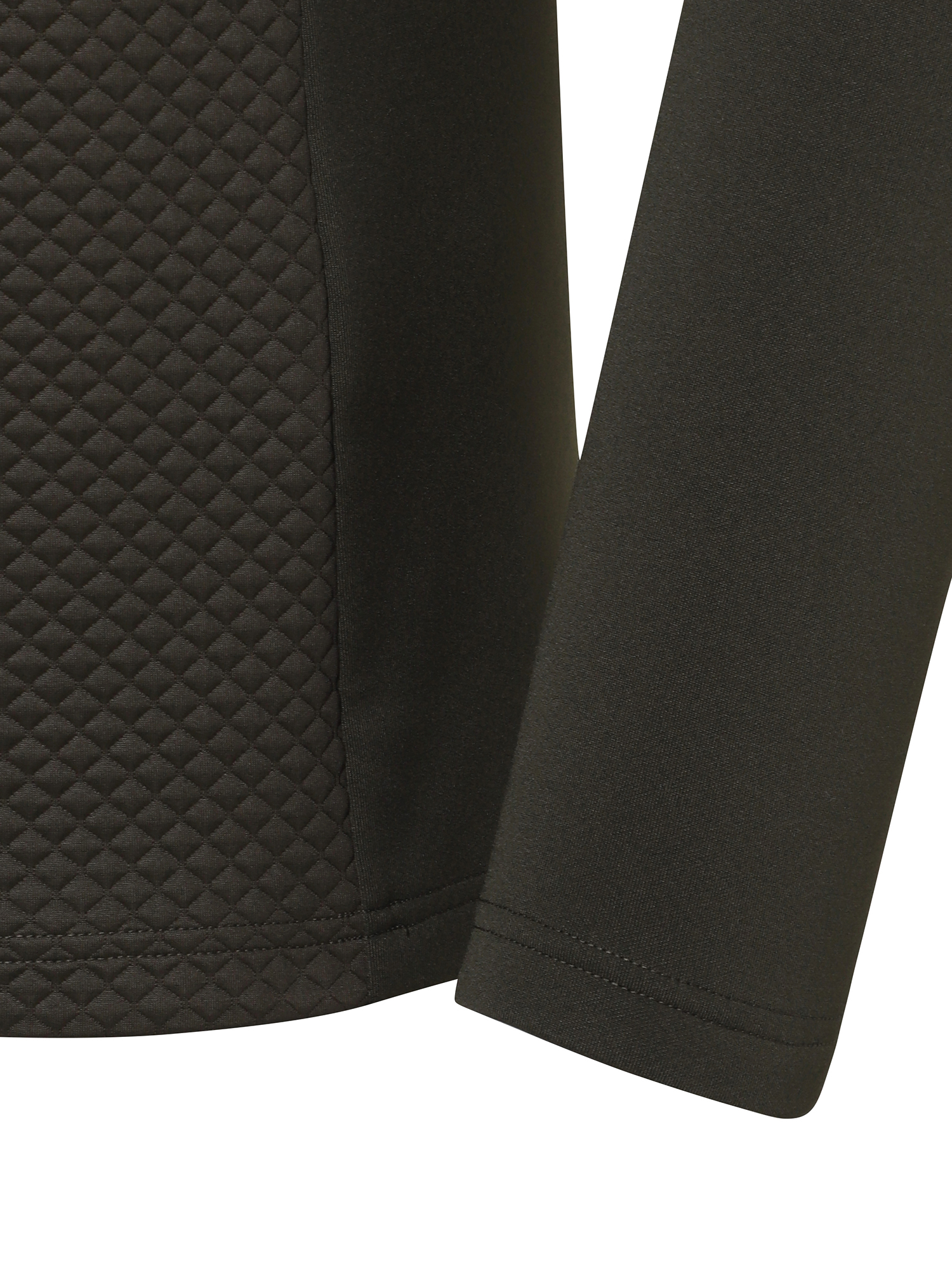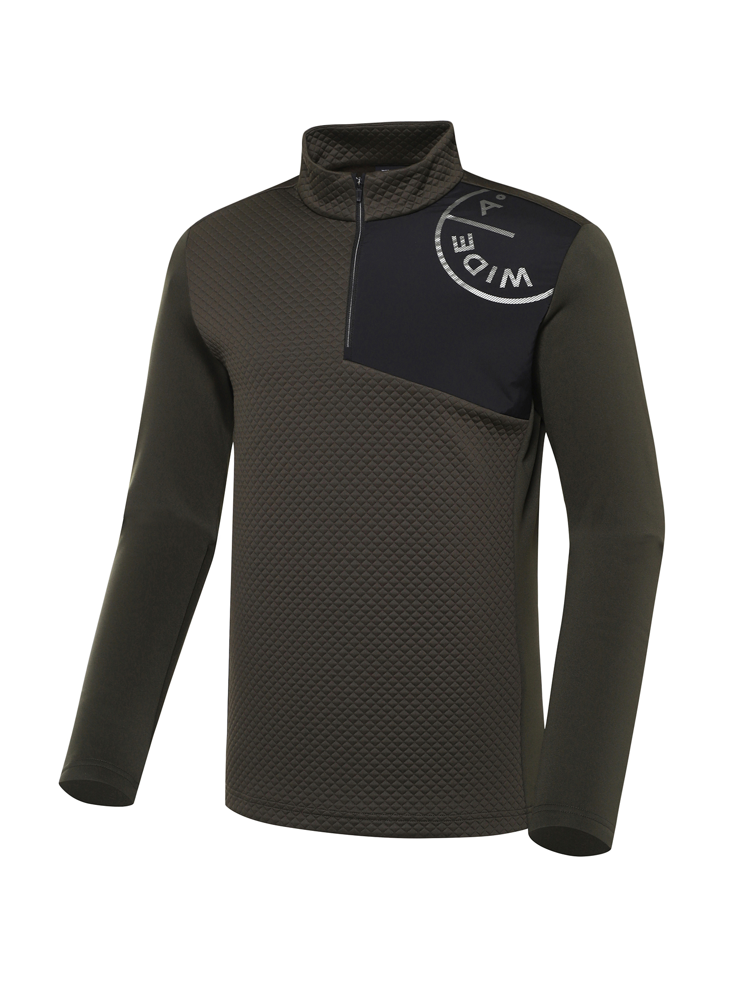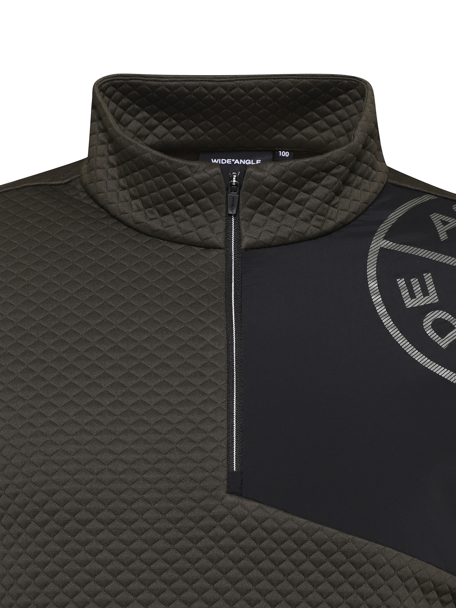 - 앞판과 등판 상단에 보온성이 뛰어난 누비조직 원단을 사용한 반짚업 하프넥