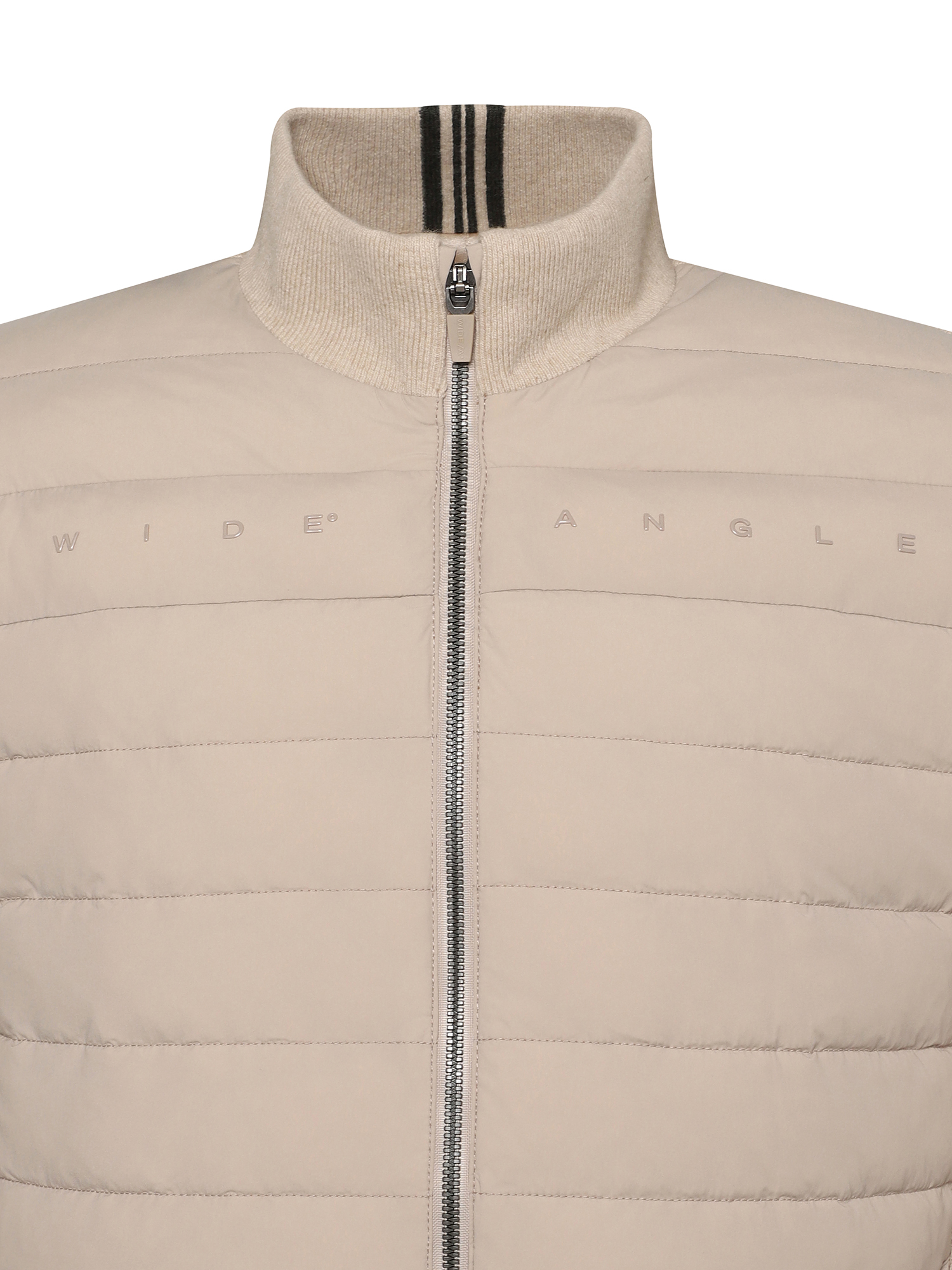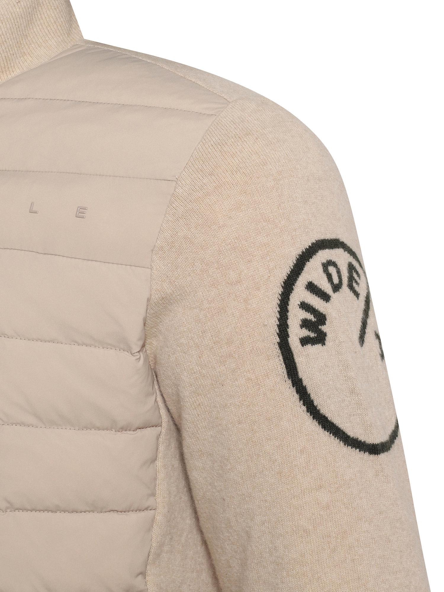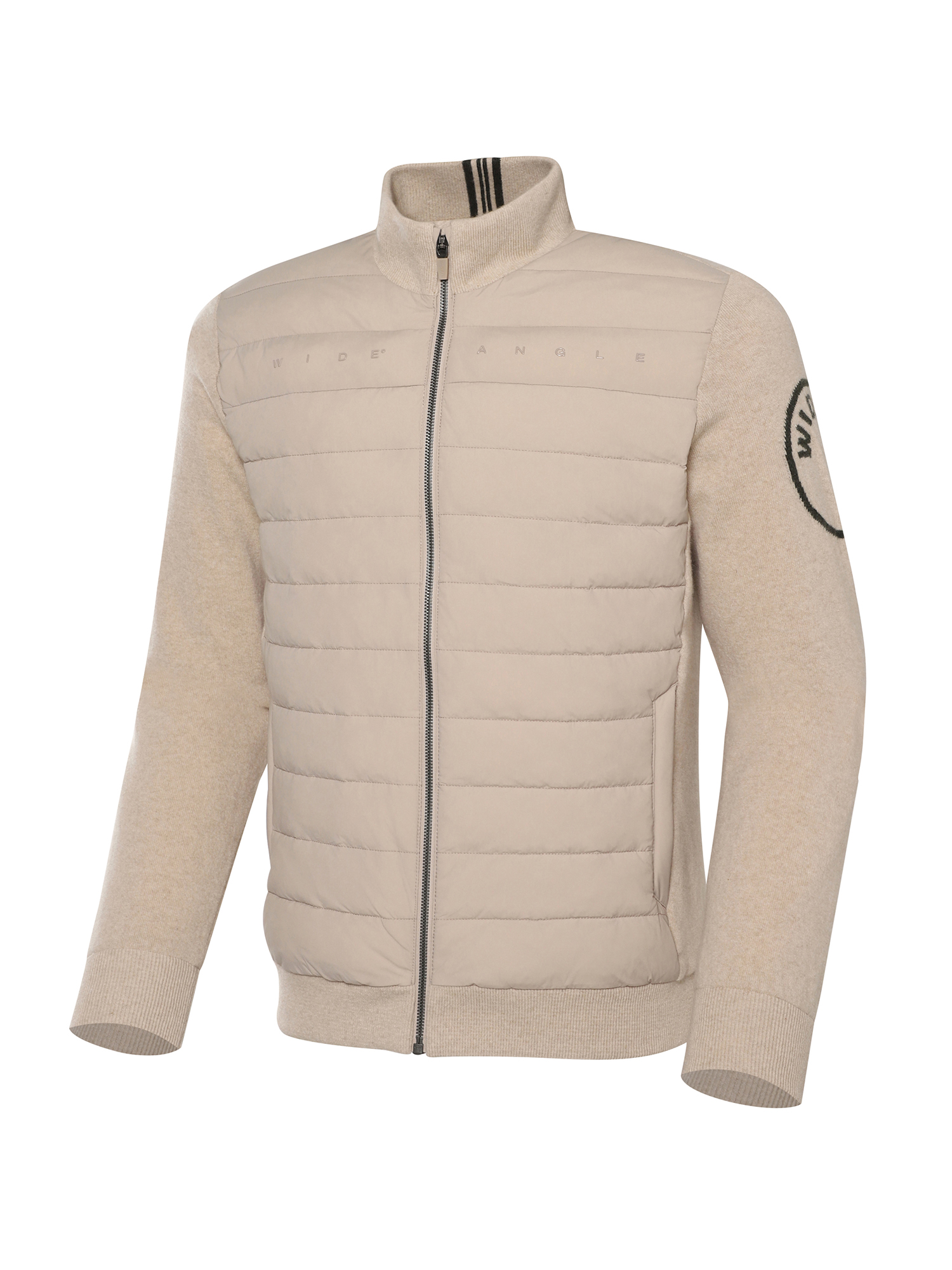- 소매 상단에 와이드앵글 원형 로고를 자카드로 편직