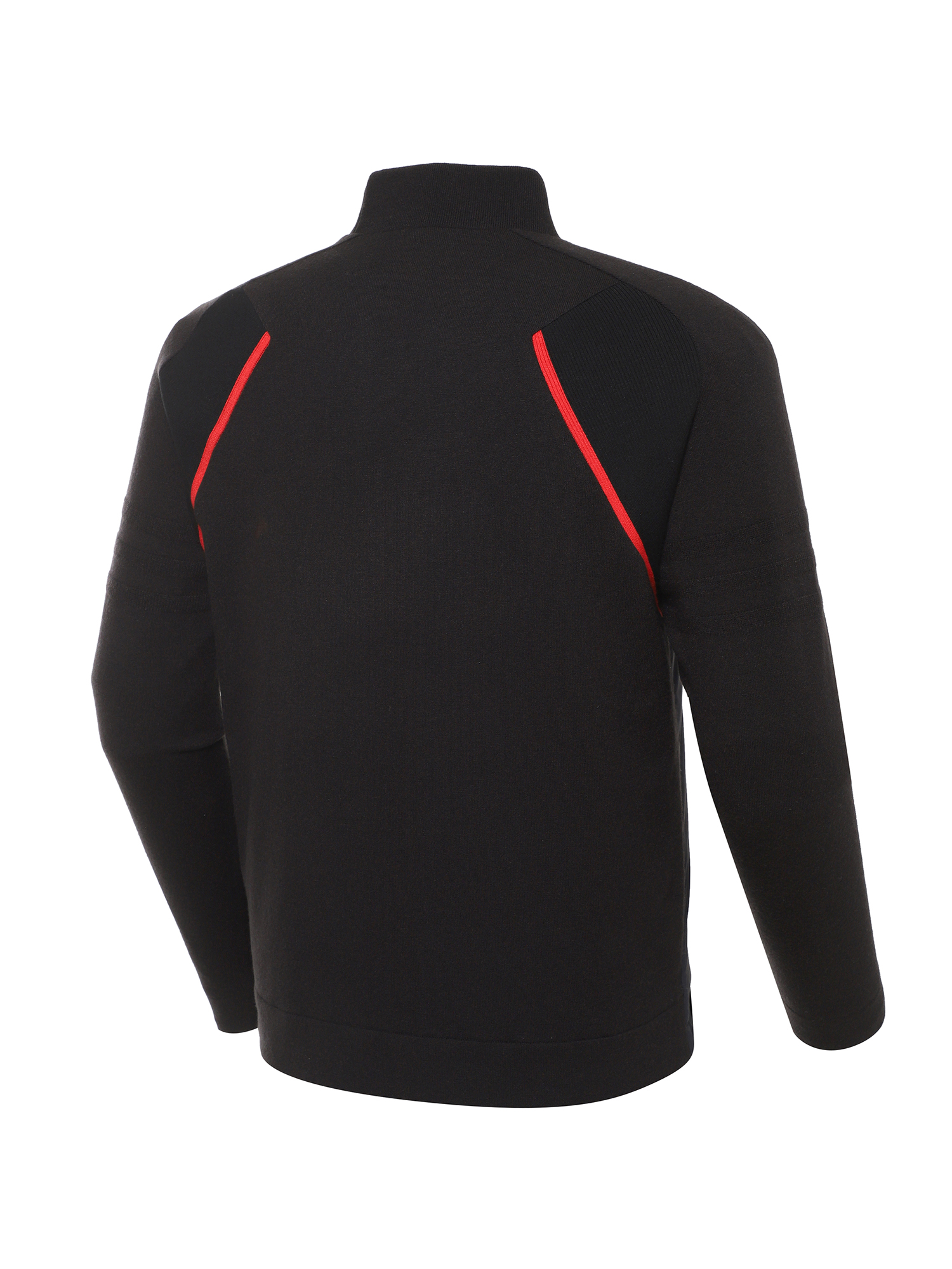 - 견갑골 부위의 레드 포인트 액션 패널 적용, 편안한 스윙과 퍼포먼스 룩 연출