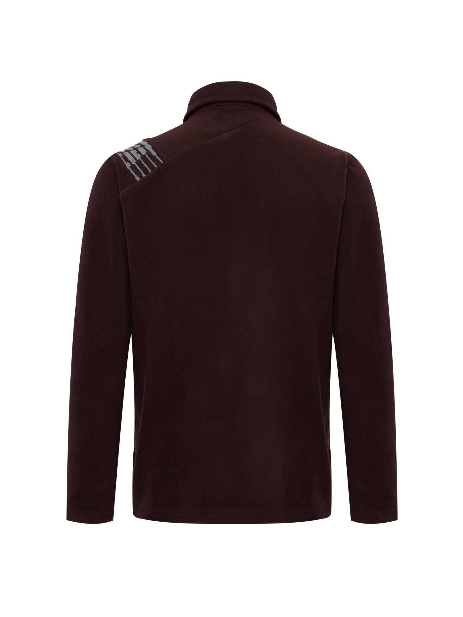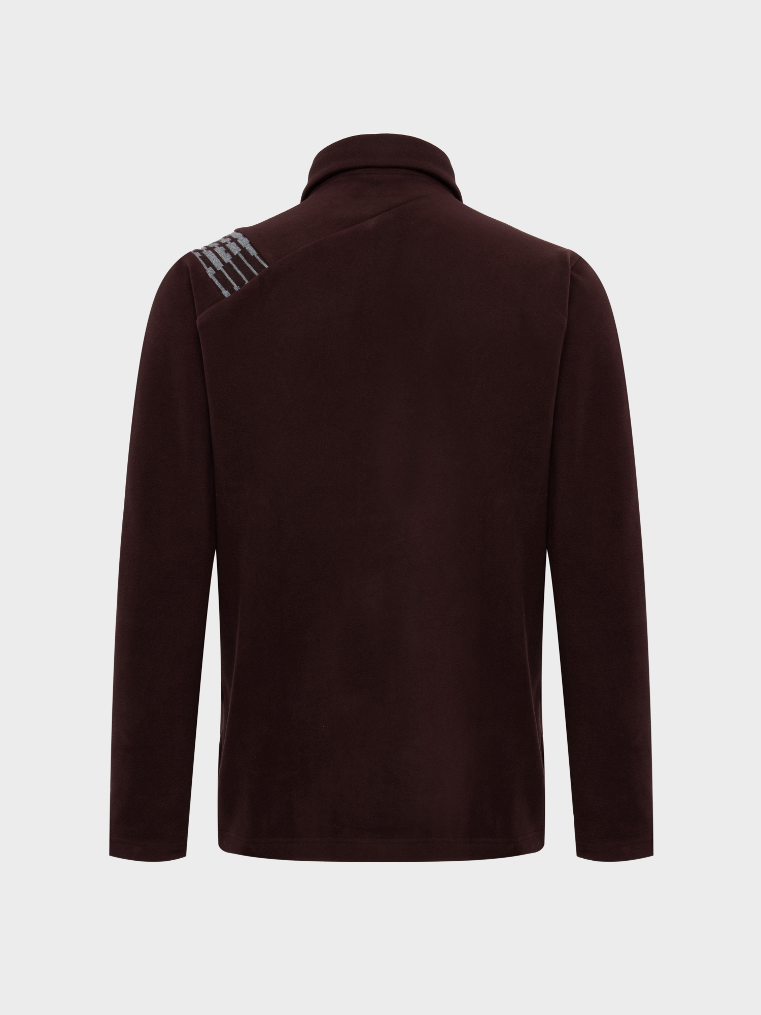 - 오른쪽 어깨에 자카드 로고 스웨터를 원포인트 배색으로 적용한 심플한 디자인