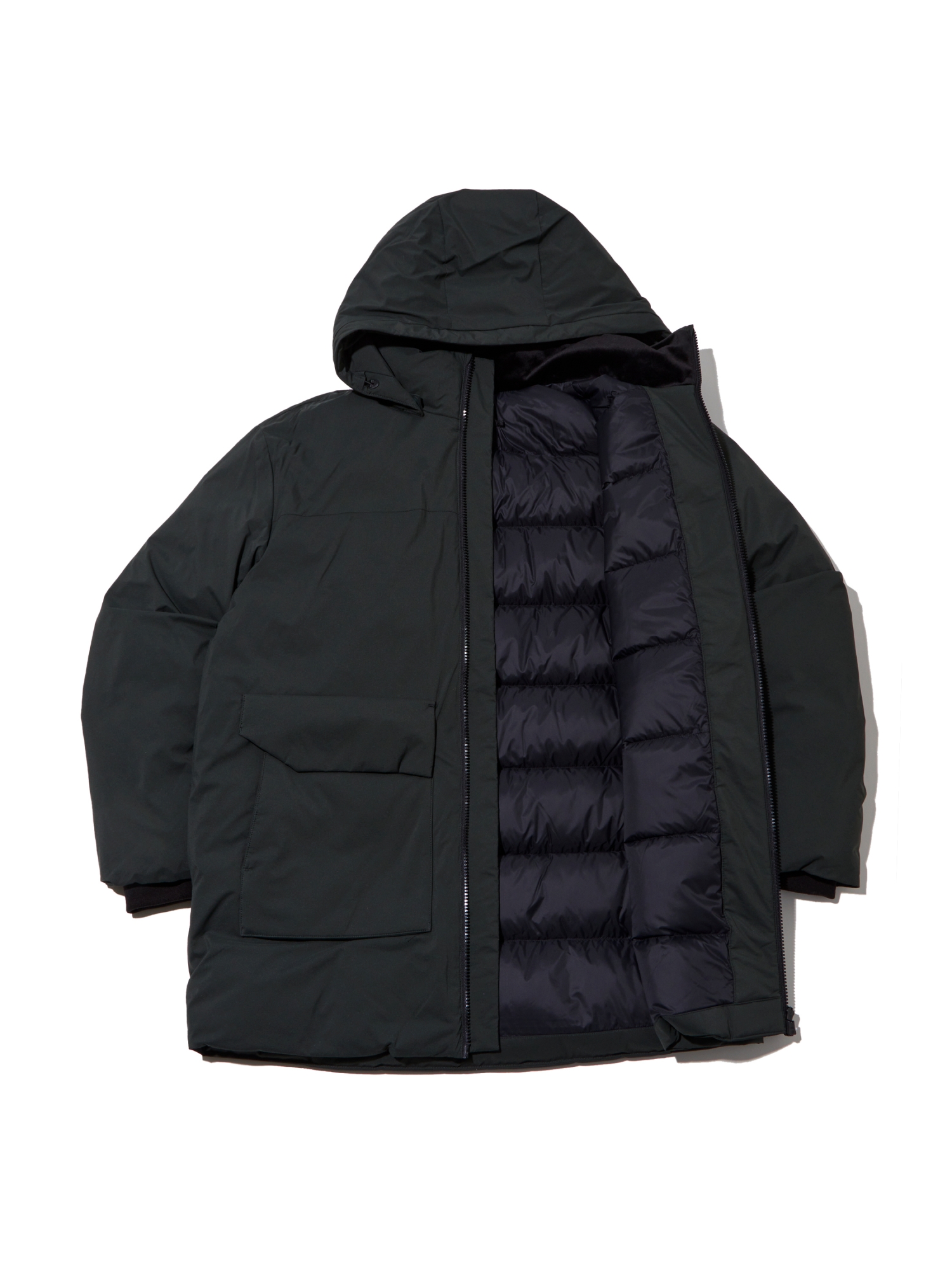 남성 CO 아웃포켓 후드 롱 다운 자켓 M (Khaki)