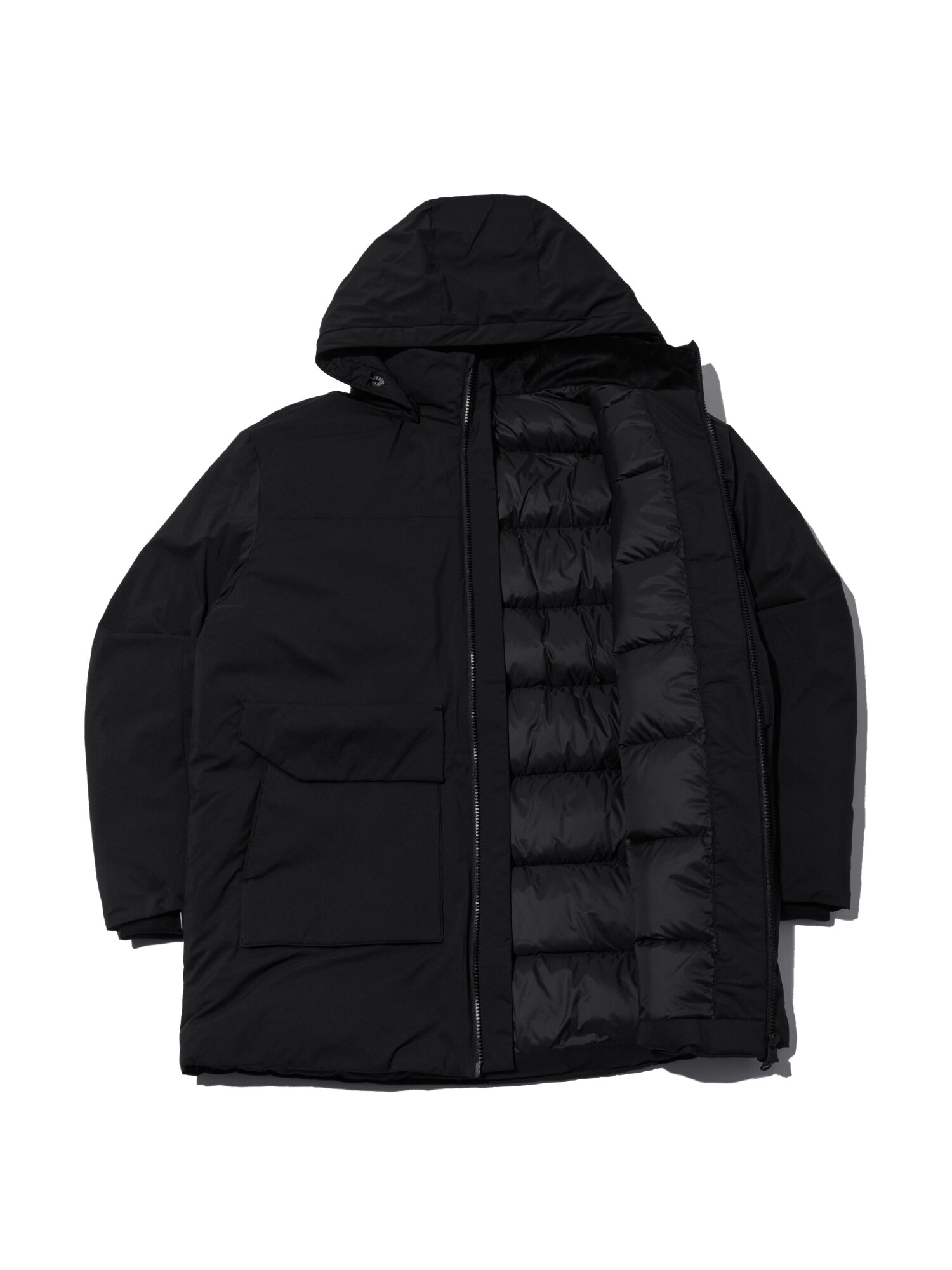 남성 CO 아웃포켓 후드 롱 다운 자켓 M (Black)