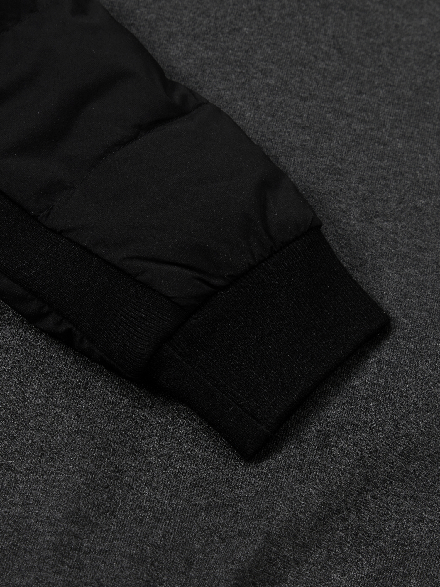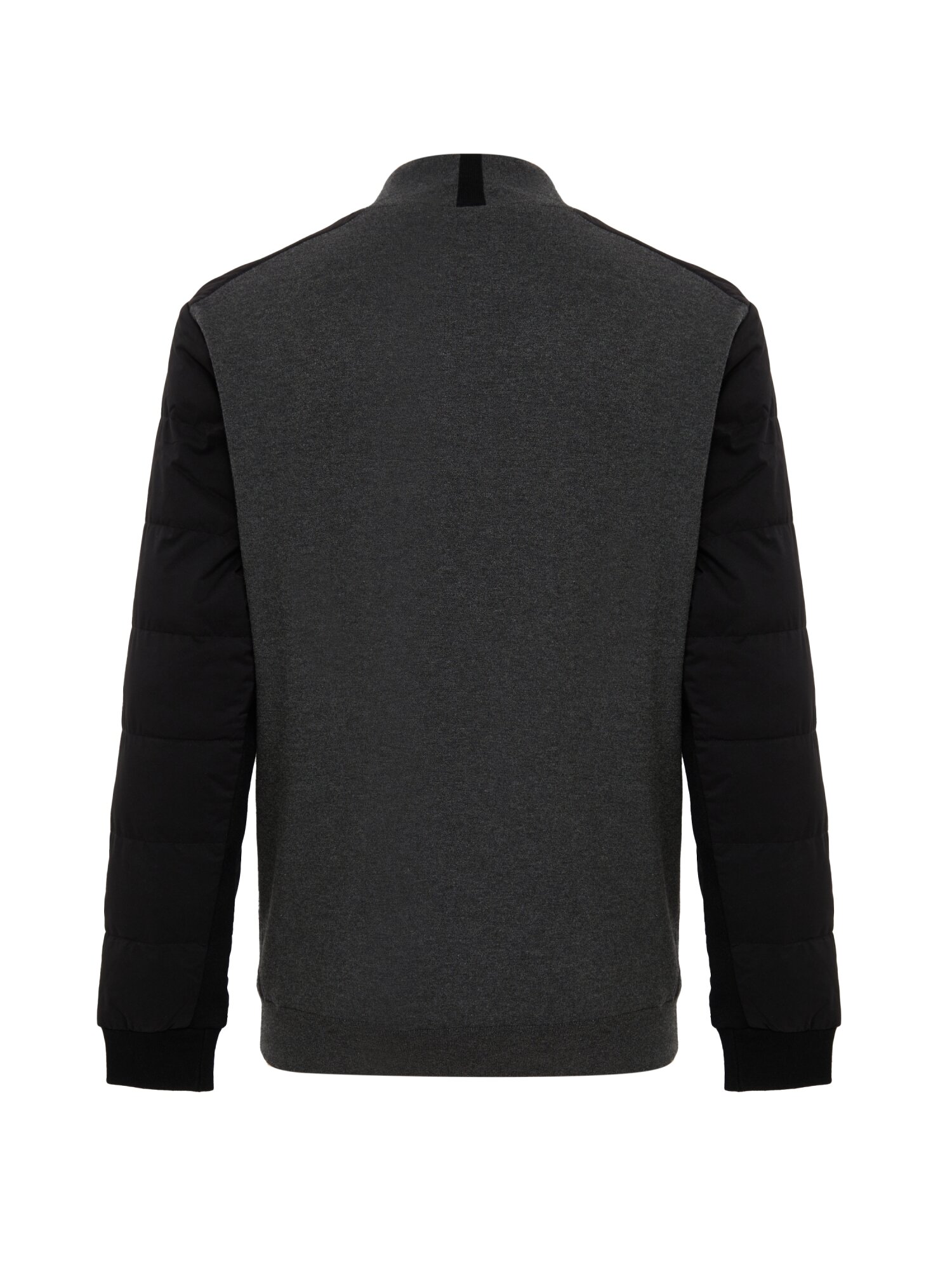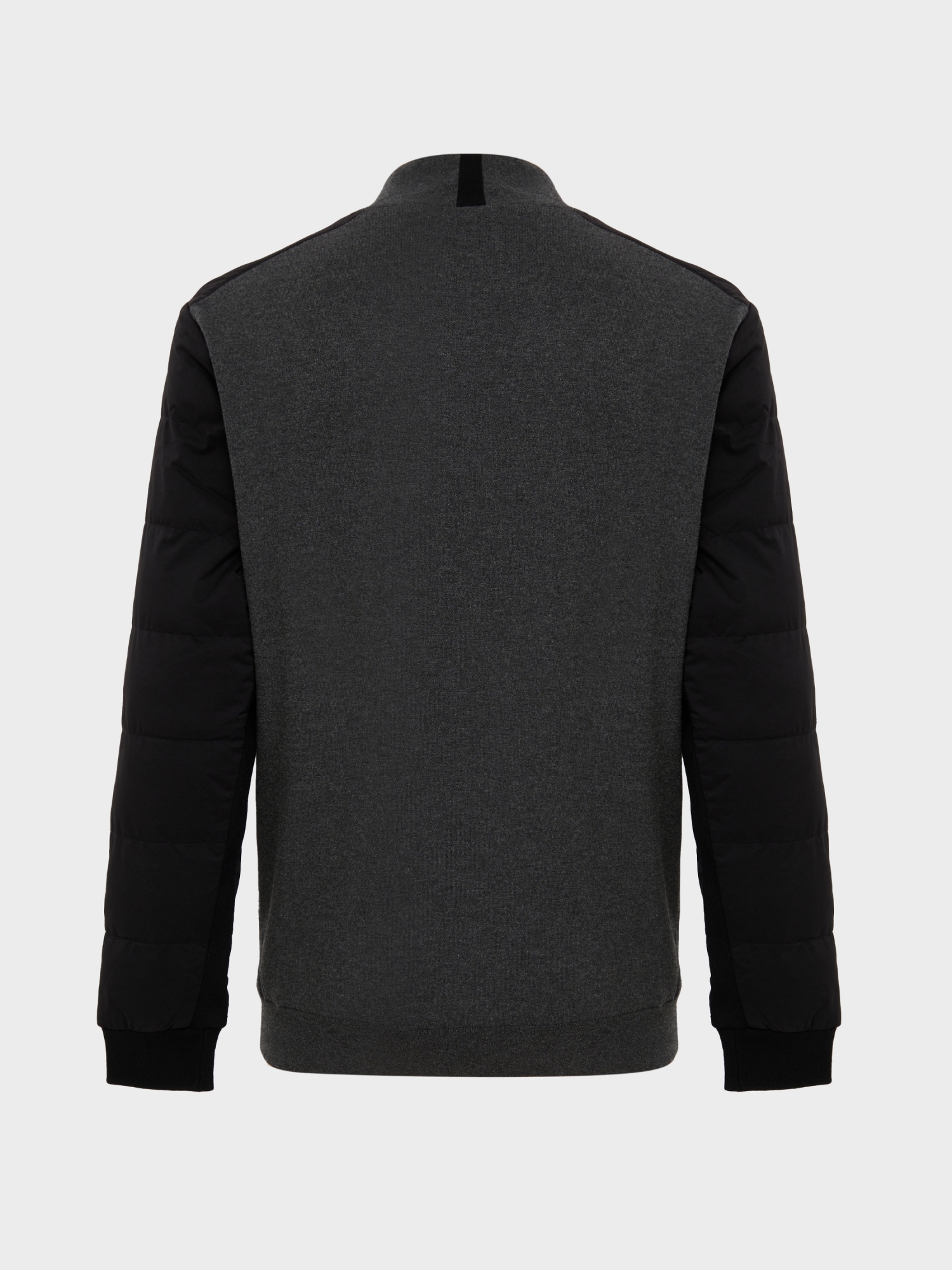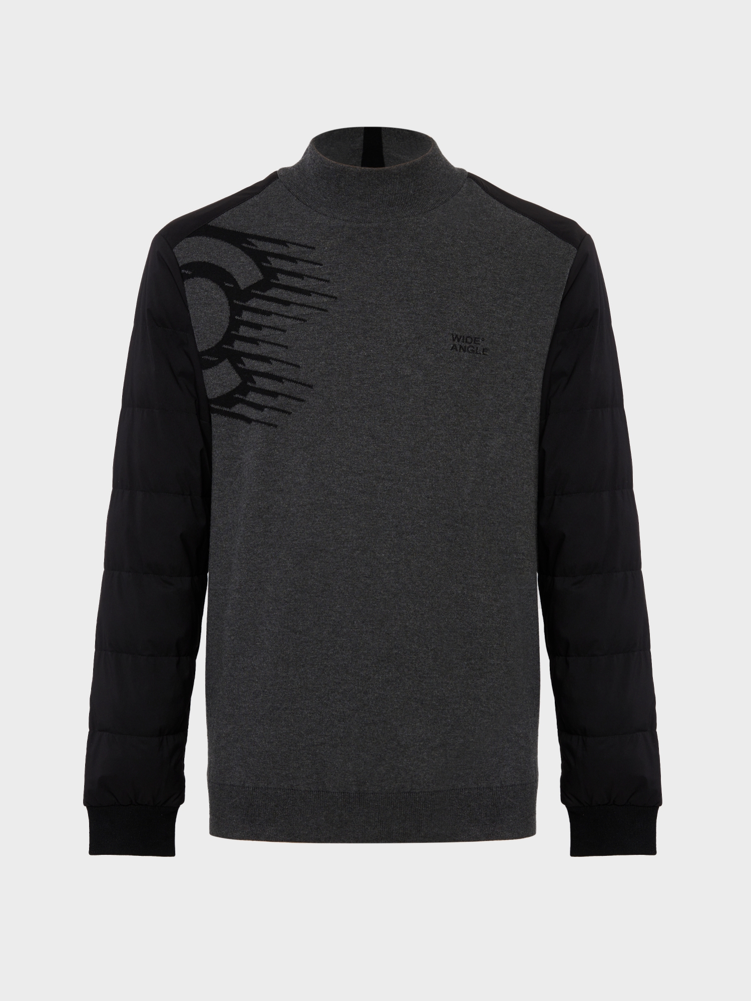 패딩 퀼딩 우븐 소매와 모크넥 방풍 스웨터가 합쳐진 하이브리드 제품