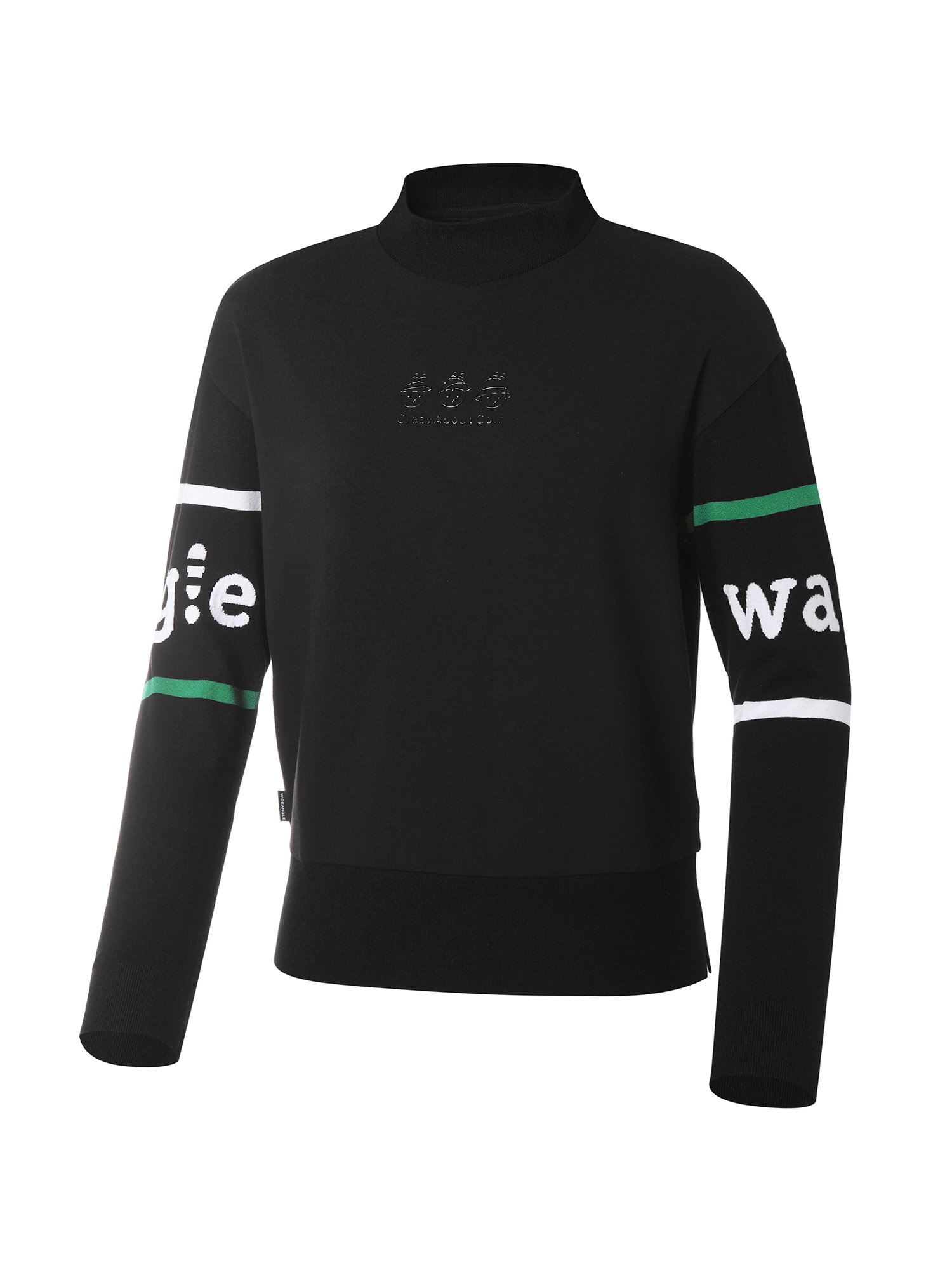 여성 WG 로고 니트 슬리브 맨투맨 (Black)
