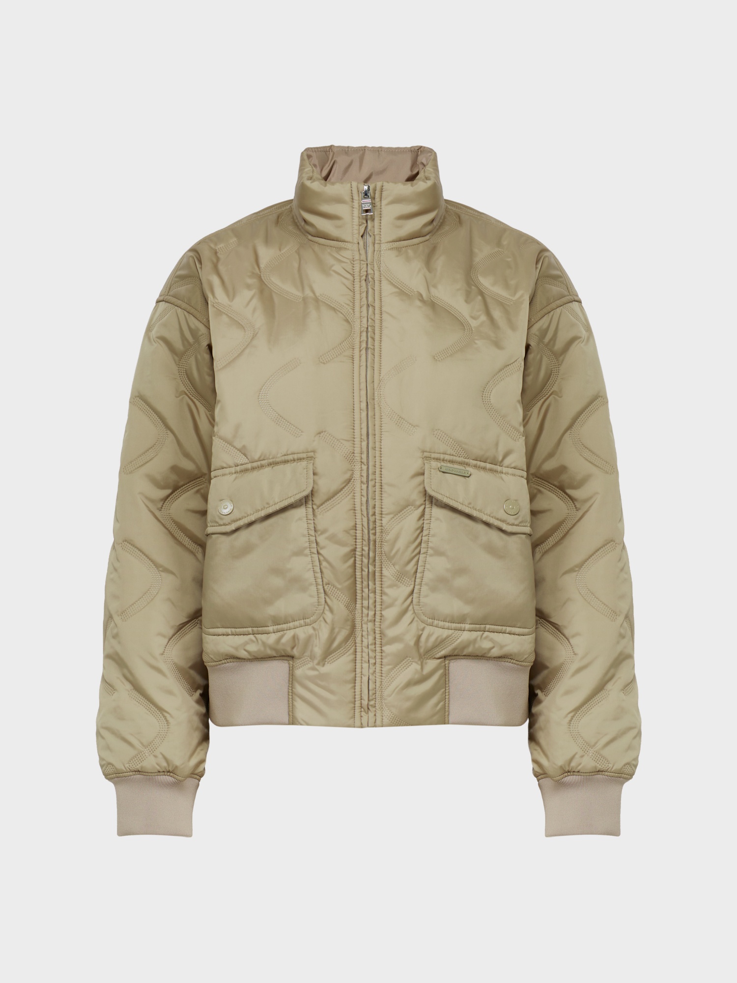 - 은은한 광택감과 부드러운 터치감이 특징인 소재에 물결 문양의 고주파 퀼팅을 더해