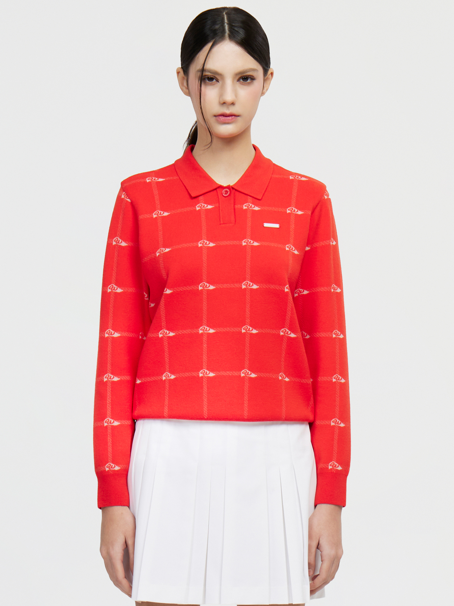 - 체크 시즌 패턴의 폴로 형태로 고급스러운 디자인을 연출하는 스웨터