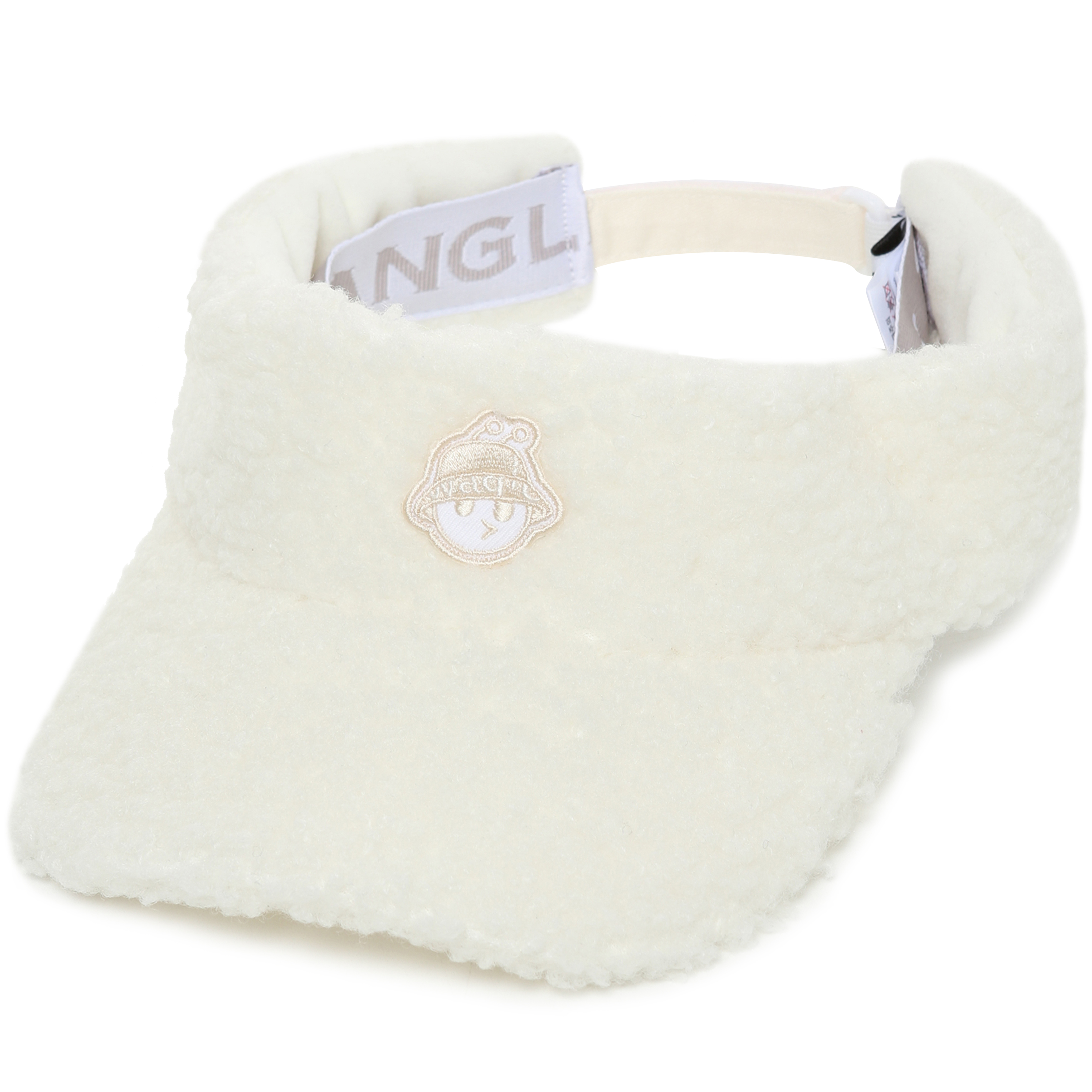 - 페이크양털 일명 뽀글이 소재를 사용한 귀여움 강조된 겨울 썬캡 모자