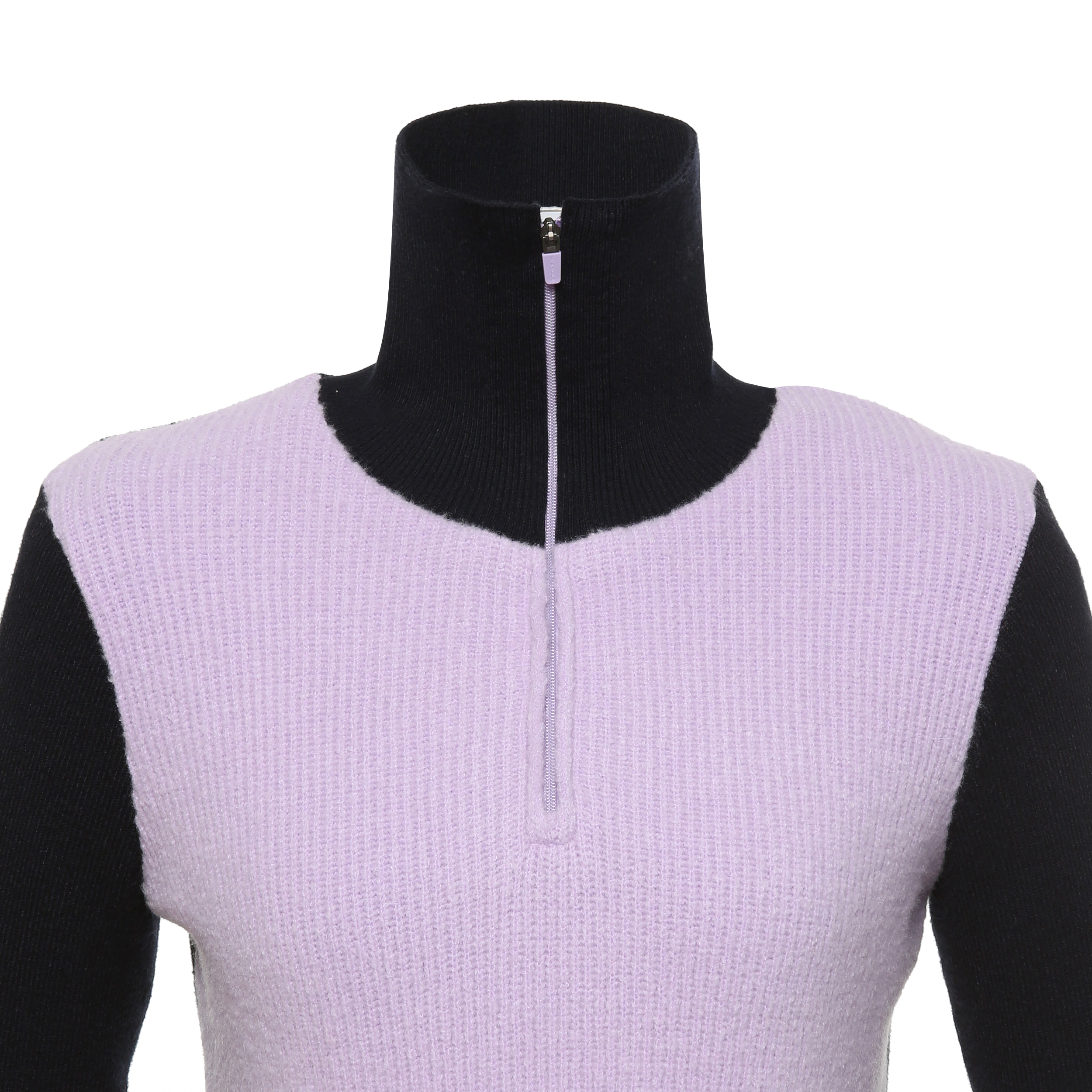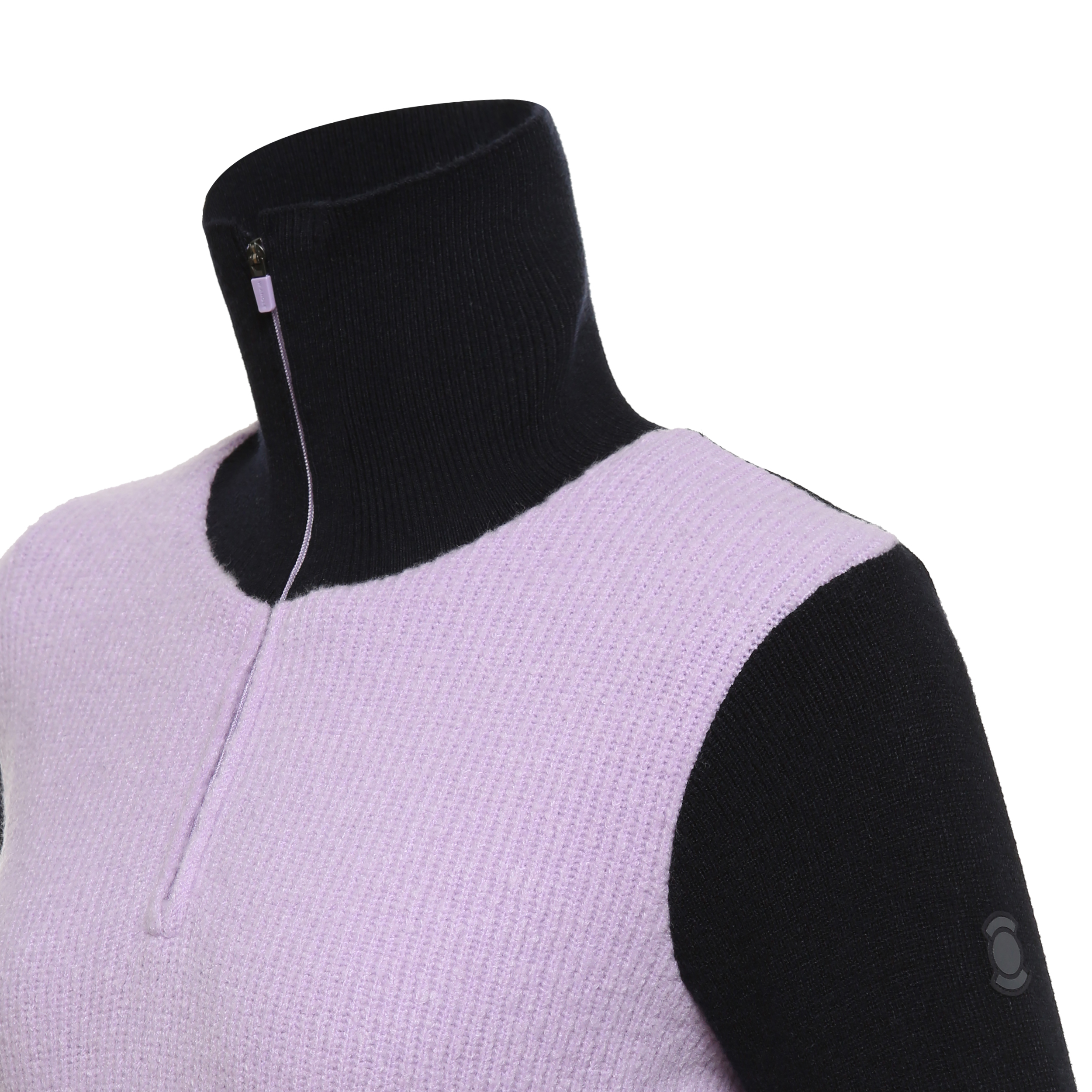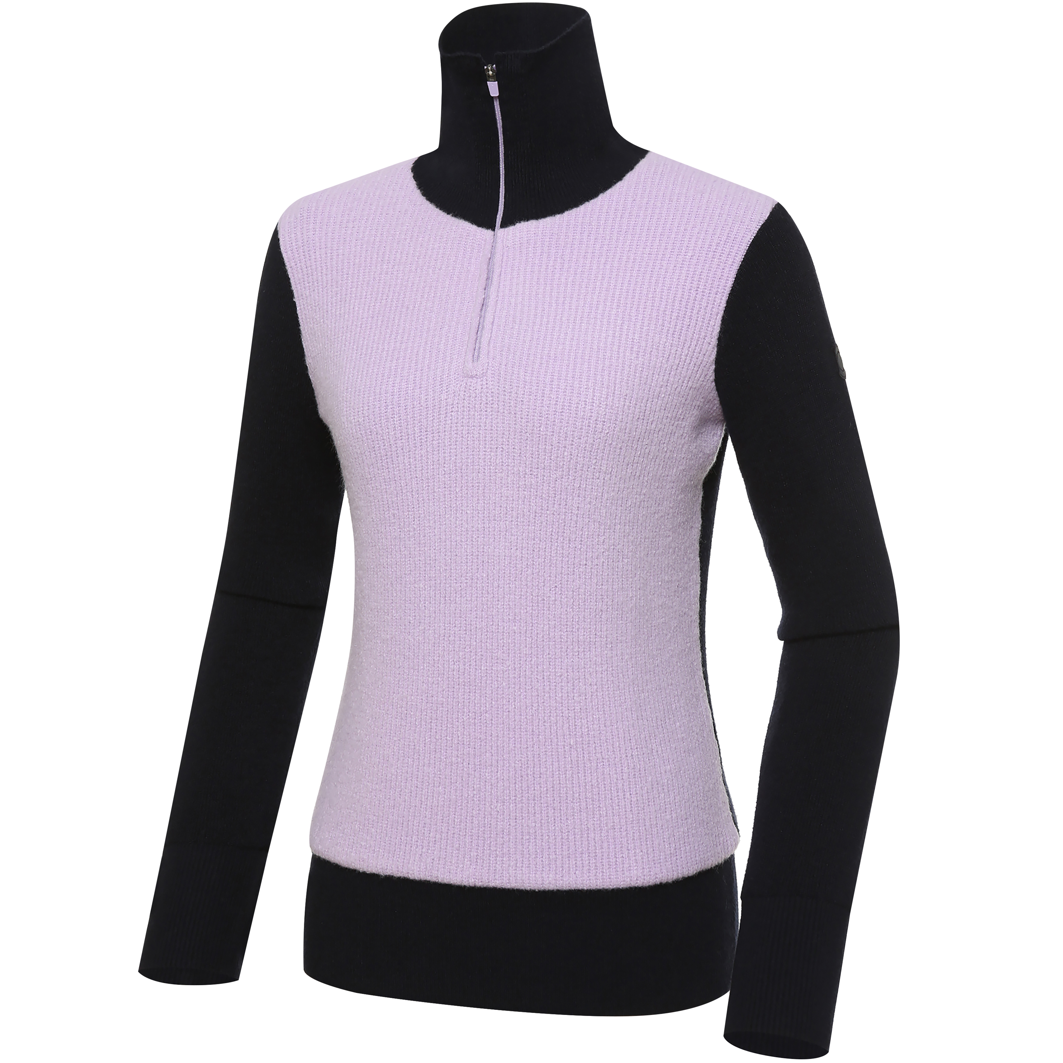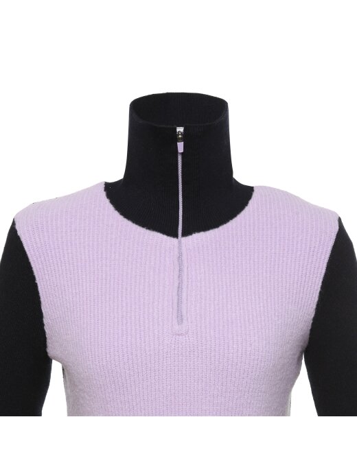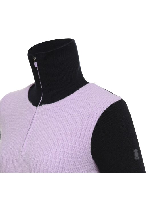 <겨울철 다양한 활동 시 가볍게 입을 수 있는 하이넥 반집업 스웨터>