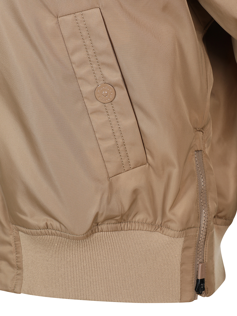 - 광택감 있는 소재를 사용한 스타디움 스타일의 루즈핏 자켓