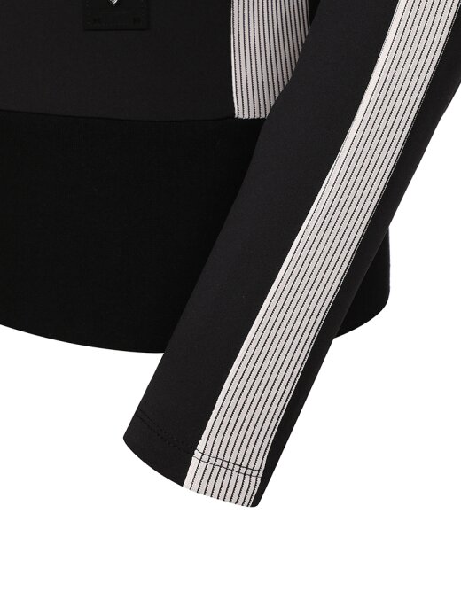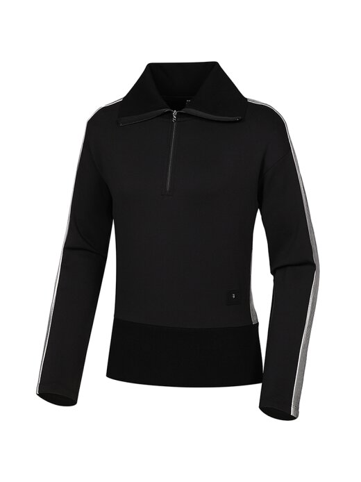 여성 WL PRO 배색 와이드카라 반짚 티셔츠 (Black)