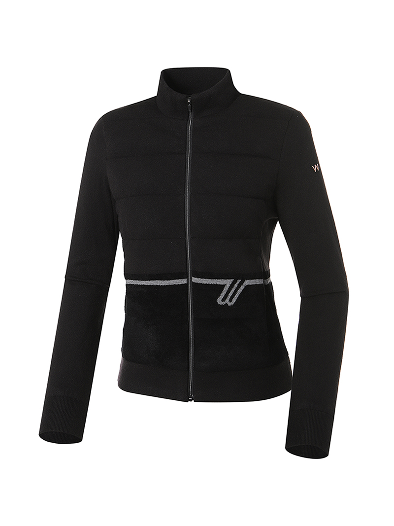 여성 WL 로고 티핑 볼패딩 풀집 스웨터 (Black)